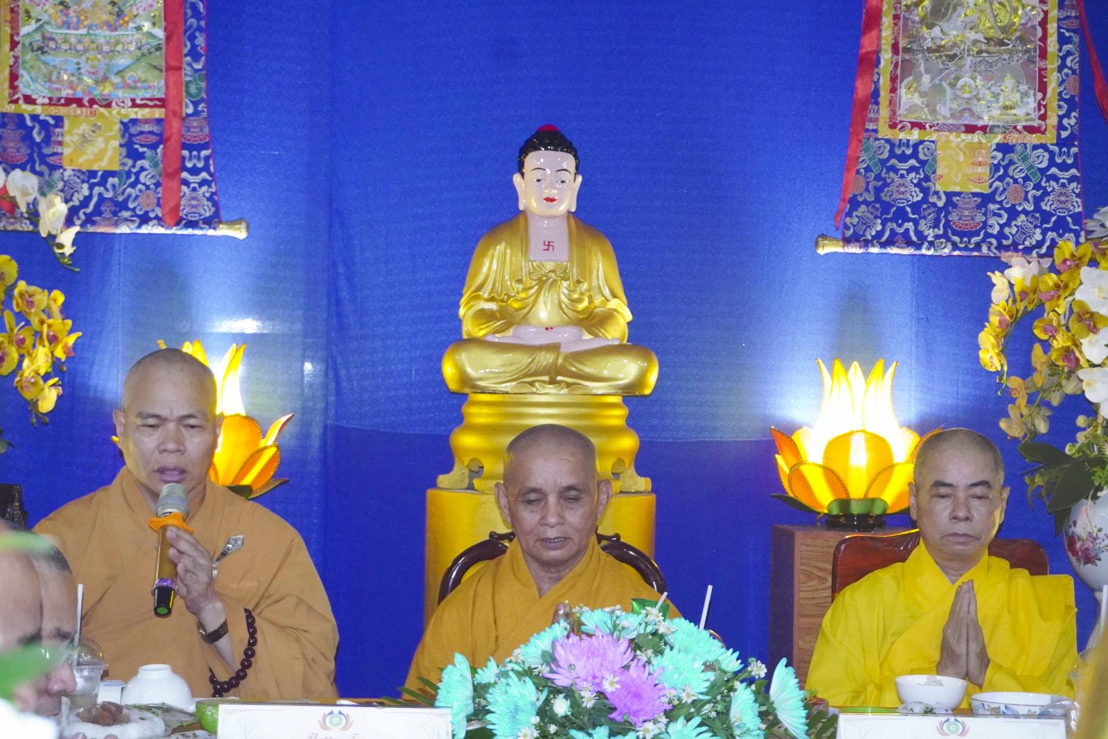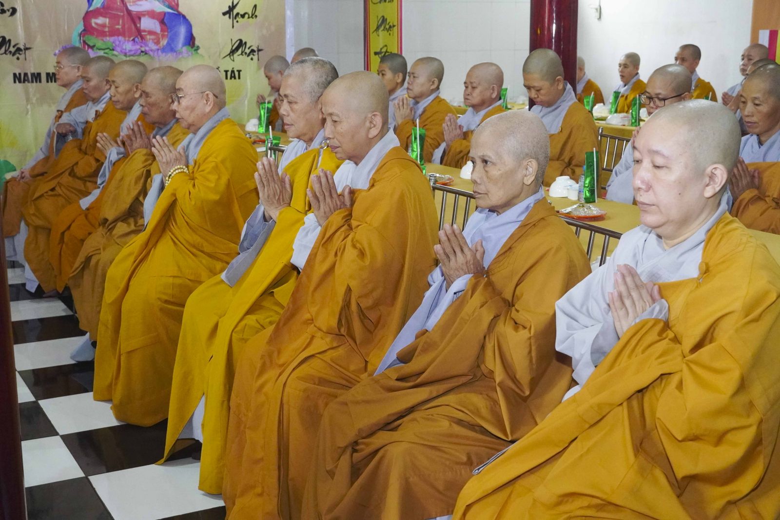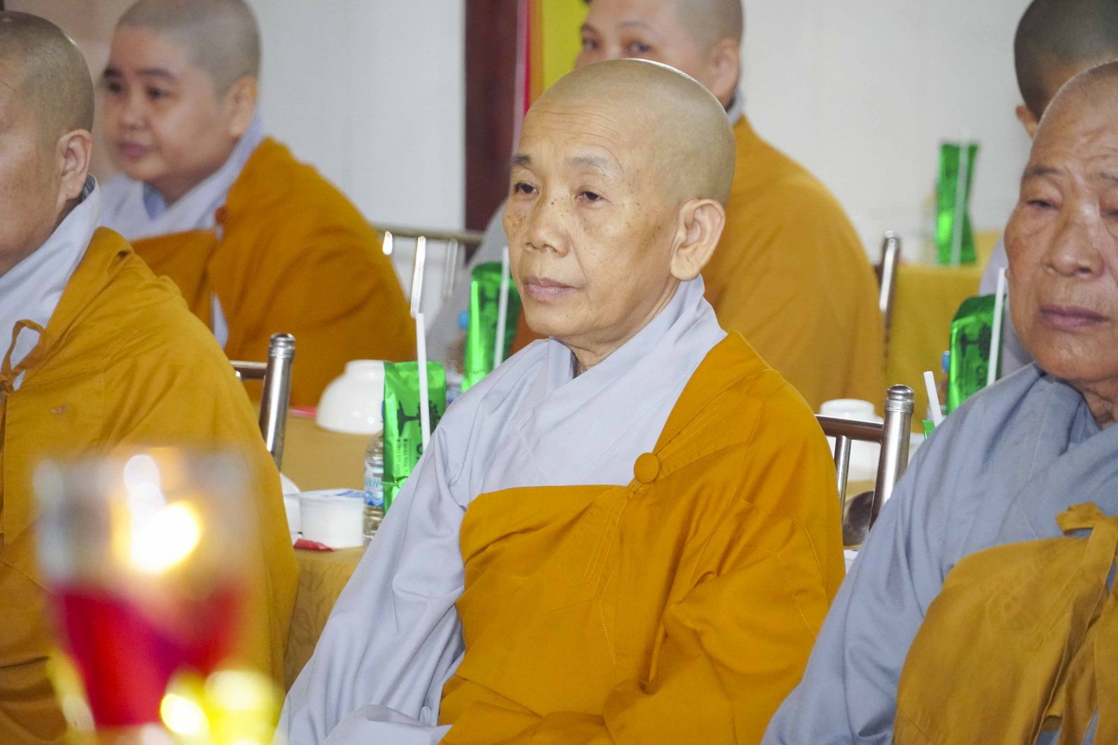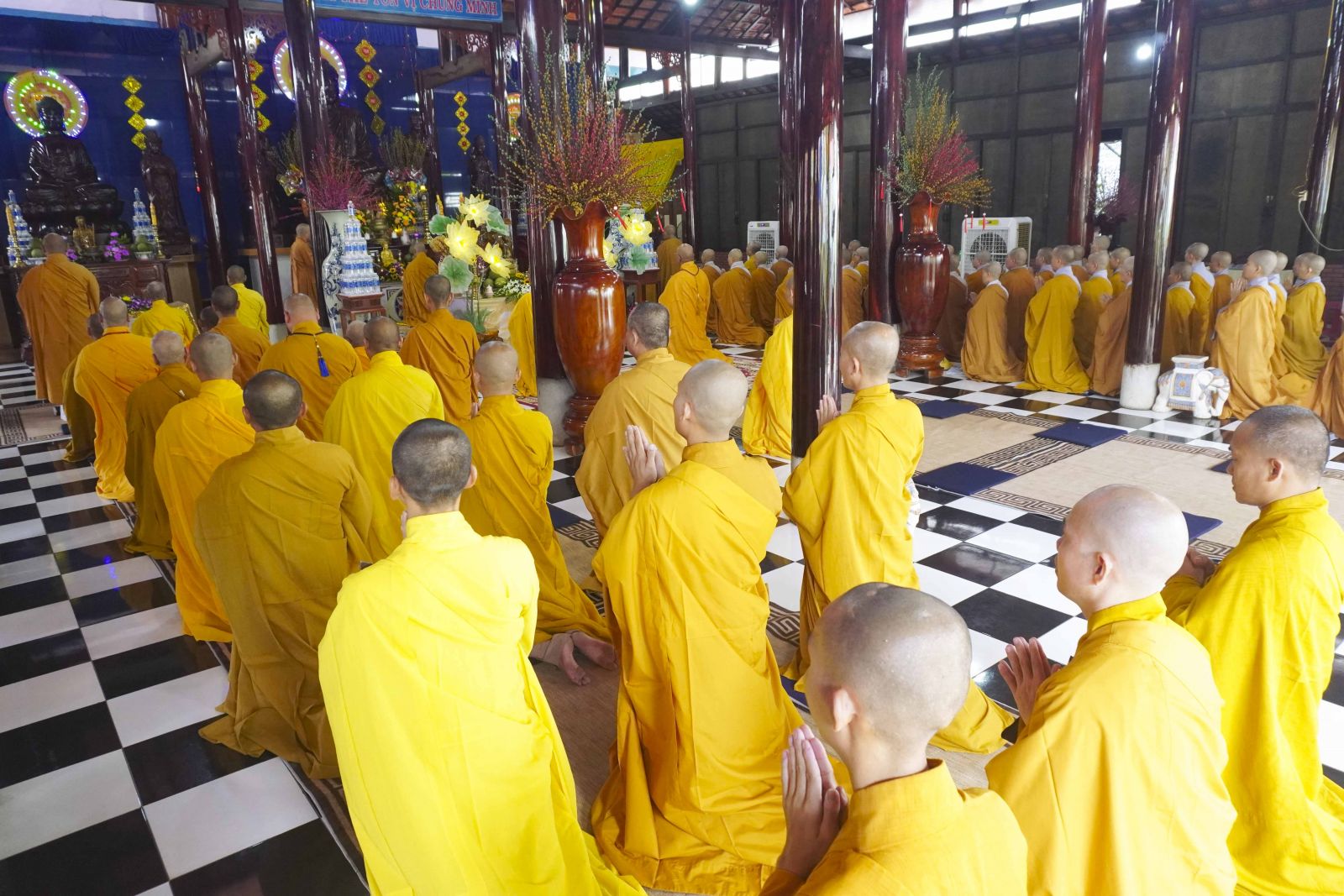 Buổi lễ trang nghiêm cung thỉnh chư Tôn đức quang lâm tổ đường. Tiếp đó, HT. Thích Huệ Quang có đôi lời chúc mừng đến Tăng Ni hành giả An cư, sau ba tháng tu học, Tăng Ni lại tăng trưởng thêm Hạ lạp, tăng trưởng thêm đạo lực.