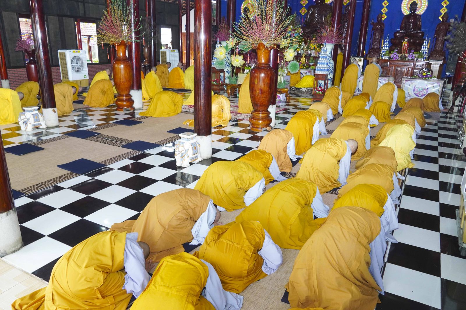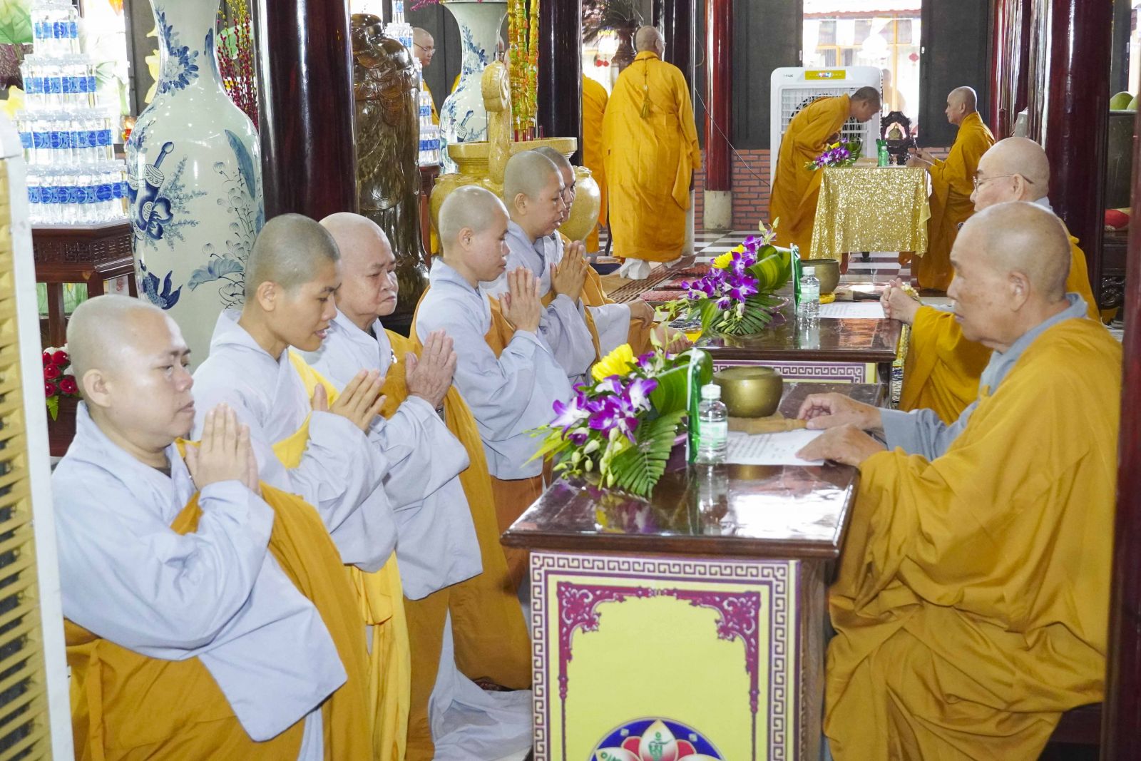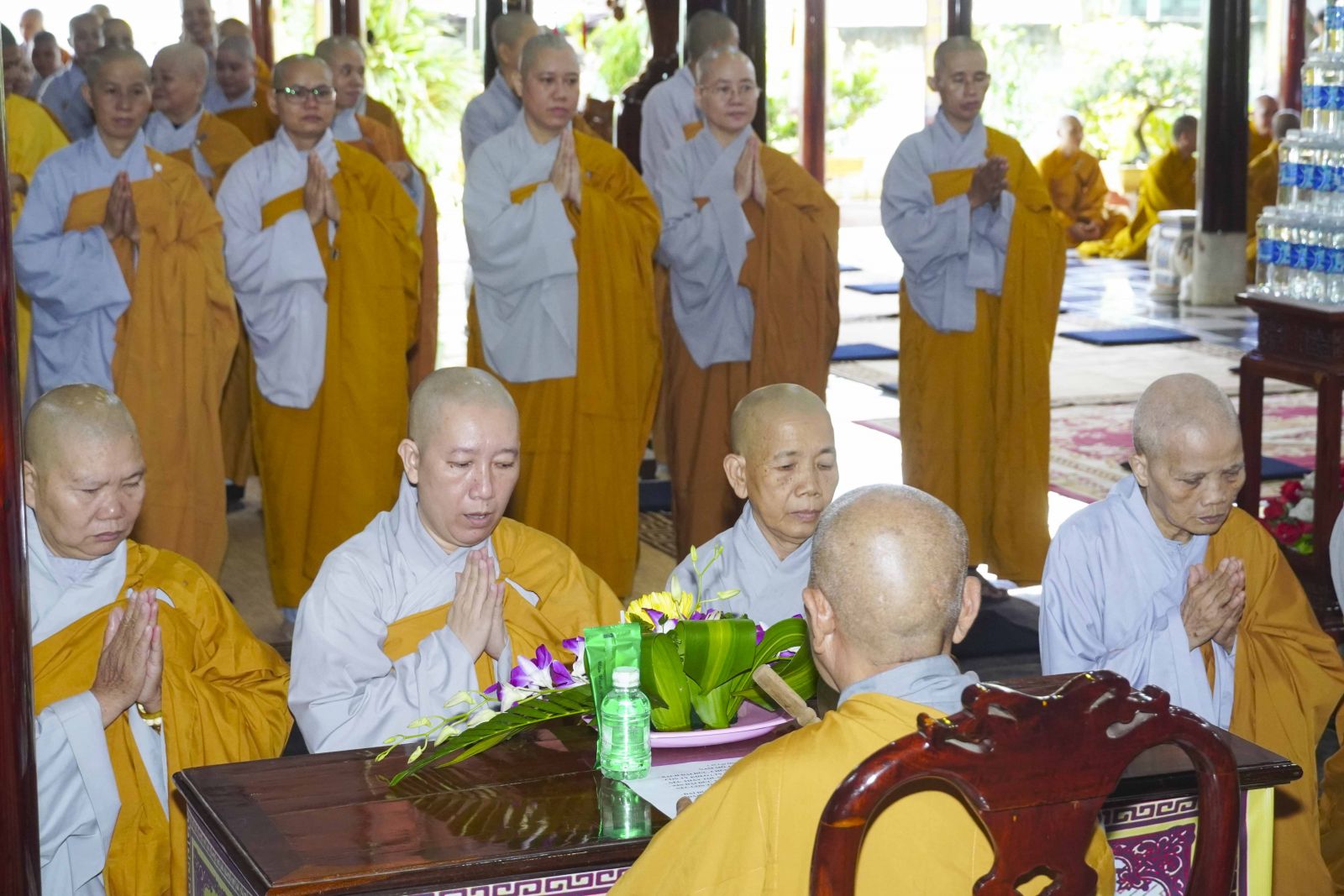 Sau đó, Tăng Ni đã trang nghiêm trước Chánh điện, lễ bái tam bảo và yết ma tác pháp mãn hạ, tự tứ theo nghi thức thiền môn.
