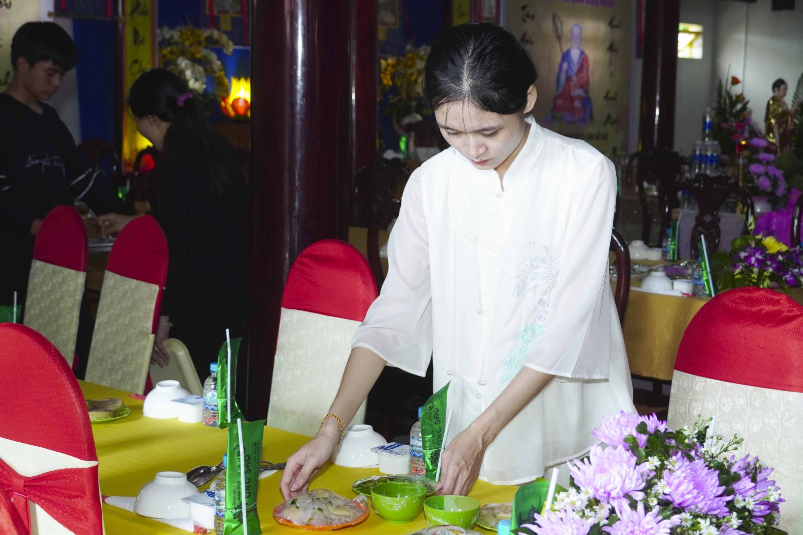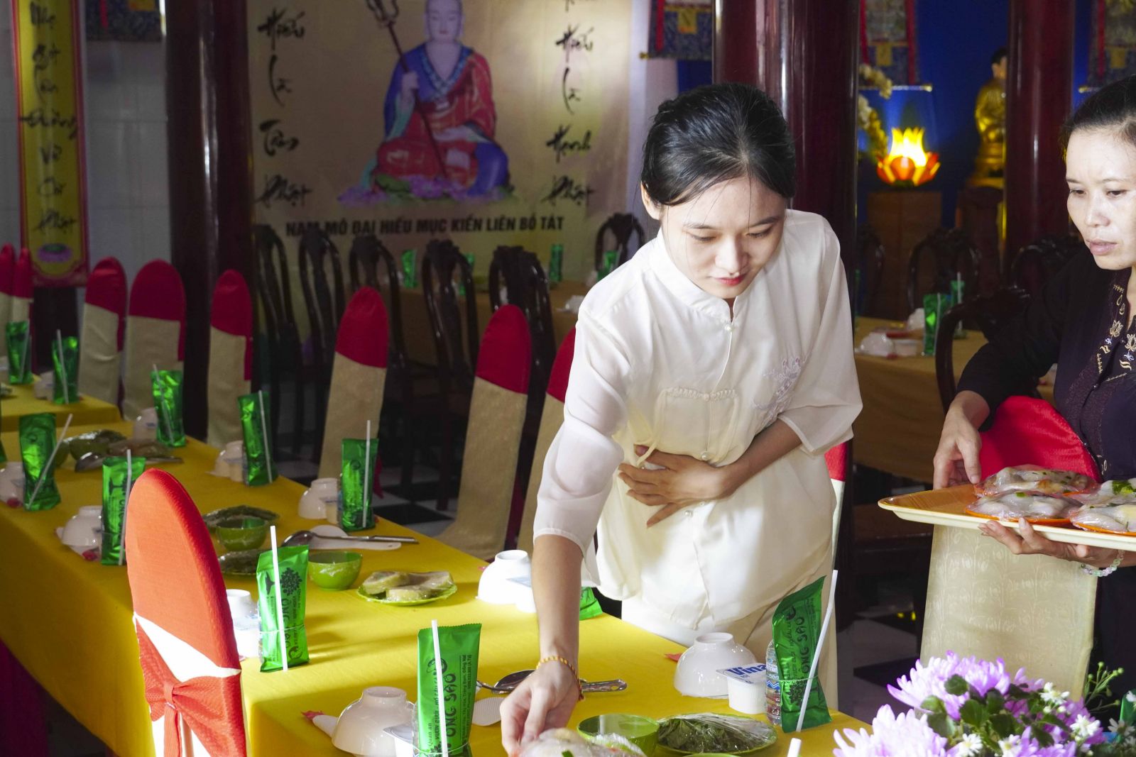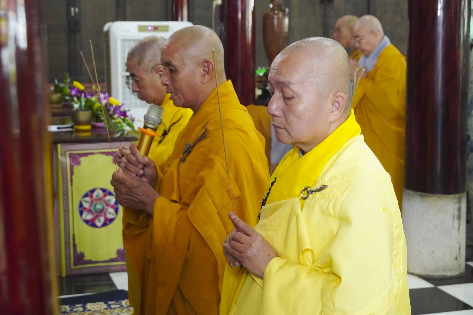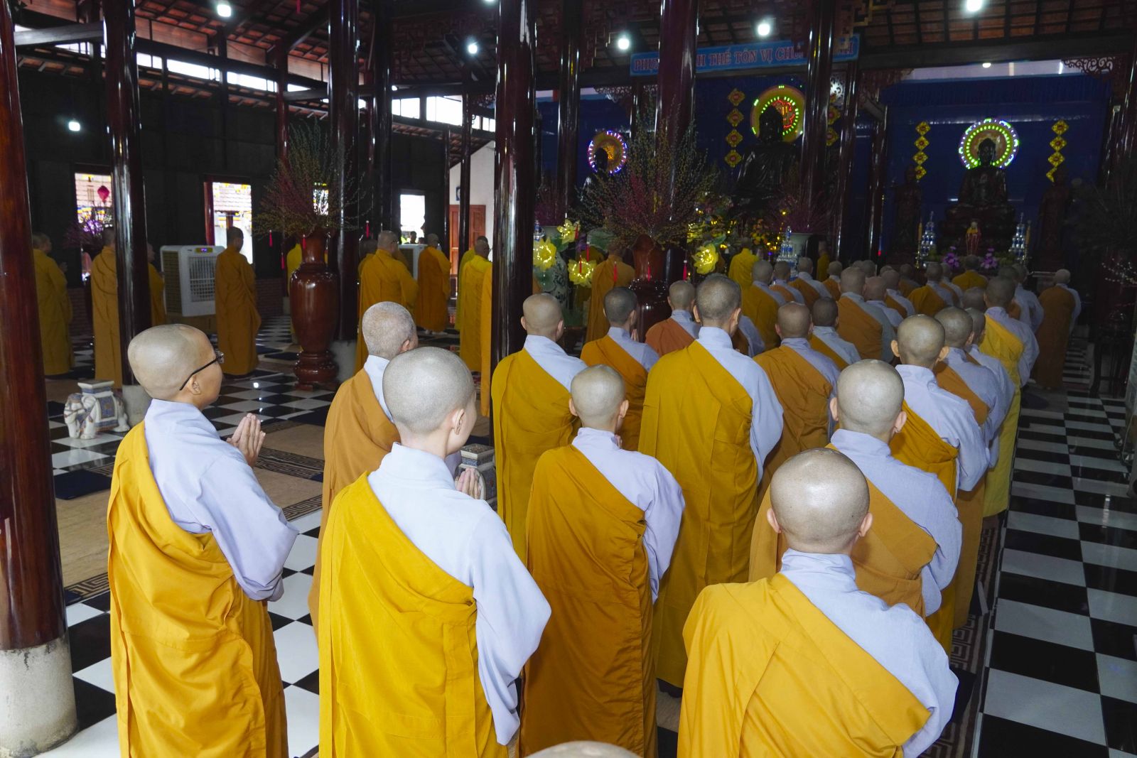 Sau đó, Tăng Ni đã trang nghiêm trước Chánh điện, lễ bái tam bảo và yết ma tác pháp mãn hạ, tự tứ theo nghi thức thiền môn.