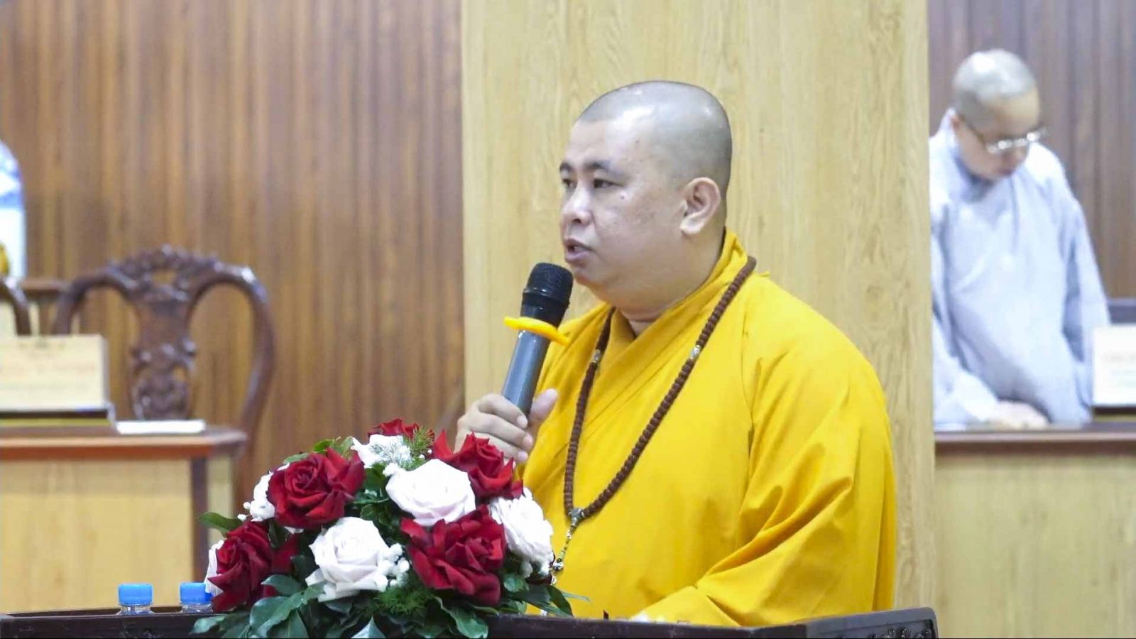Sau lời phát biểu khai mạc, ĐĐ. Thích Đạt Ma Đức Long đã thay mặt Ban Thư ký Ban Trị sự Phật giáo tỉnh báo cáo tổng kết công tác Phật sự năm 2025.