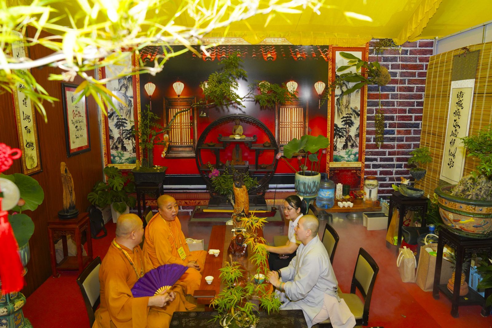 Không gian triển lãm được thiết kế trang nhã, mang đậm thiền vị, thể hiện tinh thần thanh tịnh, trí tuệ và hòa hợp của đạo Phật. Tổng thể được bố trí hài hòa, kết hợp giữa mỹ thuật truyền thống và cách trình bày hiện đại, tạo nên một không gian trầm lắng, sâu sắc, giúp người tham quan cảm nhận rõ nét chiều sâu tâm linh cũng như giá trị văn hóa mà Phật giáo đã vun bồi trong đời sống xã hội.