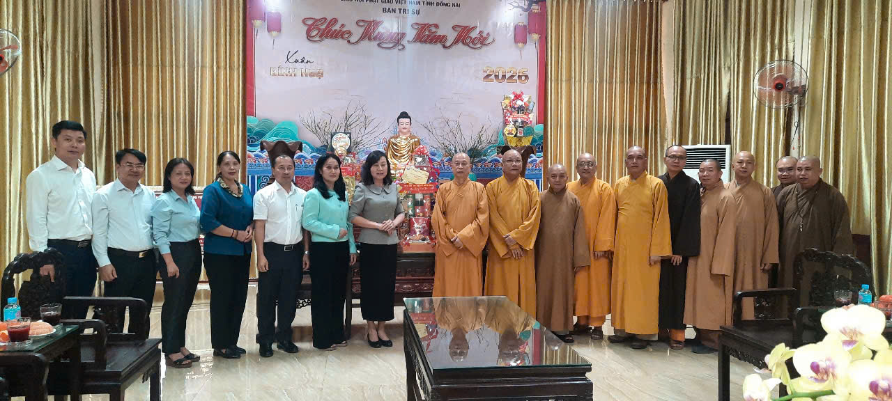 Đón tiếp đoàn có TT. Thích Huệ Khai – Ủy viên Thường trực HĐTS, Trưởng Ban Trị sự GHPGVN tỉnh Đồng Nai; cùng chư Tôn đức Phó Ban Trị sự, Thường trực và Văn phòng Ban Trị sự Phật giáo tỉnh.
