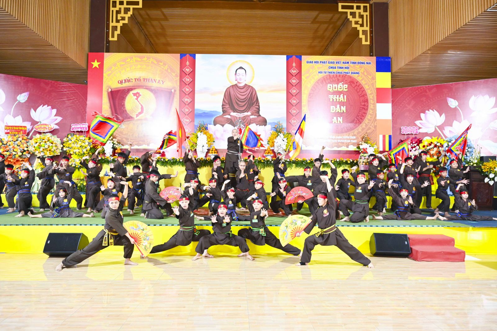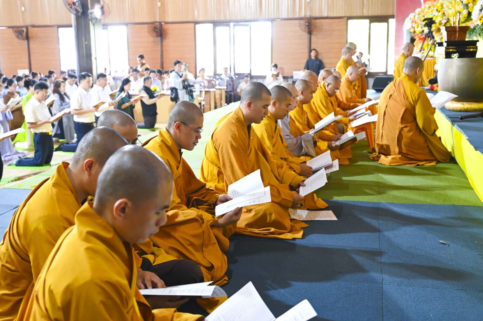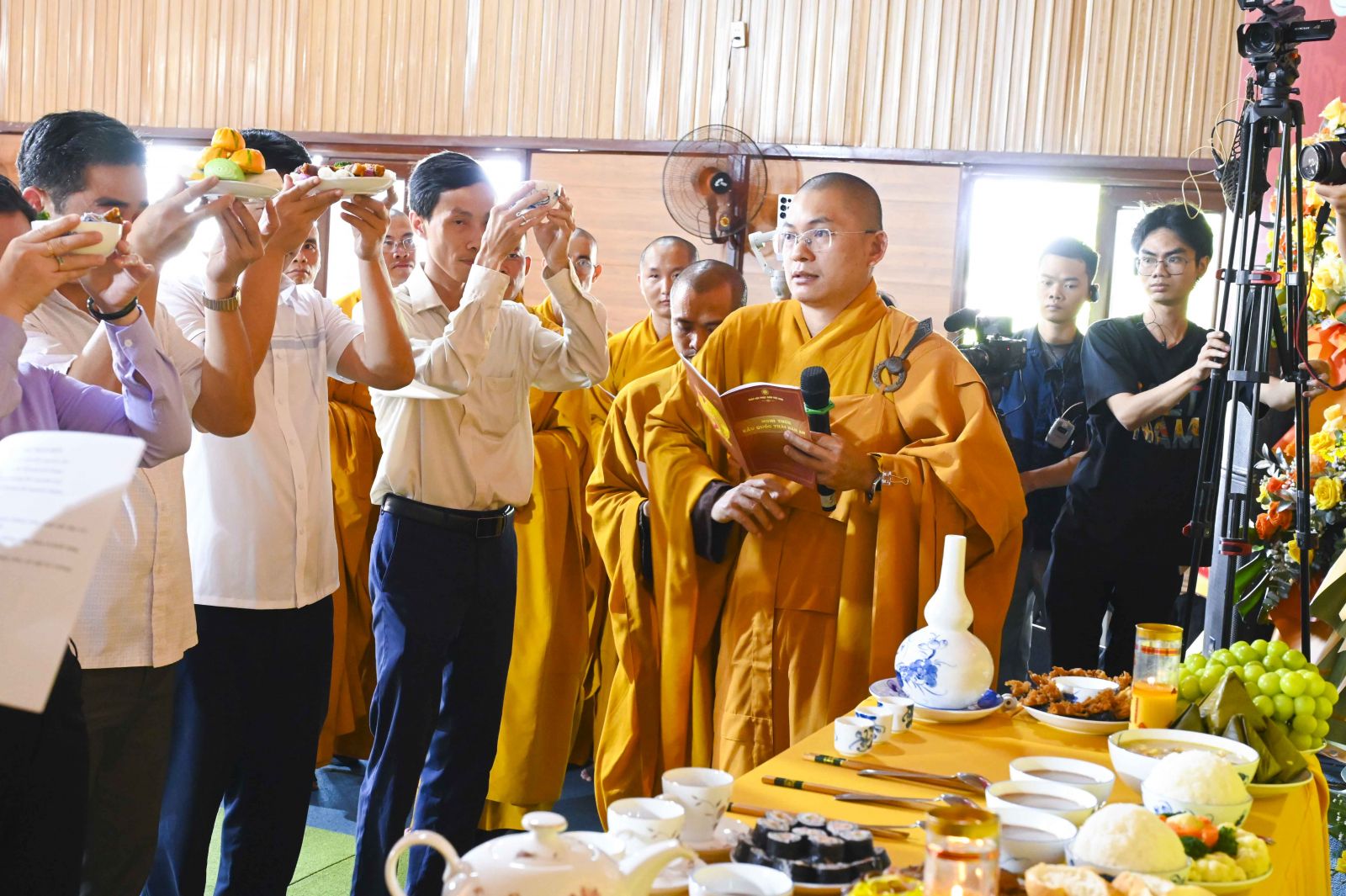 Trong phần nghi lễ chính của đàn tràng Cầu Quốc Thái Dân An, chư Tôn đức đã trang nghiêm trì tụng kinh điển, xưng tán hồng danh chư Phật, cầu nguyện cho quốc thái dân an, mưa thuận gió hòa, đất nước thanh bình, nhân dân ấm no, đạo pháp trường tồn. Từng câu kinh, tiếng mõ, lời kệ vang lên nhịp nhàng, sâu lắng, lan tỏa năng lượng an lành đến muôn nơi.
