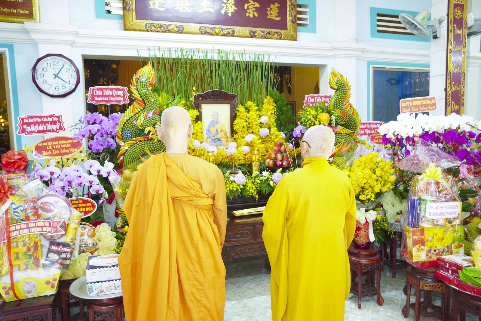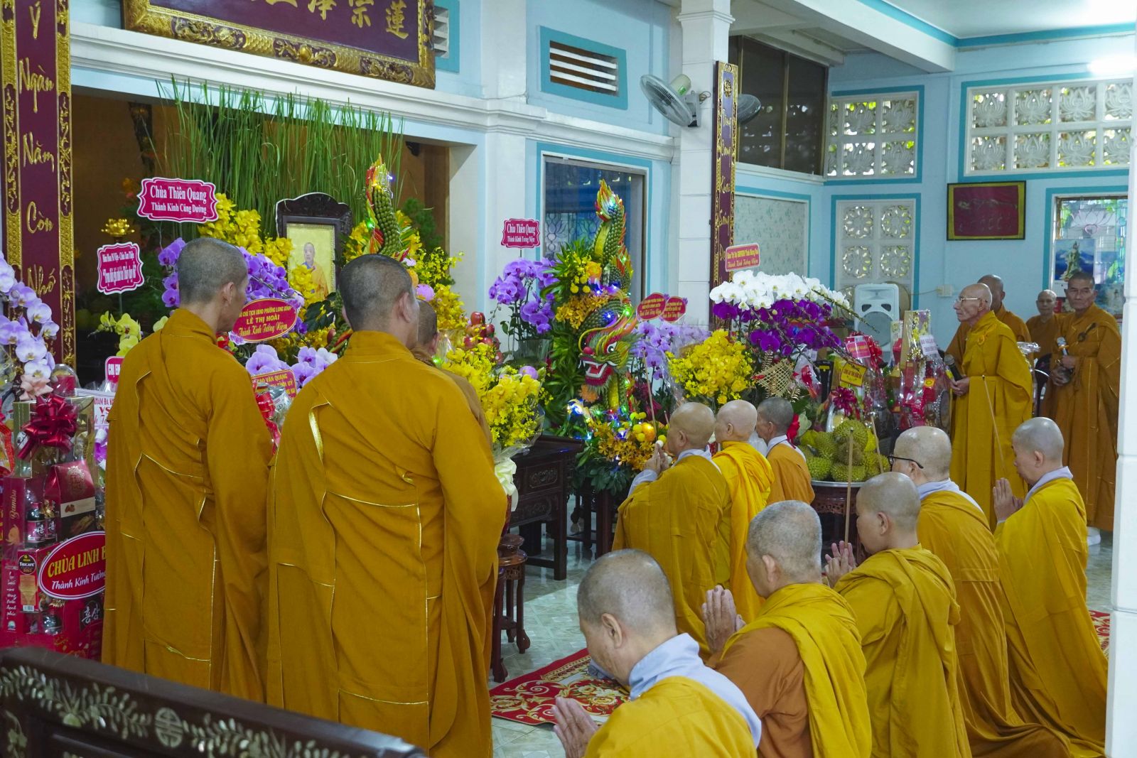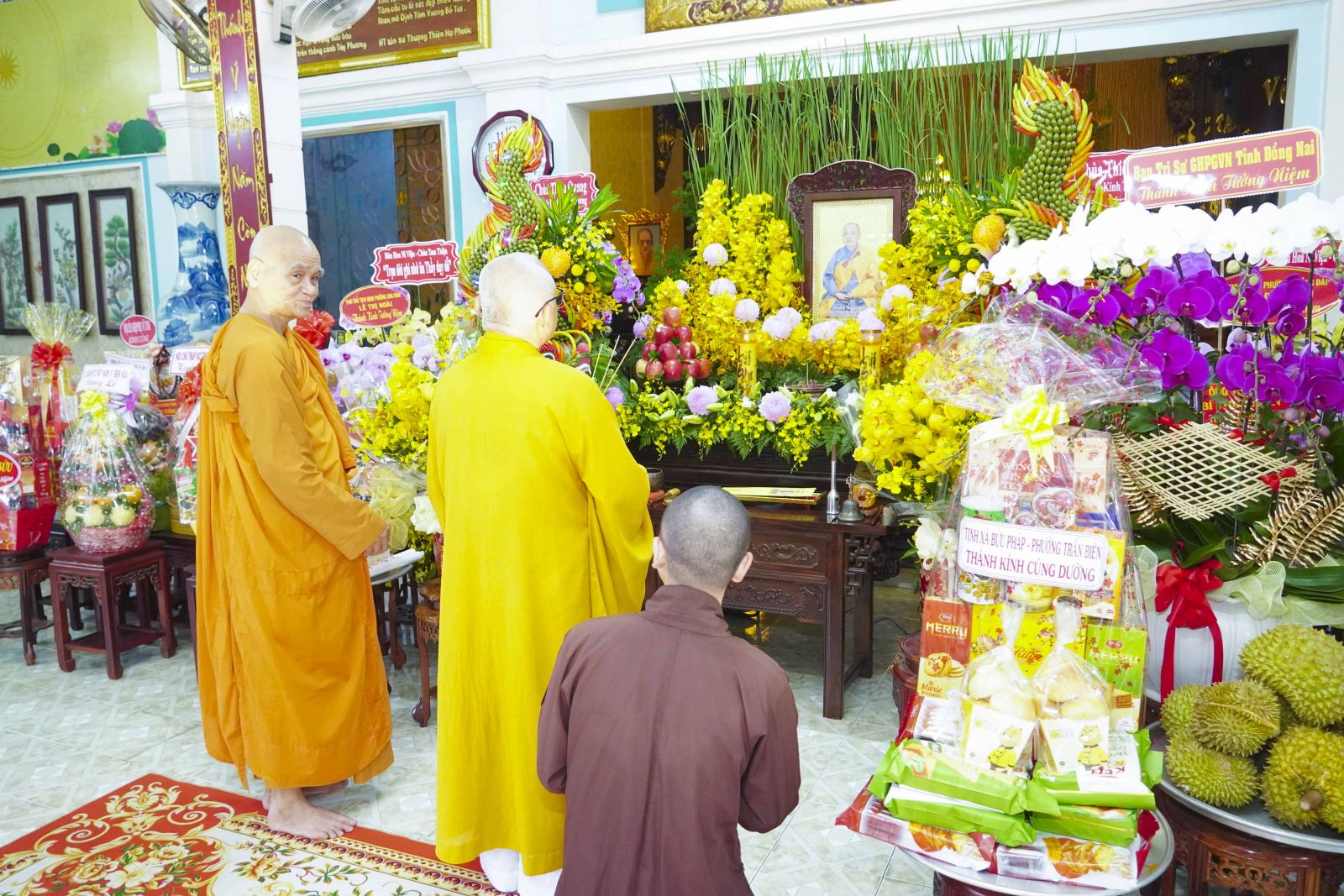 Đoàn có TT. Thích Huệ Khai - Ủy viên Thường trực HĐTS, Trưởng Ban Trị sự, Trưởng ban Tăng sự GHPGVN tỉnh Đồng Nai; HT. Thích Bửu Chánh - Ủy viên Thư ký HĐTS, Phó Trưởng ban Thường trực Ban Trị sự GHPGVN tỉnh; HT. Thích Tĩnh Cường - Ủy viên HĐTS, Phó Trưởng ban Thường trực Ban Trị sự GHPGVN tỉnh; TT. Pháp Quyền - Ủy viên HĐTS, Phó ban kiêm Chánh Thư ký Ban Trị sự GHPGVN tỉnh; cùng chư Tôn đức Thường trực Ban Trị sự, chư Tôn đức Văn phòng Ban Trị sự Phật giáo tỉnh đến dâng hương tưởng niệm.