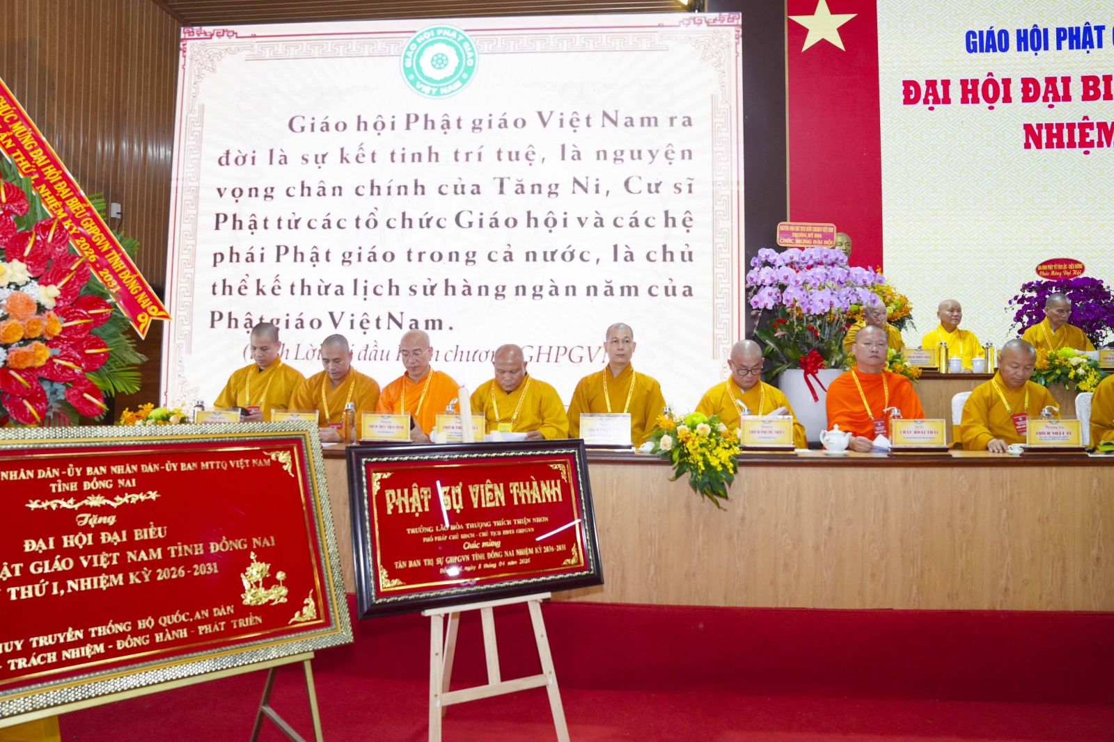 Ban đạo từ nhằm sách tấn, chỉ đạo, định hướng hoạt động Phật sự trong nhiệm kỳ mới cho Ban Trị sự. Trưởng lão Hòa thượng Chủ tịch nhấn mạnh, Đại hội đại biểu Phật giáo tỉnh Đồng Nai lần thứ I (2026–2031) diễn ra trong bối cảnh hết sức ý nghĩa: toàn Giáo hội vừa long trọng kỷ niệm 45 năm thành lập (1981–2026), đồng thời Phật giáo tỉnh nhà cũng đánh dấu chặng đường 44 năm hình thành và phát triển. Đây cũng là bước chuẩn bị quan trọng hướng đến Đại hội đại biểu Phật giáo toàn quốc lần thứ X sắp diễn ra tại Học viện Phật giáo Việt Nam tại TP.HCM. Sự kiện hôm nay không chỉ thể hiện tinh thần kế thừa và phát triển của tổ chức Giáo hội tại địa phương, mà còn là minh chứng sinh động cho sự hòa hợp, thống nhất ý chí và hành động của Tăng Ni, Phật tử trong tiến trình phụng sự đạo pháp và dân tộc.