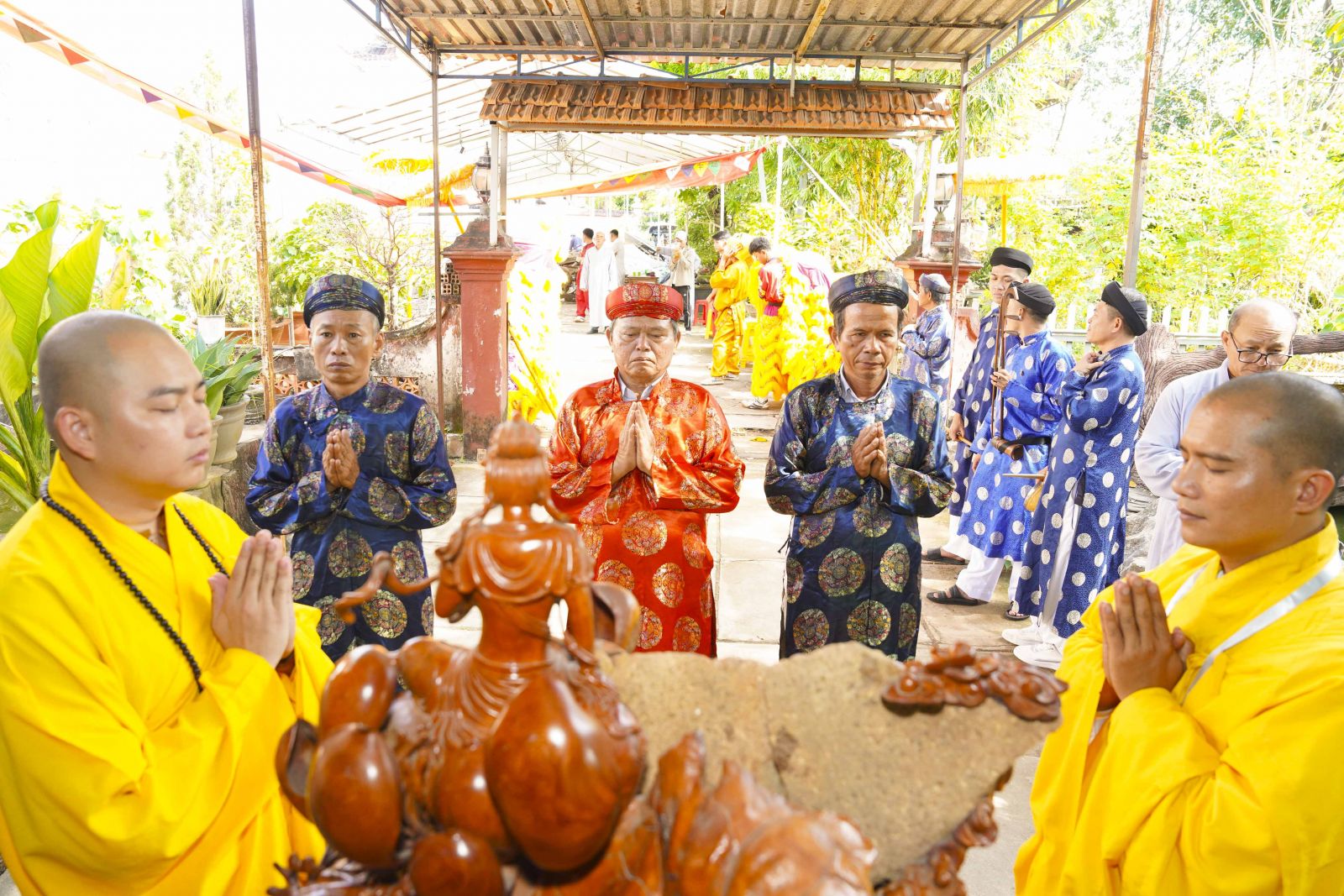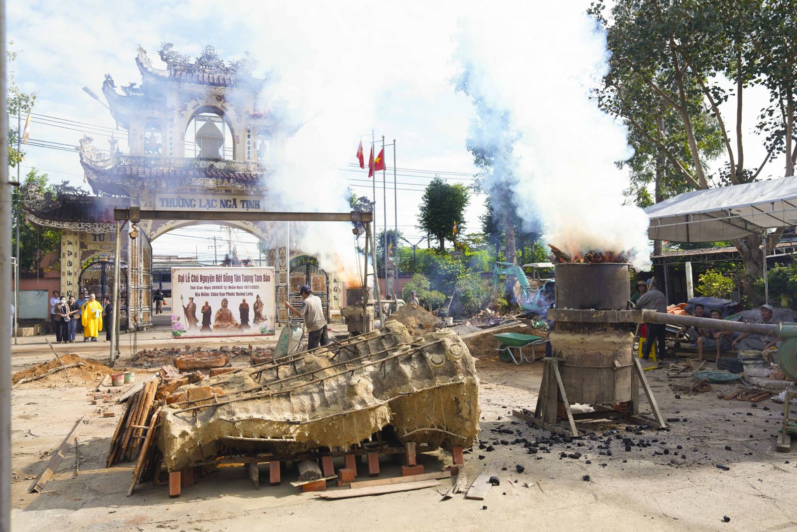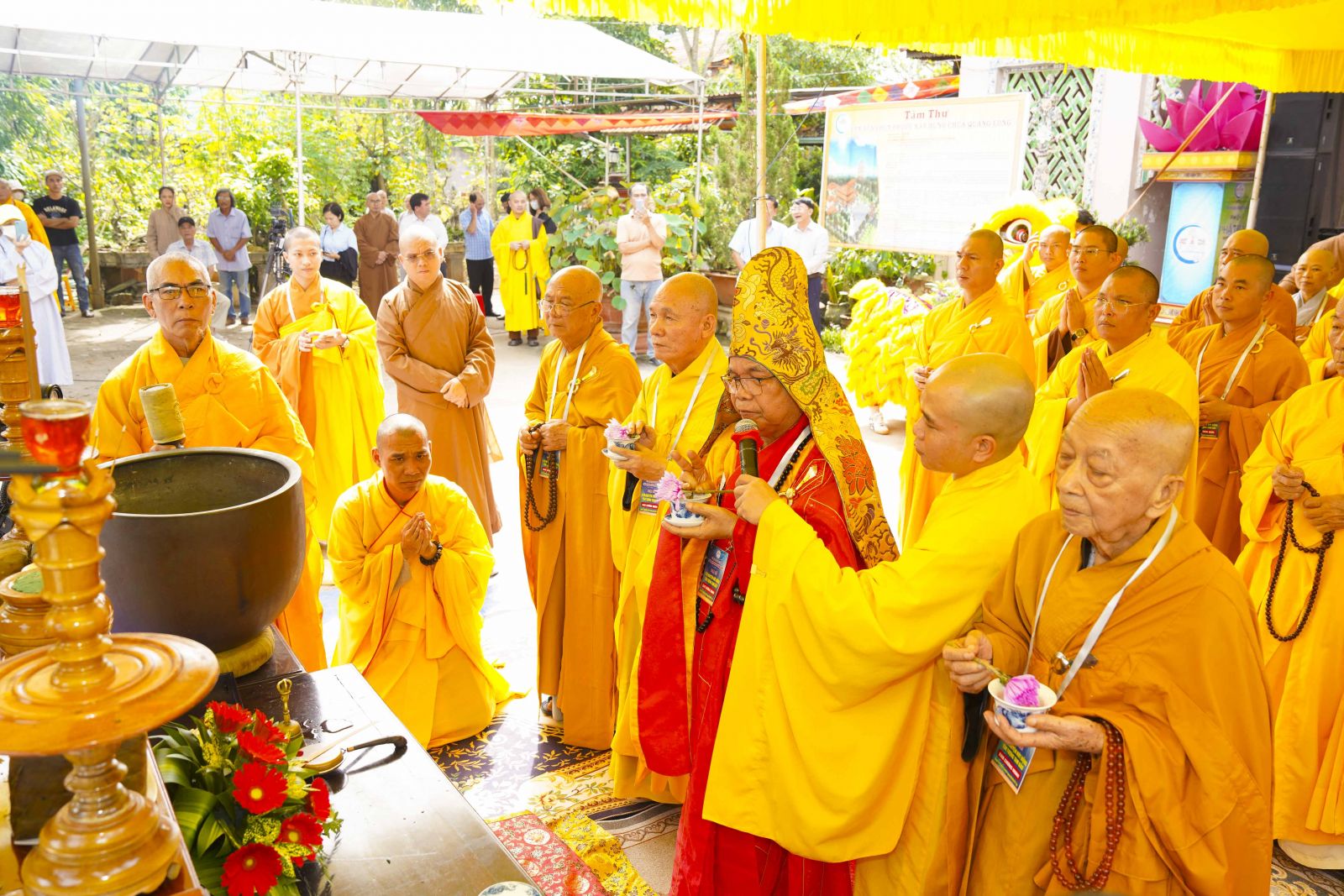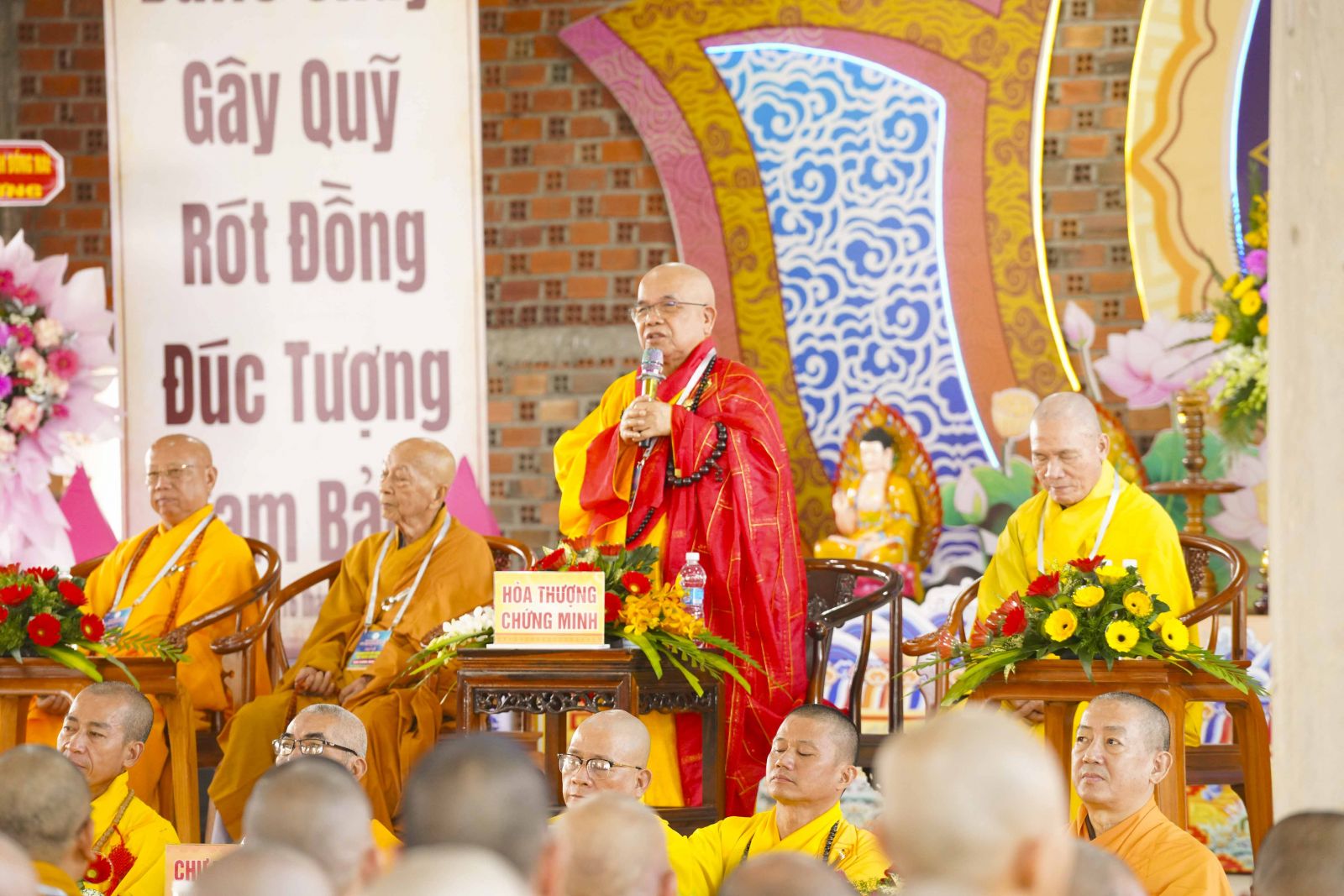 Buổi lễ Rót đồng Tôn tượng Tam bảo trang nghiêm khép lại dưới sự Chứng minh và chú nguyện chư Tôn Đức giáo phẩm Chứng minh, chư Tôn đức Tăng Ni trụ trì các Tự viện cùng sự cầu nguyện của bà con Phật tử xa gần.