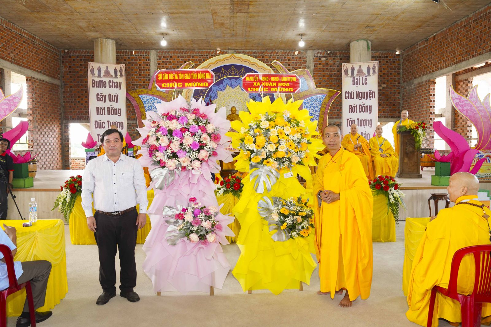 Tại buổi lễ, Đại đức Trụ trì đã đón nhận nhiều lẵng hoa chúc mừng của đại diện các cấp lãnh đạo Chính quyền tỉnh Đồng Nai và xã Xuân Hòa. Chúc mừng buổi lễ được thành tựu, mang lại ngôi phạm vũ trang nghiêm, để bà con Phật tử địa phương tiếp tục tu học và phụng sự đạo pháp.