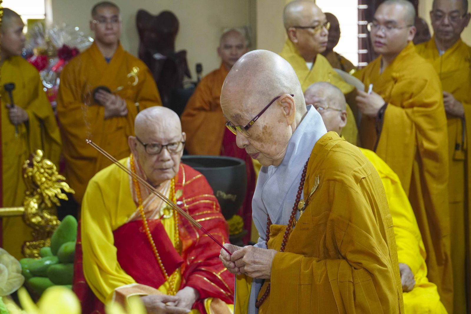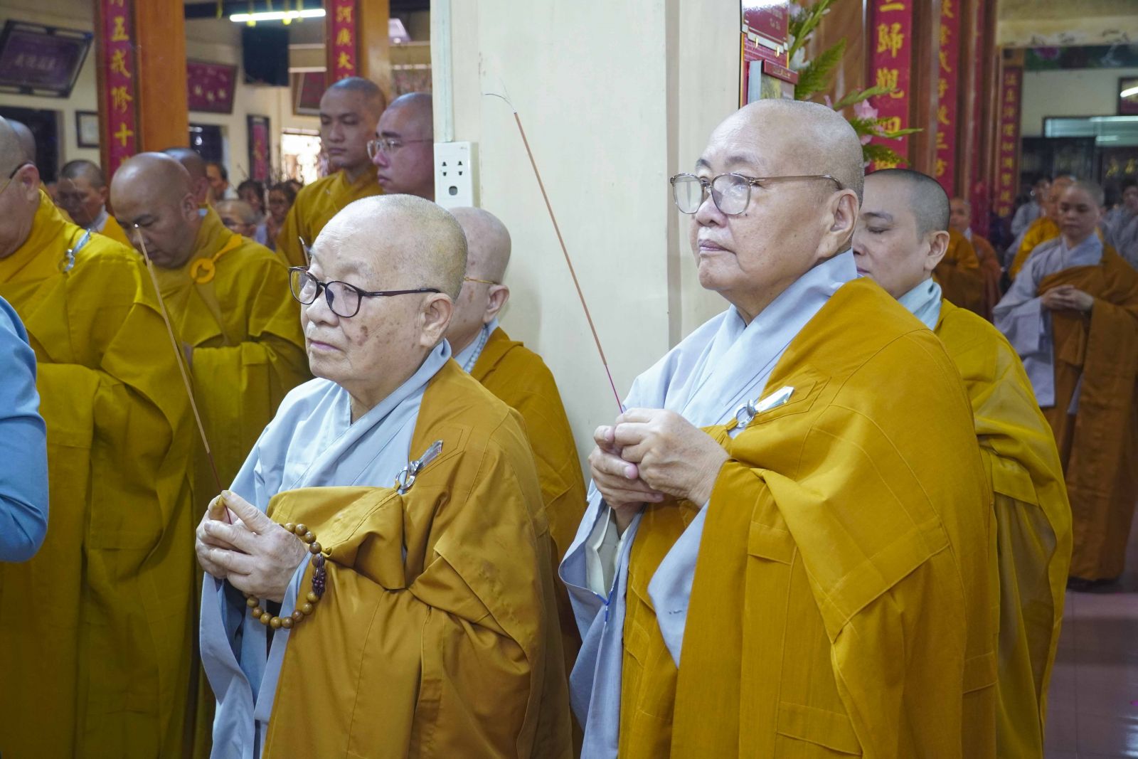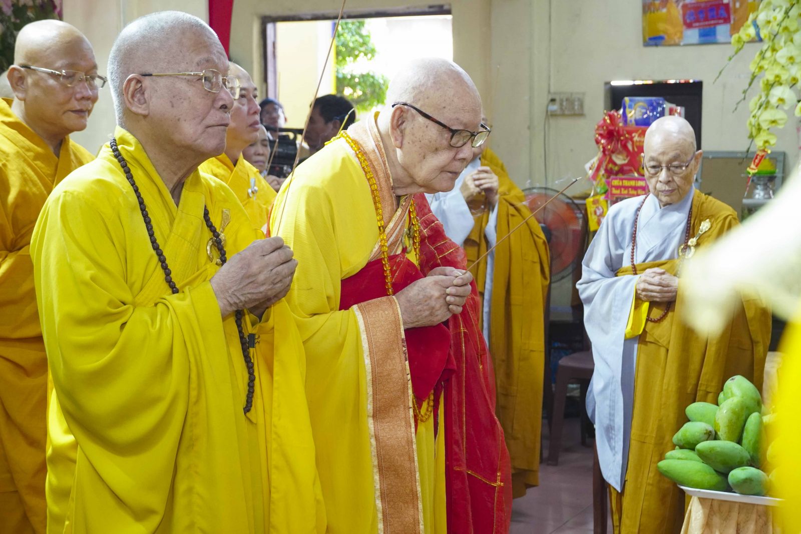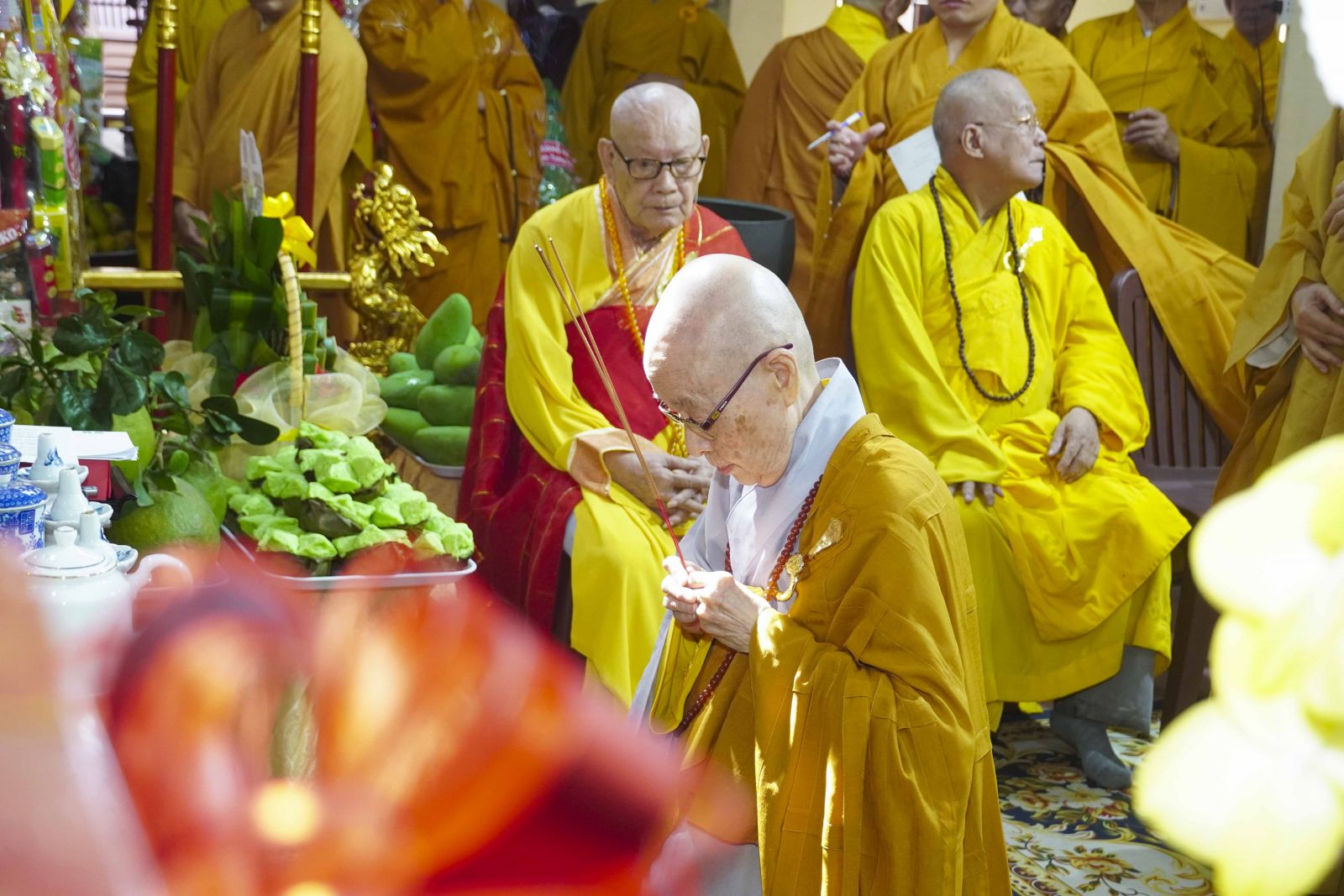 Trong không khí trang nghiêm của thời khóa lễ, chư Tôn đức đã niêm hương bạch Phật, thành kính dâng hương tưởng niệm Tổ sư Thành Nhạc – Ẩn Sơn cùng chư vị tiền bối Tổ sư. Mỗi nén hương được thắp lên không chỉ là biểu hiện của lòng thành kính, mà còn là sự tiếp nối mạch sống tâm linh, kết nối giữa quá khứ – hiện tại – tương lai của Môn phong pháp phái.