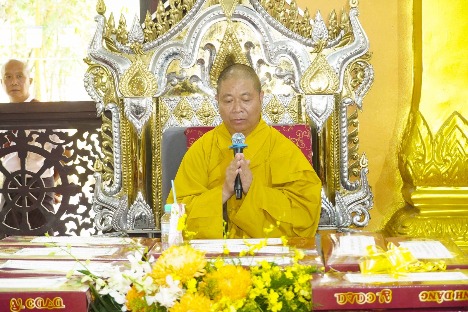 HT.Thích Bửu Chánh phát biểu khai mạc, bày tỏ lòng tri ơn sâu sắc đến bậc Chư tôn thiền đức đã quang lâm chứng minh cho lễ dâng y càng thêm phần ý nghĩa. Đồng thời, HT cũng bày tỏ lòng tri ân đến các thiện nam tín nữ Phật tử - những người con của đấng Từ Phụ đã về đây với tâm bồ đề, không chỉ bày tỏ lòng tôn kính vô biên đến Tam Bảo, mà còn thể hiện sự thấu hiểu và chia sẻ của Phật tử đối với chư Tăng sau ba tháng An cư Kiết hạ mùa mưa.