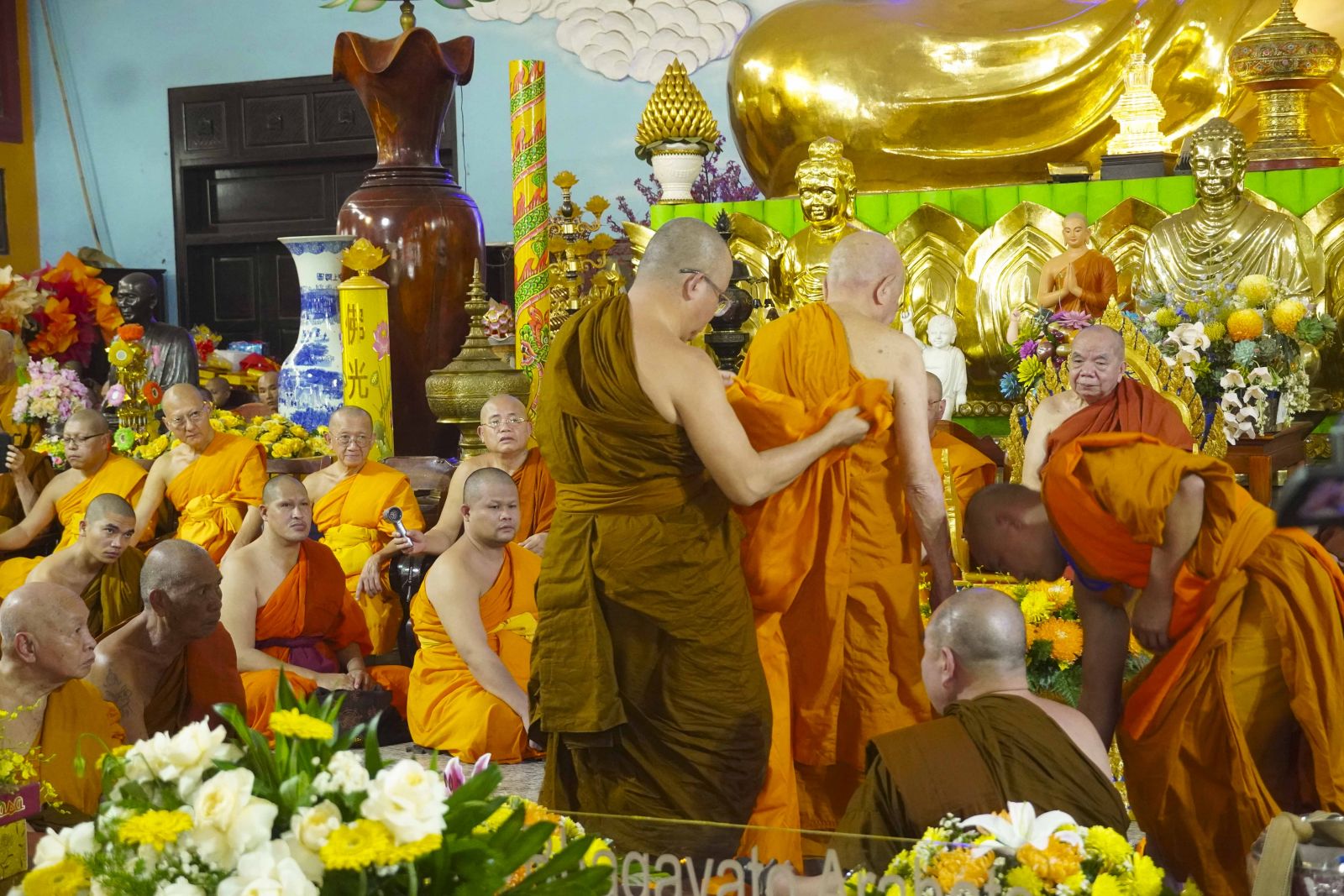 Theo truyền thống Nam tông, chư Tôn đức Tăng đã cử hành nghi thức tuyên ngôn Tăng sự và thọ y trong không khí vô cùng linh thiêng giữa ngôi chánh điện của Thiền viện Phước Sơn.
