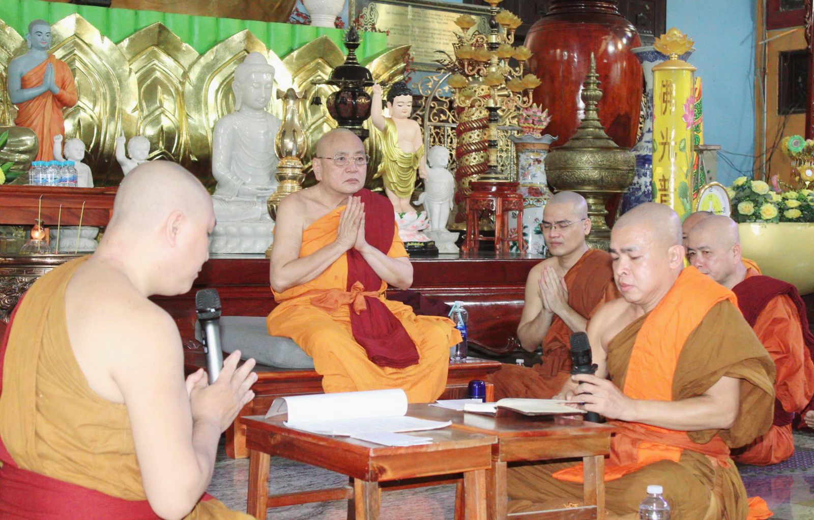 Đối với người xuất gia, hàng tháng có hai ngày quan trọng để cử hành lễ sám hối và Bố-tát. Theo truyền thống Phật giáo Theravada, sau thời khóa lễ bái tam bảo xin giới, hòa thượng trụ trì điều phối nghi lễ sám hối và Bố-tát. Hòa thượng Thích Bửu Chánh giáo giới đại chúng, Ngài nhấn mạnh "thân tứ đại dễ bị chi phối do các tác động ngoại viên, nếu chúng ta không duy trì chánh niệm thì phiền não ngủ ngầm luôn có cơ hội khiến thân khẩu ý tạo nghiệp nhanh hơn...
