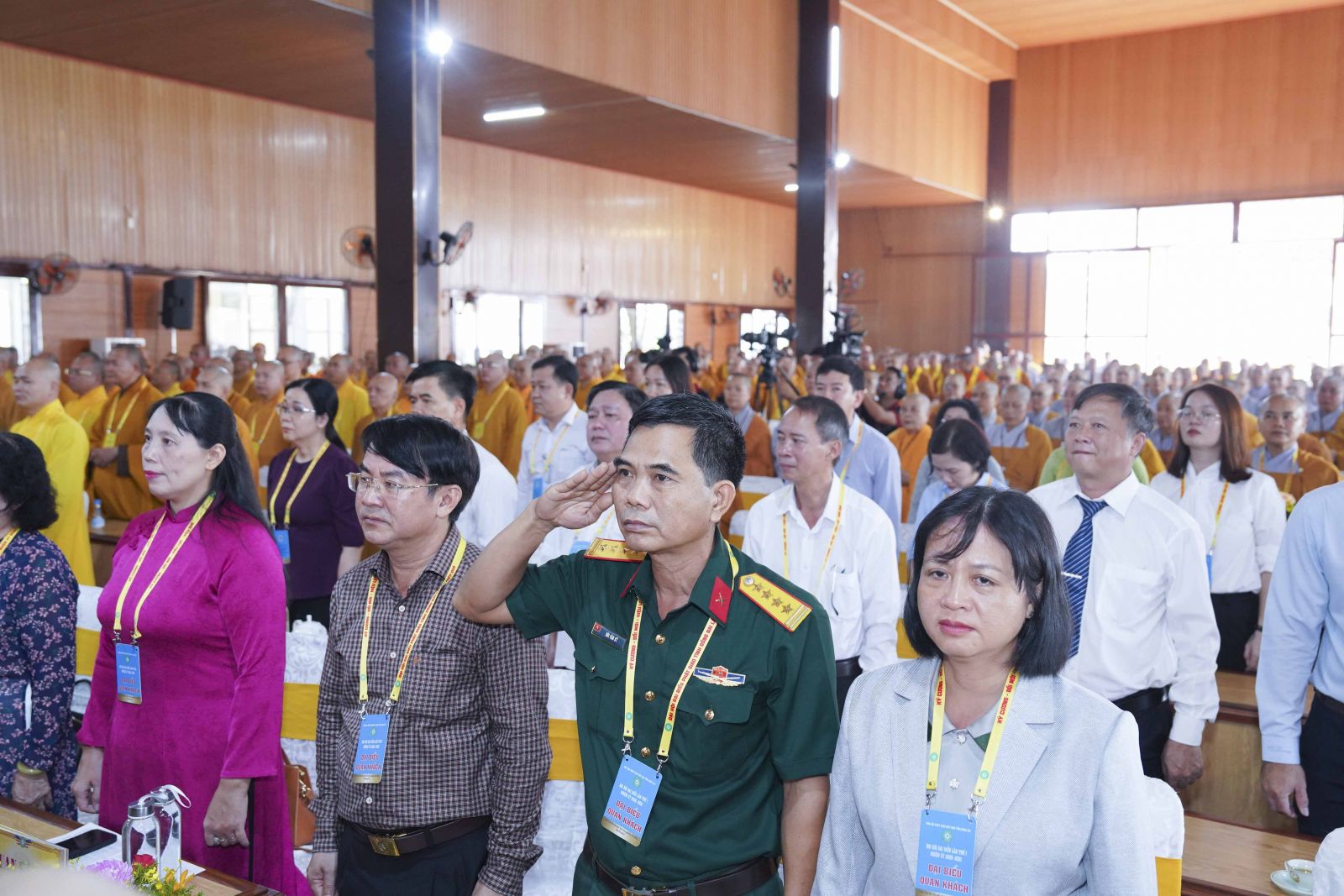 Buổi lễ có sự quang lâm chứng minh của Trưởng lão HT. Thích Thiện Pháp – Ủy viên Thường trực HĐCM, Phó Chủ tịch Thường trực HĐTS; HT. Thích Thiện Đạo – Thành viên HĐCM, Chứng minh Ban Trị sự GHPGVN tỉnh; cùng chư tôn giáo phẩm Chứng minh Ban Trị sự tỉnh; Về Ban Trị sự tỉnh có TT. Thích Huệ Khai - Ủy viên Thường trực HĐTS, Trưởng Ban Trị sự GHPGVN tỉnh, Trưởng Ban Tổ chức; HT. Thích Bửu Chánh - Ủy viên Thư ký HĐTS, Phó trưởng ban Thường trực Ban Trị sự GHPGVN tỉnh, Phó Ban Tổ chức; HT. Thích Tĩnh Cường - Ủy viên HĐTS, Phó trưởng ban Thường trực Ban Trị sự tỉnh, Phó ban Tổ chức; TT. Pháp Quyền - Ủy viên HĐTS, Phó ban kiêm Chánh Thư ký Ban Trị sự GHPGVN tỉnh; cùng chư Tôn đức Phó Ban Trị sự, Trưởng các Ban ngành chuyên môn và sự tham dự của chư Tăng Ni các tự viện trong tỉnh cùng đông đảo quý Phật tử gần xa. Không gian buổi lễ được trang hoàng trang nghiêm, thể hiện rõ nét văn hóa Phật giáo truyền thống, góp phần tạo nên bầu không khí thanh tịnh, hoan hỷ và đầy ý nghĩa.