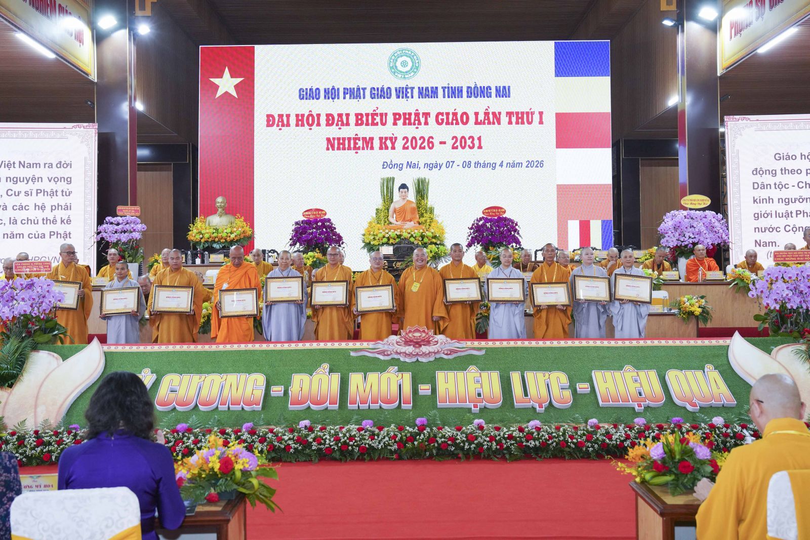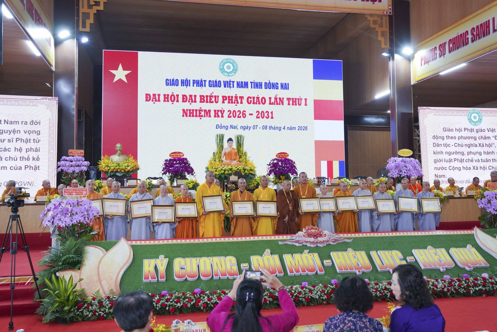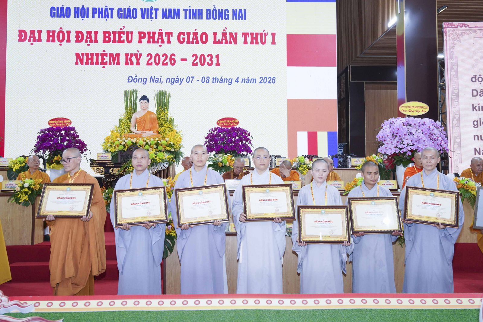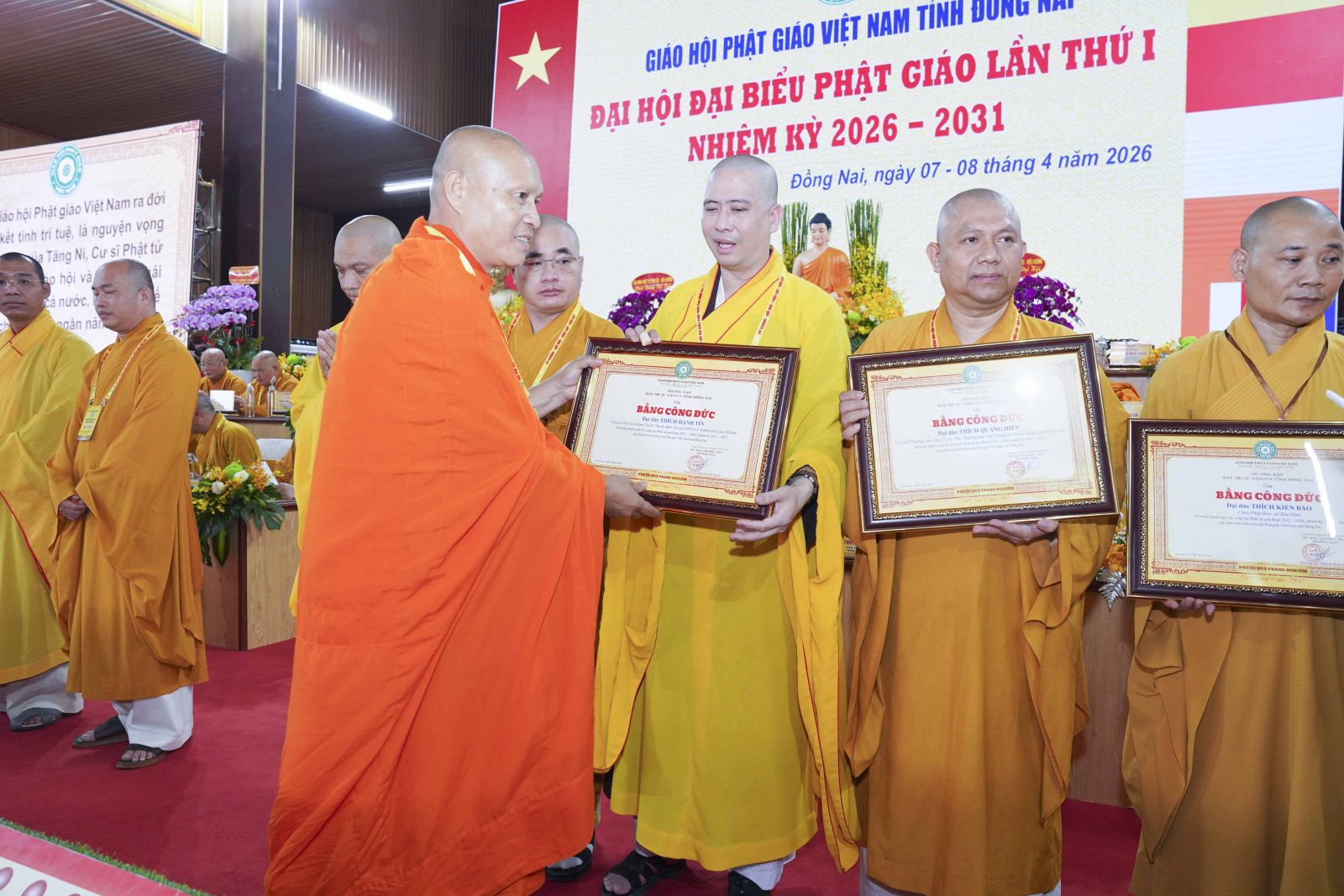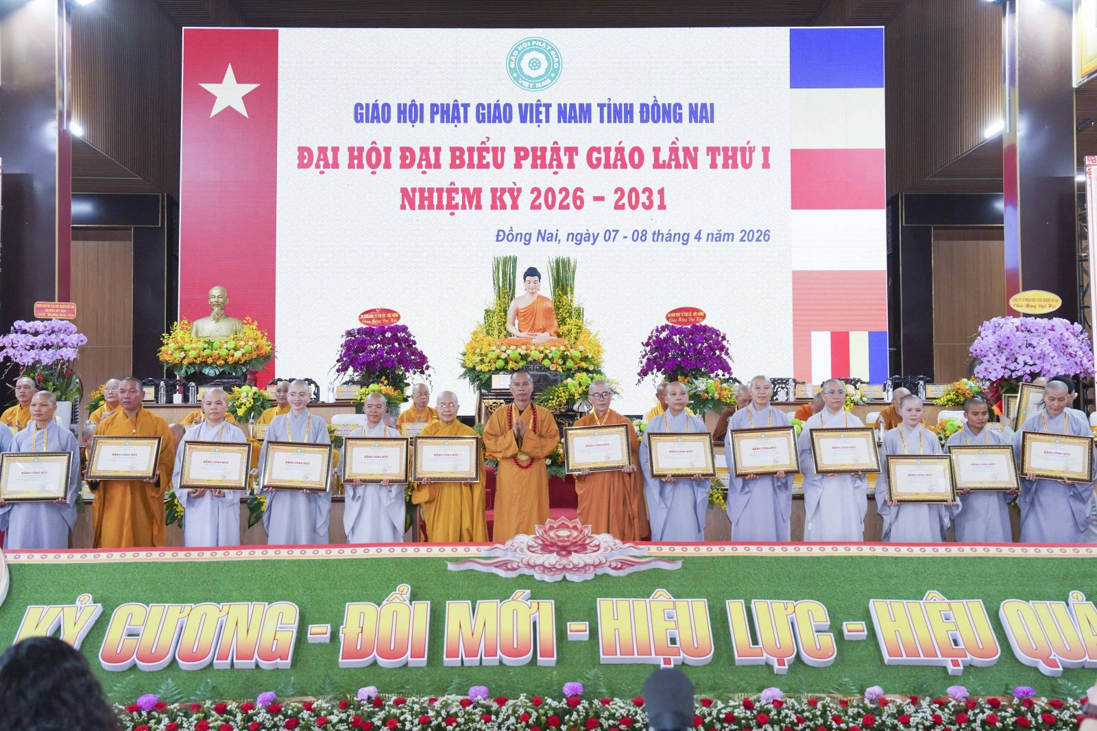 Nhân dịp này, Ban Trị sự Phật giáo tỉnh Đồng Nai cũng đã trao tặng Bằng tuyên dương công đức đến chư tôn đức đã có nhiều đóng góp thiết thực cho sự phát triển chung của Phật giáo tỉnh nhà. Những phần thưởng cao quý này là sự tri ân sâu sắc của Giáo hội đối với tinh thần phụng sự vô ngã, vị tha của chư Tăng Ni, đồng thời là nguồn động viên lớn lao để tiếp tục phát huy các giá trị tốt đẹp trong thời gian tới.