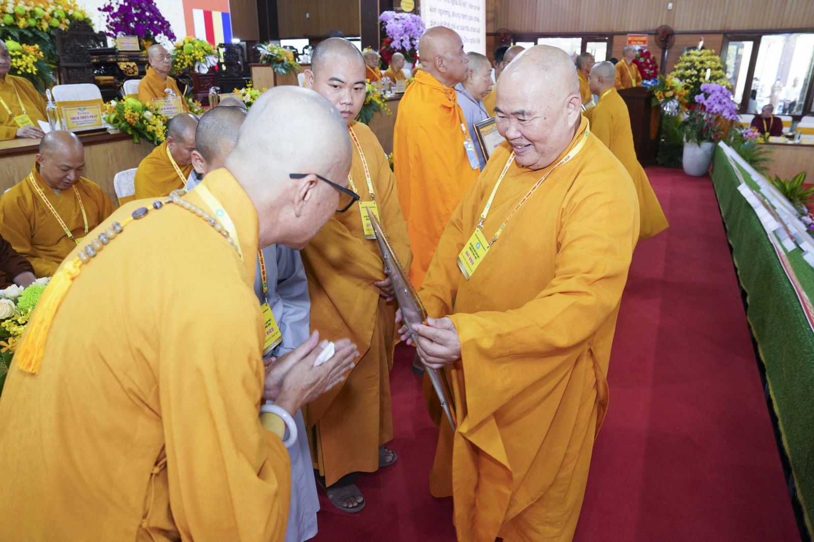 Một trong những nội dung trọng tâm của buổi lễ là nghi thức trao Giáo chỉ tấn phong giáo phẩm cho chư tôn đức Tăng Ni. Theo đó, Ban Trị sự đã trang trọng công bố và trao quyết định tấn phong cho 14 vị đạt phẩm vị Thượng tọa, 5 vị đạt phẩm vị Ni trưởng và 30 vị đạt phẩm vị Ni sư. Đây là sự ghi nhận cao quý của Giáo hội đối với những nỗ lực tu tập, hành đạo và cống hiến không ngừng nghỉ của chư tôn đức trong suốt thời gian qua.