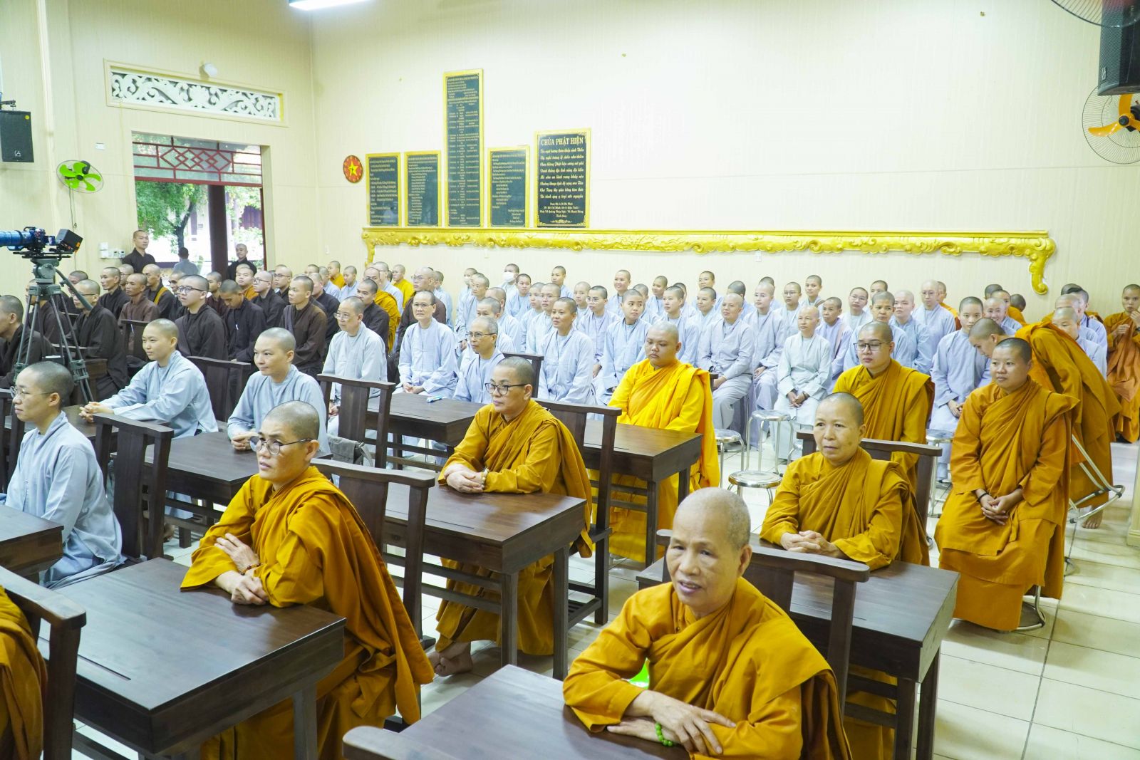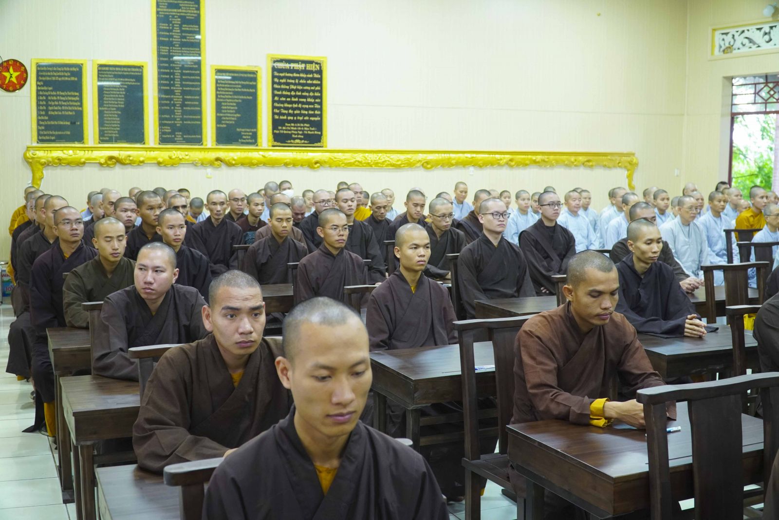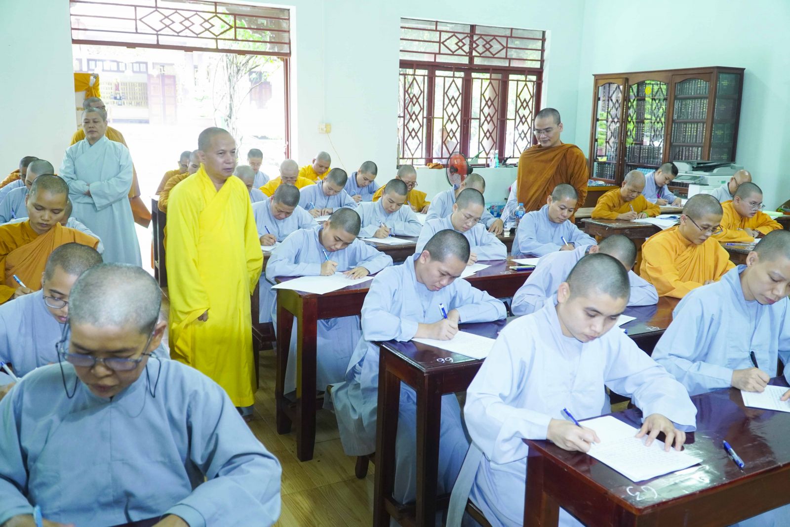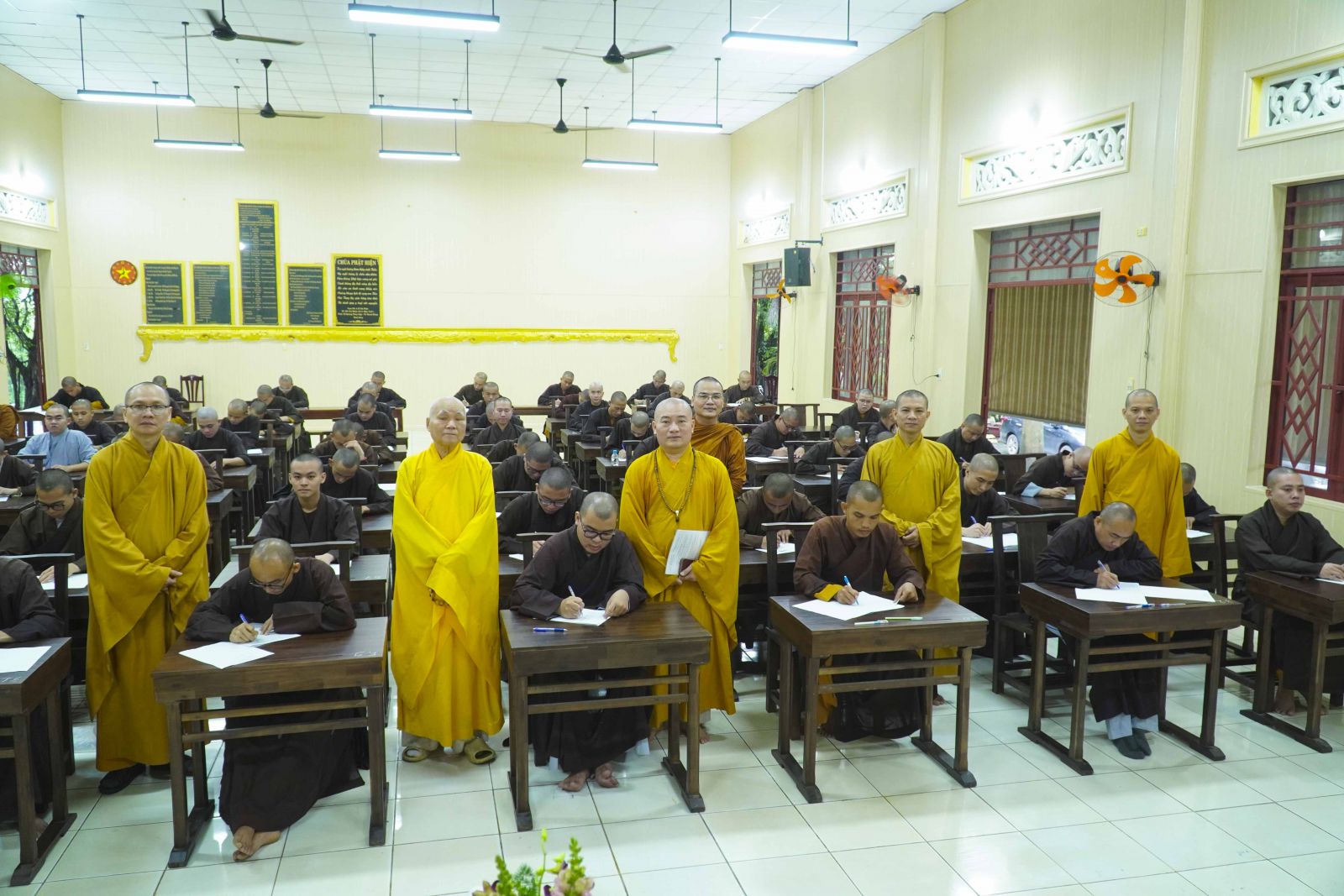 Sau lời Đạo từ của Hòa thượng Chứng minh, Tăng Ni sinh đã bước vào môn thi đầu tiên là Phật Pháp Căn Bản – thời gian: 90 phút và môn thi: Việt Văn – 90 phút.