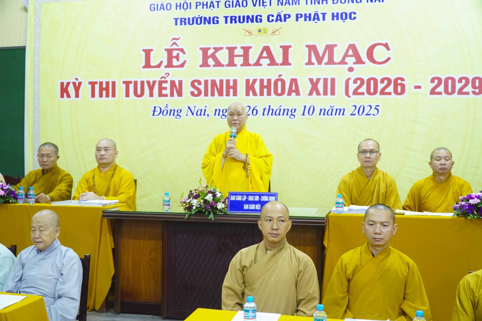 Phát biểu tại lễ Khai mạc, ĐĐ. Thích Đạt ma Quang Tuệ - Hiệu trưởng trường Trung cấp Phật học tỉnh đã chia sẻ: Trường Trung cấp Phật học tỉnh Đồng Nai được thành lập năm 1990, từ khi thành lập đến nay, Trường trung cấp Phật học Đồng Nai đã đào tạo được hàng ngàn tăng, ni sinh cho cả nước. Trước đây chỉ một cơ sở duy nhất, tuy nhiên được sự vận động và cống hiến của chư Tôn túc Hòa thượng tiền nhiệm, trường trung cấp Phật học đã thành lập được 2 cơ sở dành cho Tăng Ni riêng biệt, Chùa Phật Hiện (Cơ sở Tăng) và Chùa Huệ Giác (Cơ sở Ni). Tuy nhiên đến nay vì đặc thù của các Hệ phái Ban Giám hiệu đã quyết định mở rộng thêm hiện tại là 7 cơ sở.