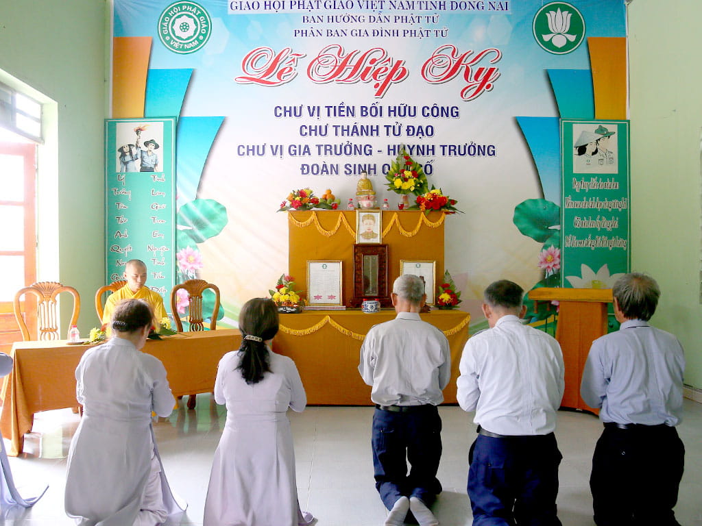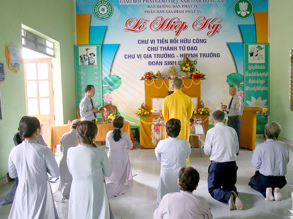 Buổi lễ được sự quang lâm chứng minh và khai lễ của Đại đức Thích Thạnh Thông – Uỷ viên Ban Trị sự GHPGVN tỉnh, trụ trì chùa Thanh Long. Huynh trưởng cấp Tấn Nguyên Tâm Phạm Thị Thanh Hằng – Trưởng BHD Phân ban GĐPT Đồng Nai; Huynh trưởng cấp Tấn Tâm Cường Nguyễn Hữu Anh – Phó trưởng Phân ban Thường trực; Huynh trưởng cấp Tấn Diệu Huệ Đoàn Thị Cúc – Phó trưởng Phân ban; Huynh trưởng cấp Tấn Đức Minh Nguyễn Tấn Tuyến – Phó trưởng Phân ban, các Huynh trưởng là Uỷ viên Phân ban cùng Huynh trưởng thuộc các đơn vị GĐPT tại phường Đồng Xoài, xã Đồng Phú và các khu vực lân cận.