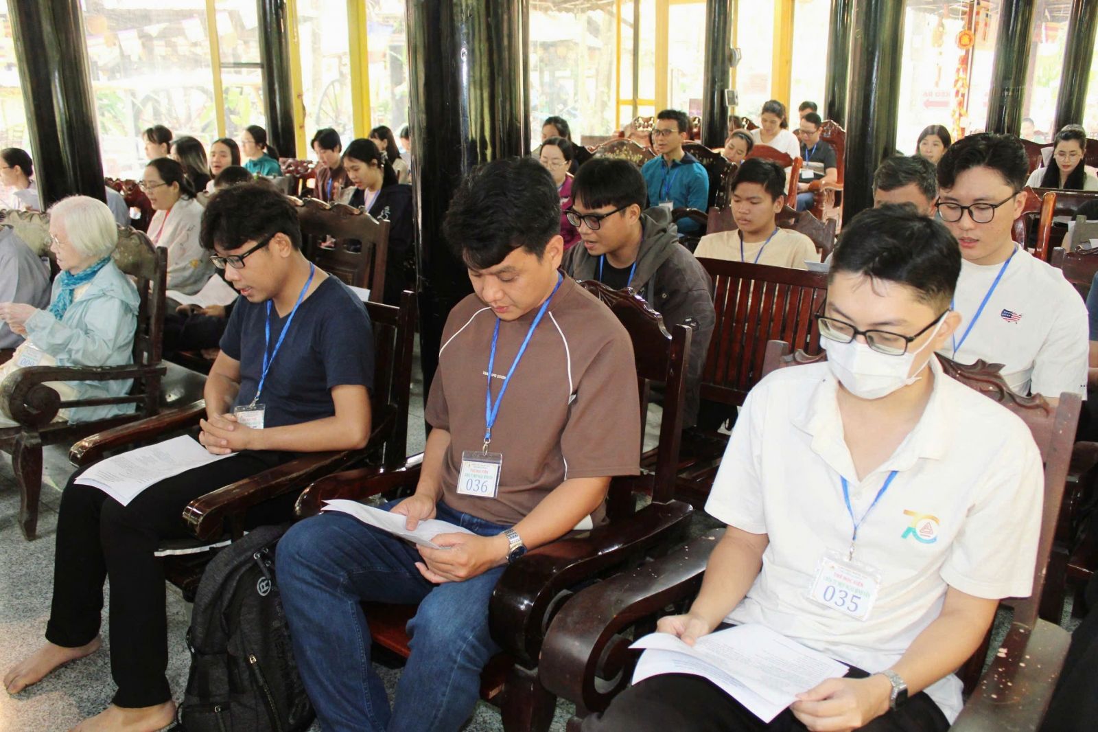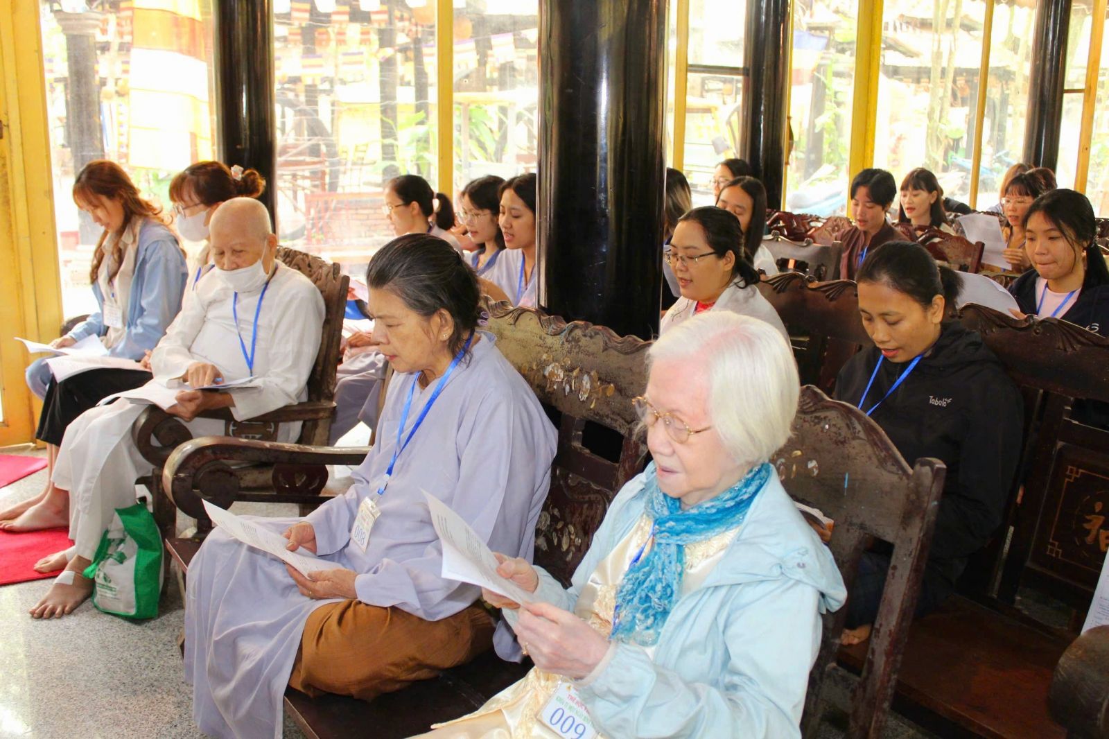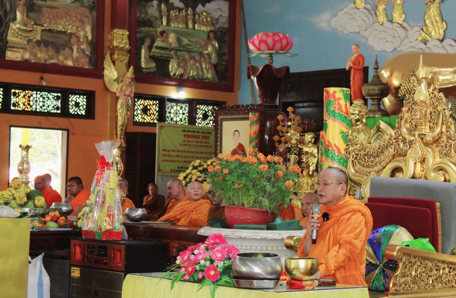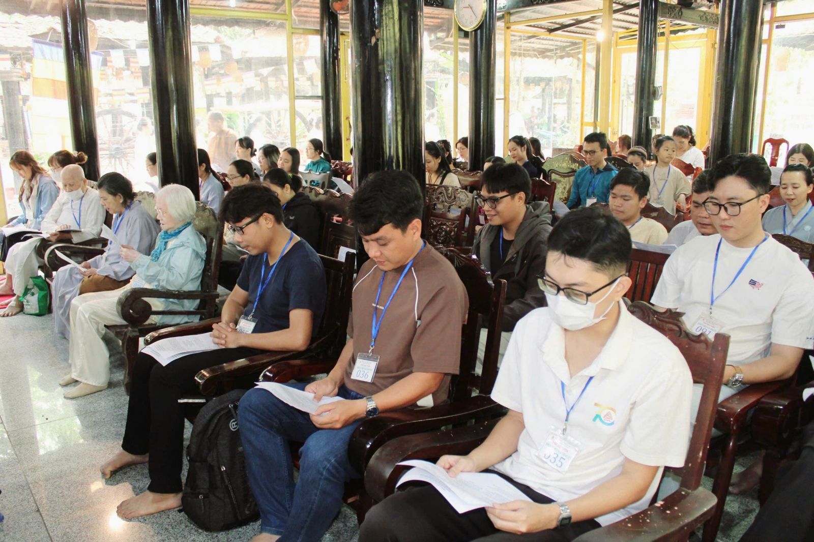 Dịp này, theo sự hướng dẫn của hòa thượng trụ trì, đại chúng vân tập chánh điện, cử hành lễ cầu an tháng giêng.