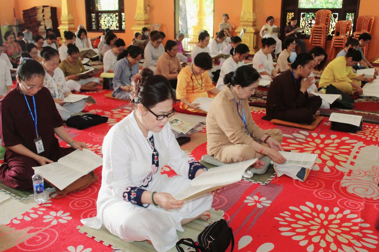 Đại đức Thích Phước Toàn điều hành khóa tu Ngày Chánh Niệm lần II, hướng dẫn đại chúng tọa thiền tĩnh lặng, tụng kinh Chuyển Pháp Luân - Rải Tâm Từ. Dịp này, Phật tử Đinh Thị Kim Dung - Phó tổng giám đốc khu du lịch Suối Tiên & Sơn Tiên) chia sẻ diễn thuyết "Quyến thuộc Bồ Đề".