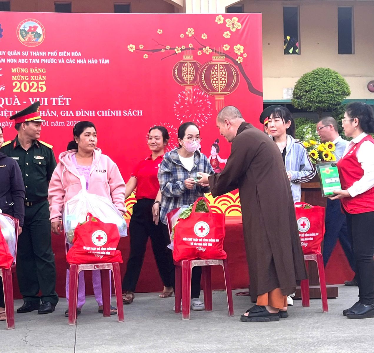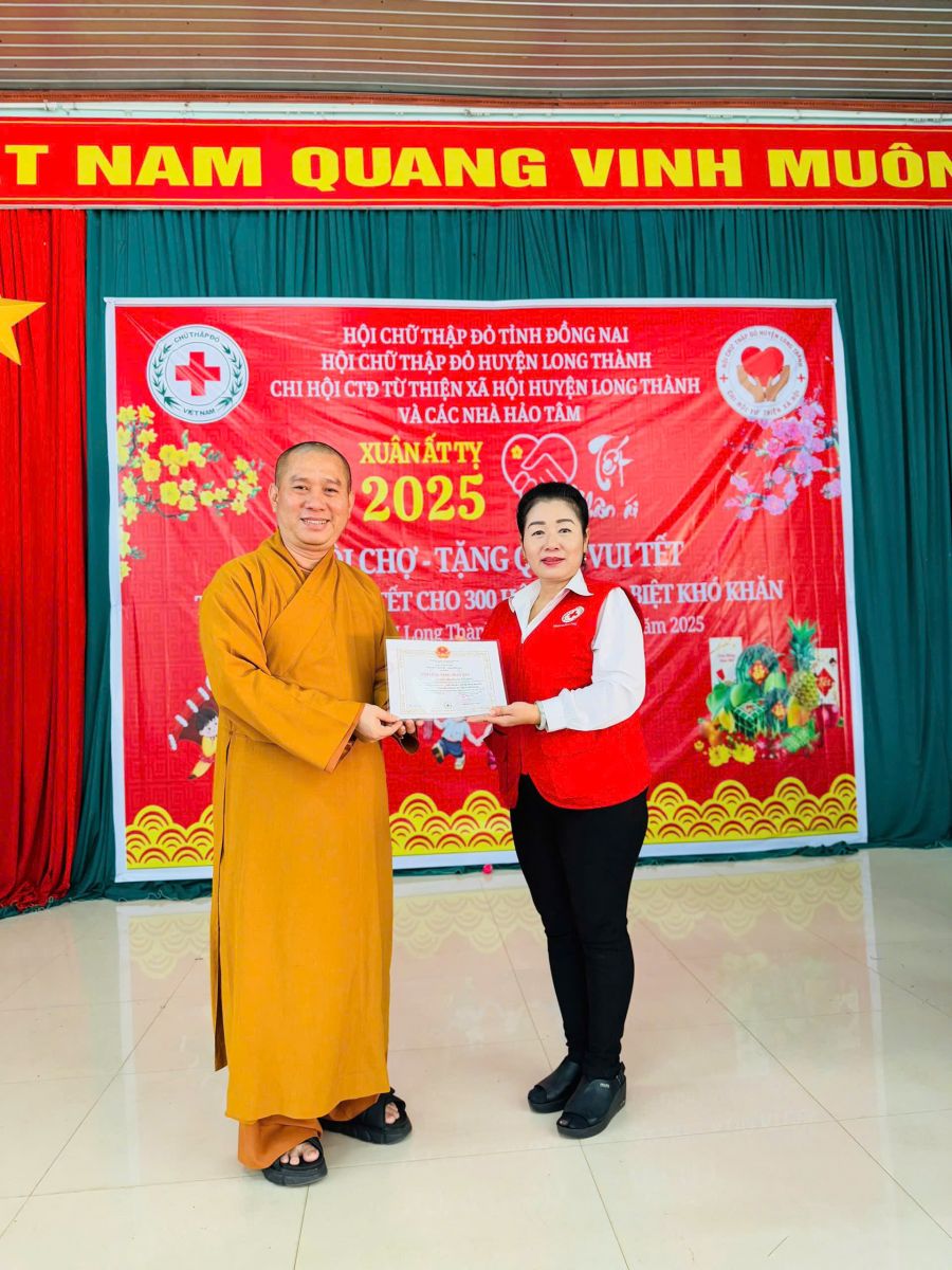 Để đón chào mùa xuân Ất Tỵ năm 2025 đang trở về trên quê hương Việt Nam thân yêu. ĐĐ. Thích Nguyên Thông – Phó Trưởng ban Thường trực ban Từ thiện xã hội GHPGVN tỉnh Đồng Nai, Phó ban kiêm Chánh Thư ký Ban Trị sự GHPGVN huyện Long Thành, Trụ trì Thiền tự Phước Quang – xã Phước Thái đã kết hợp cùng Hội chữ Thập đỏ tỉnh Đồng Nai, tổ chức Phiên chợ 0 đồng và trao tặng 300 phần quà cho bà con gia đình chính sách, hộ nghèo, gia đình khó khăn trên địa bàn các xã thuộc huyện Long Thành.