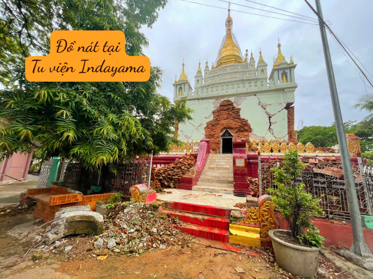 Tại Myanmar nói riêng trận động đất đã làm sập đổ gây thiệt hại hơn 100 ngôi chùa. Đây là một thiệt hại rất lớn đối với Phật giáo Myanmar, rất nhiều chư Tăng và Phật tử địa phương đã cất tạm nhà lá để tiếp tục tu học.