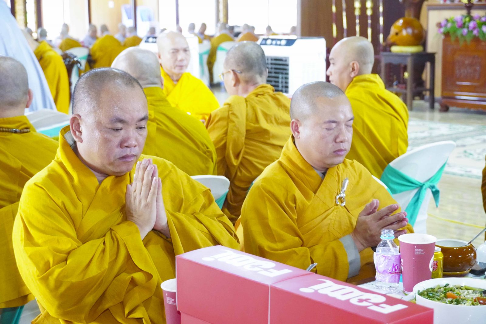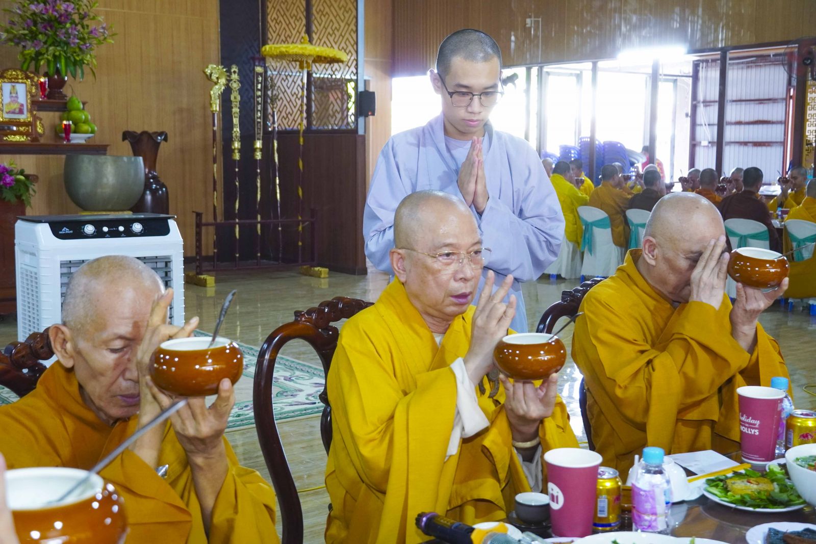 Chư Tôn đức Tăng Ni tham dự khóa Huân tu đã trang nghiêm thọ trai đúng theo nghi thức Quá đường.