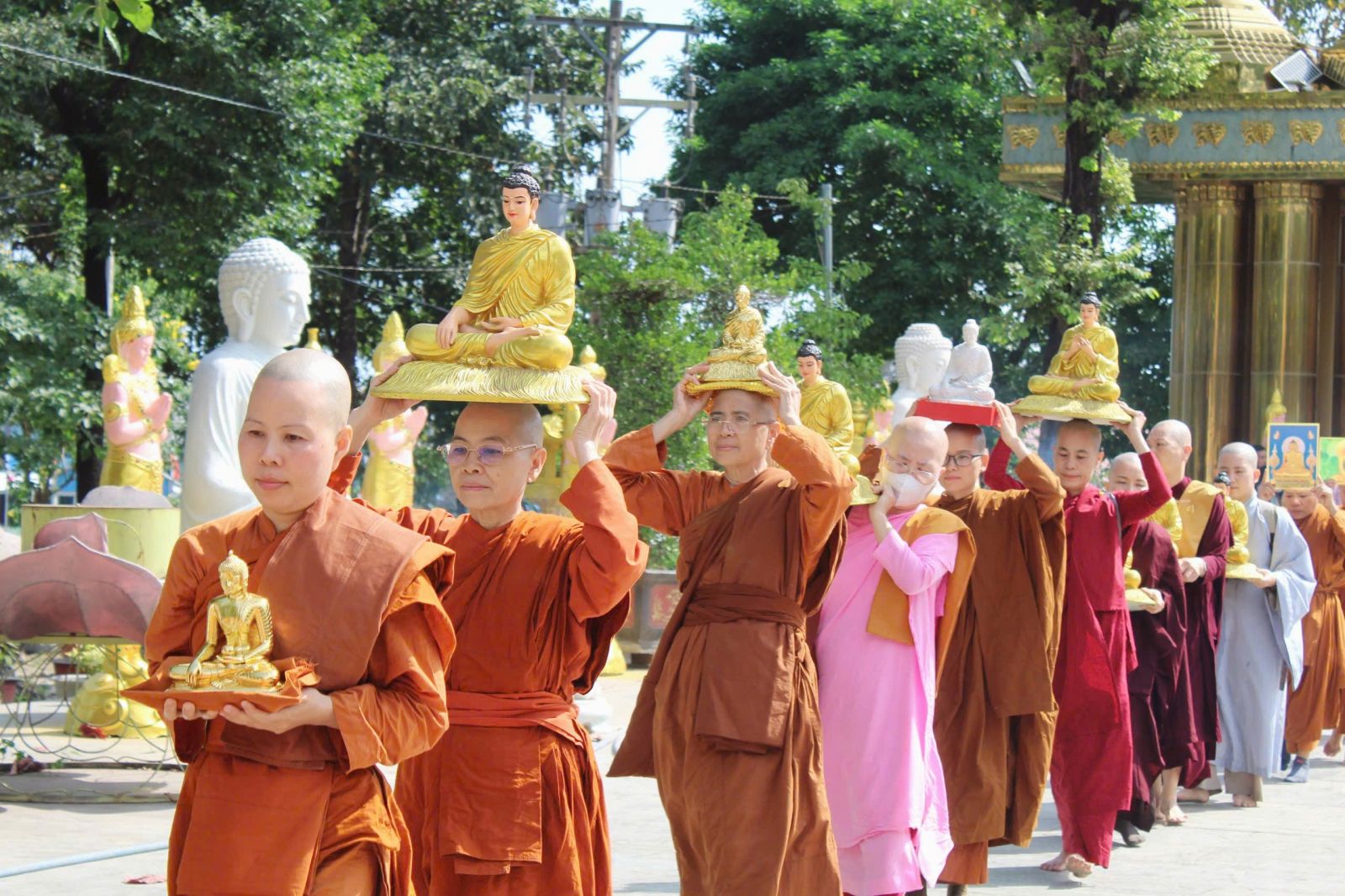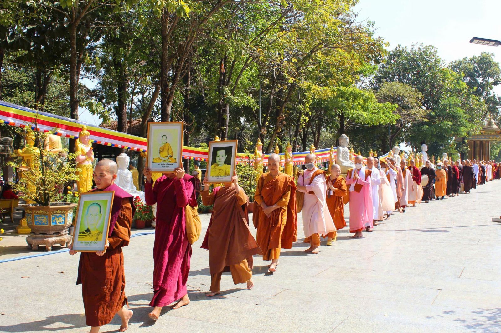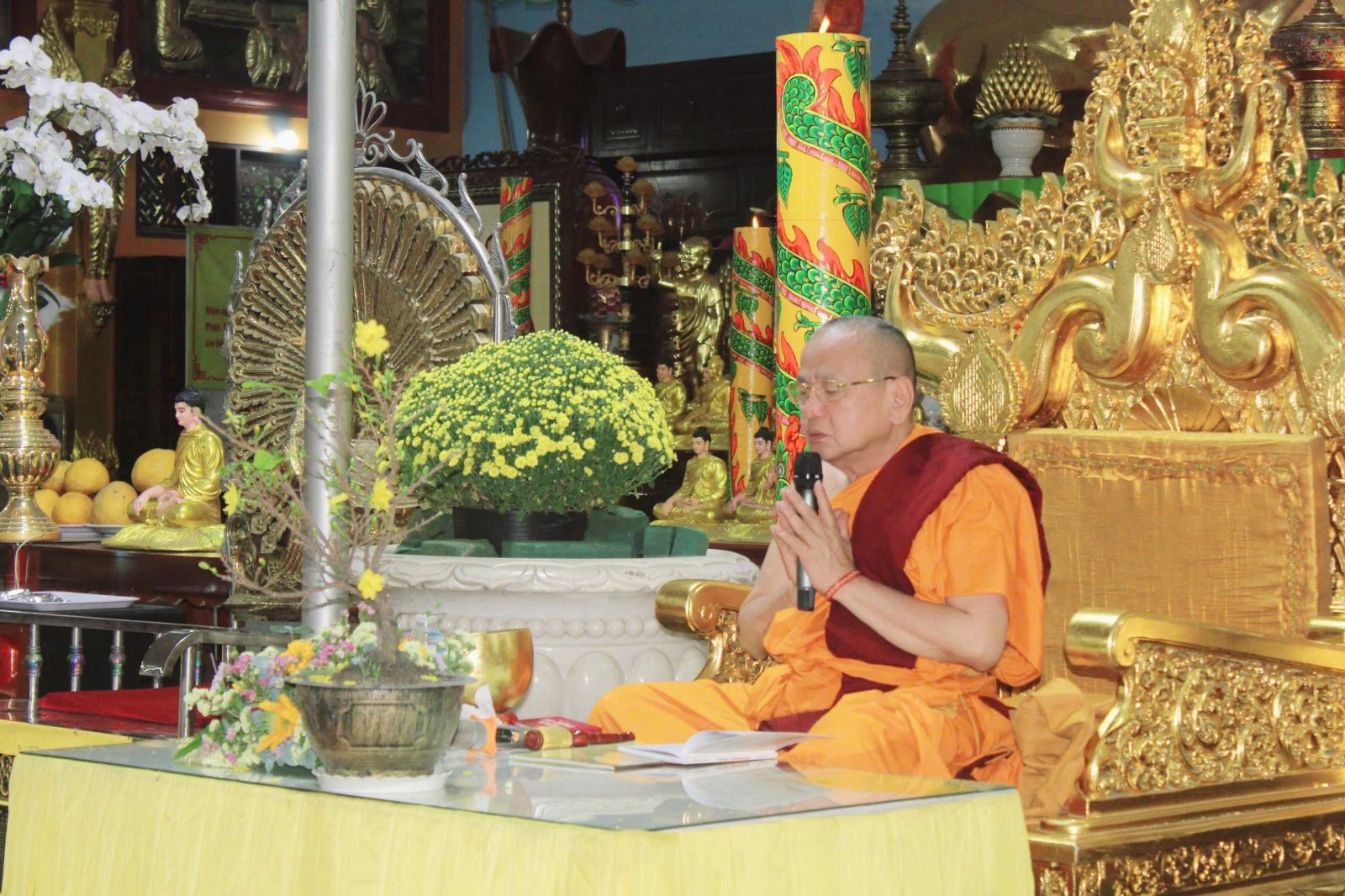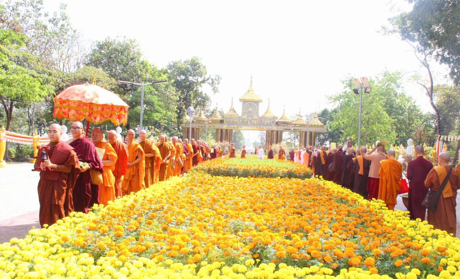 09h30: Lễ rước Pháp tại quảng trường Bồ Đề. Tại chánh điện, sau thời khóa lễ bái tam bảo, HT viện chủ thuyết giảng vắn tắt về Phước Đức tu hành.