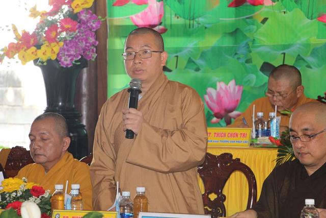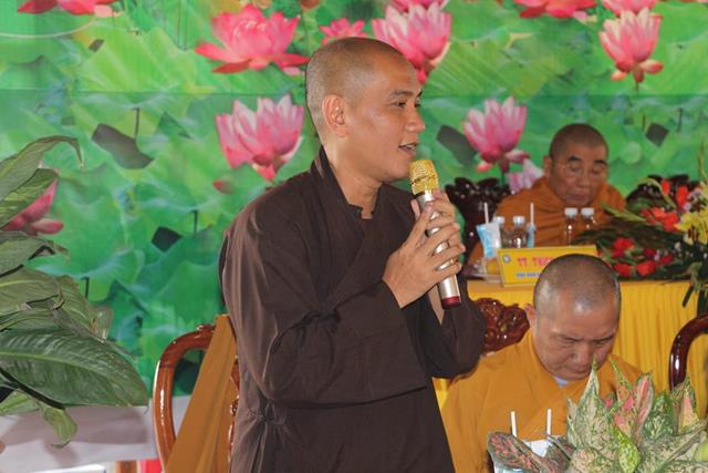 Đại đức Thích Pháp Đăng, đại diện đơn vị Thống Nhất, phát biểu ý kiến, mặc dù huyện nhà ít cơ sở Phật giáo nhưng Phật sự tại huyện nhà rất đoàn kết, các Phật sự được giải quyết nhanh chóng, hiện tại đang kiến nghị và giúp đỡ 6 cơ sở tại địa phương được đầy đủ cơ sở pháp lý để tham gia sinh hoạt với Giáo hội.