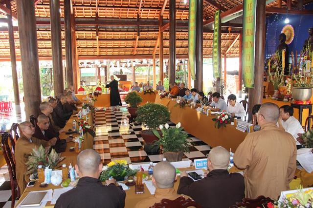 Thay mặt đoàn chủ tọa, ĐĐ. Thích Đạo Huy phát biểu khuyến khích các BTS huyện nêu lên các vấn đề, ý kiến thiết thực ngắn gọn để hội nghị thống nhất ý kiến giải quyết vấn đề cách hiệu quả nhất.