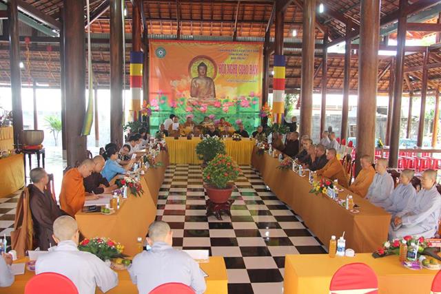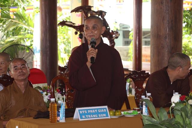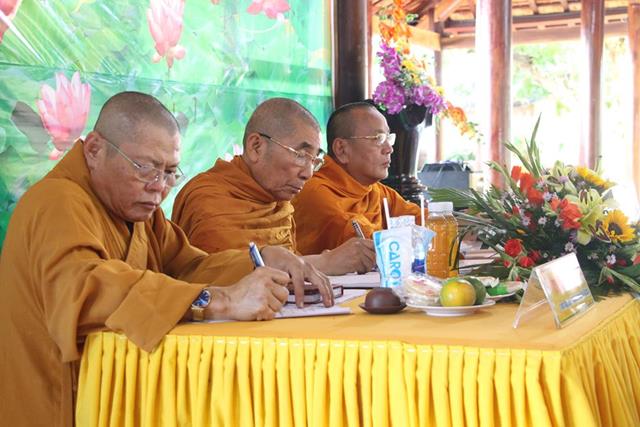 Chủ tọa đoàn có: ĐĐ. Thích Đạo Huy - Phó thư ký, chánh văn phòng BTS GH tỉnh; ĐĐ Thích Thiện Trí - Phó thư ký BTS PG tỉnh; TT. Thích Minh Trì - Trưởng Ban Trị Sự GHPGVN huyện Trảng Bom, đơn vị đăng vị tổ chức hội nghị; ĐĐ. Thích Pháp Đăng - Trưởng Ban Trị sự GHPGVN huyện Thống Nhất, cùng chư Tôn Đức Phó văn phòng Ban Trị sự Phật giáo tỉnh, chư Tôn Đức Tăng Ni hai huyện Trảng Bom, Thống Nhất tham dự hội nghị.