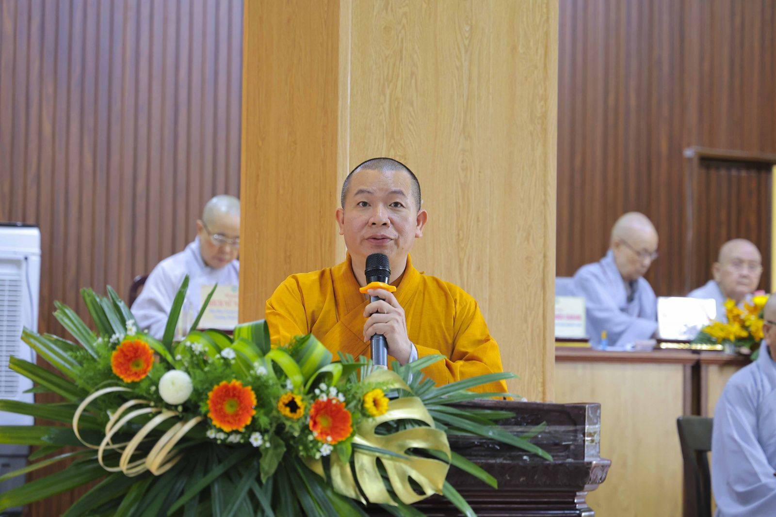 Tại buổi lễ, ĐĐ. Thích Đạt ma Đức Long đã thay mặt Ban Thư ký, Văn phòng Ban Trị sự Phật giáo tỉnh báo cáo tổng kết công tác tổ chức An cư Kiết hạ PL. 2569