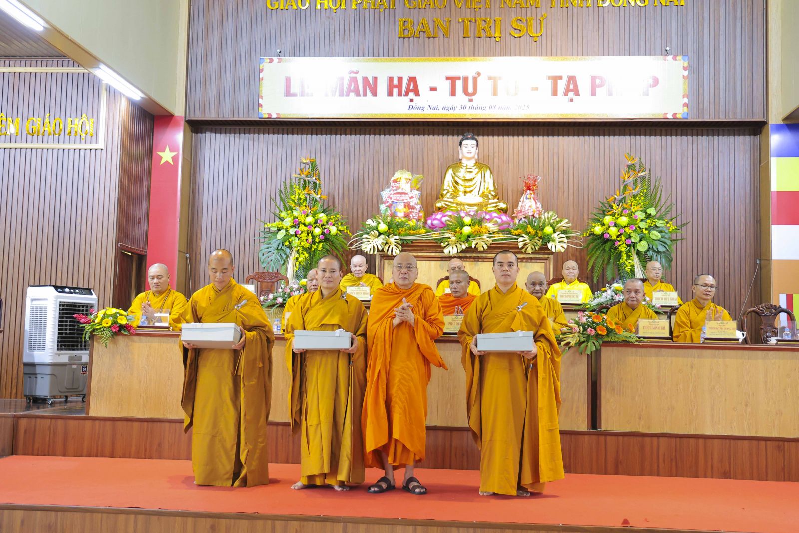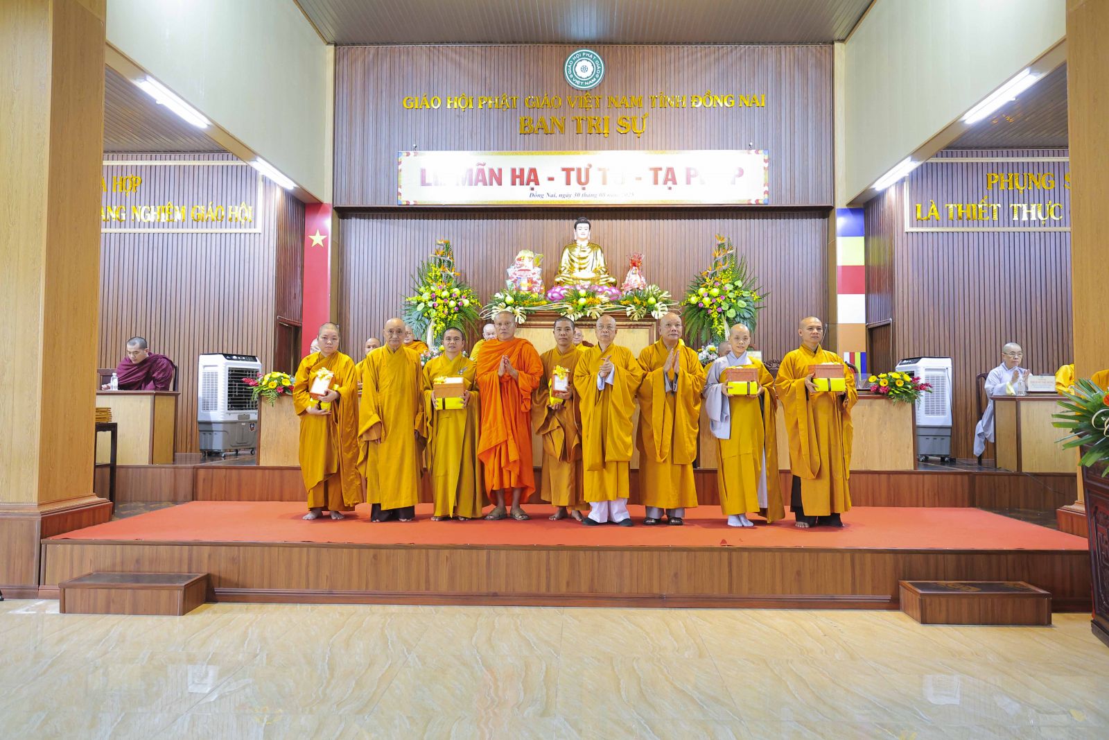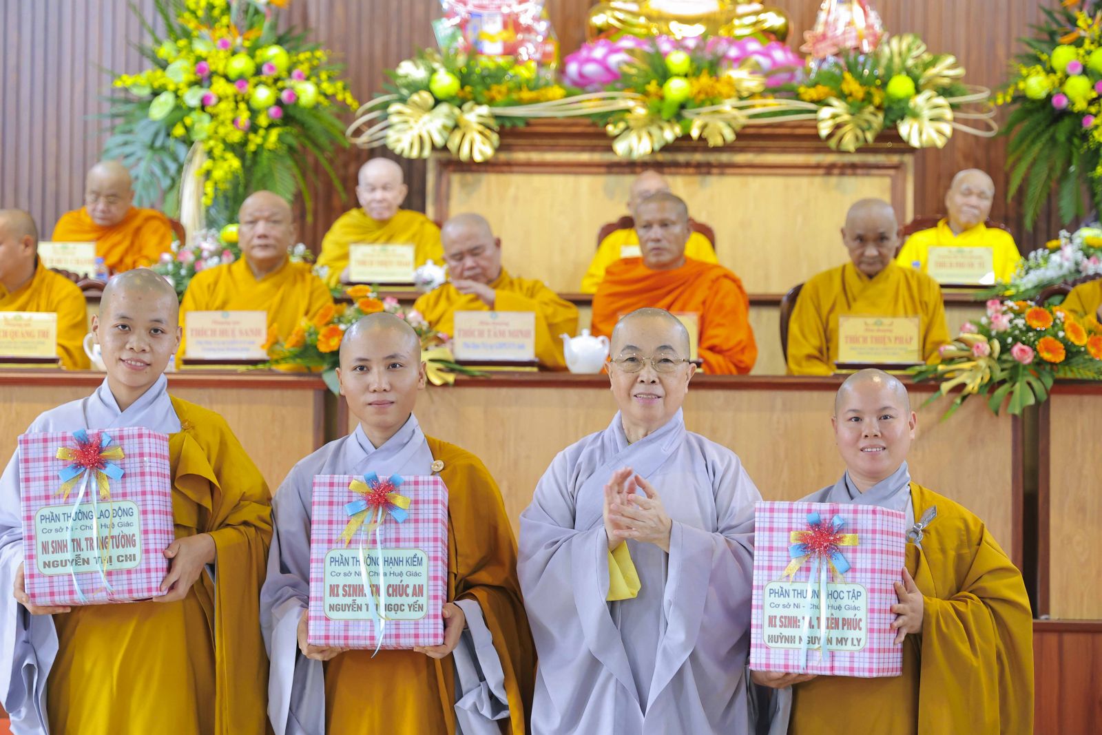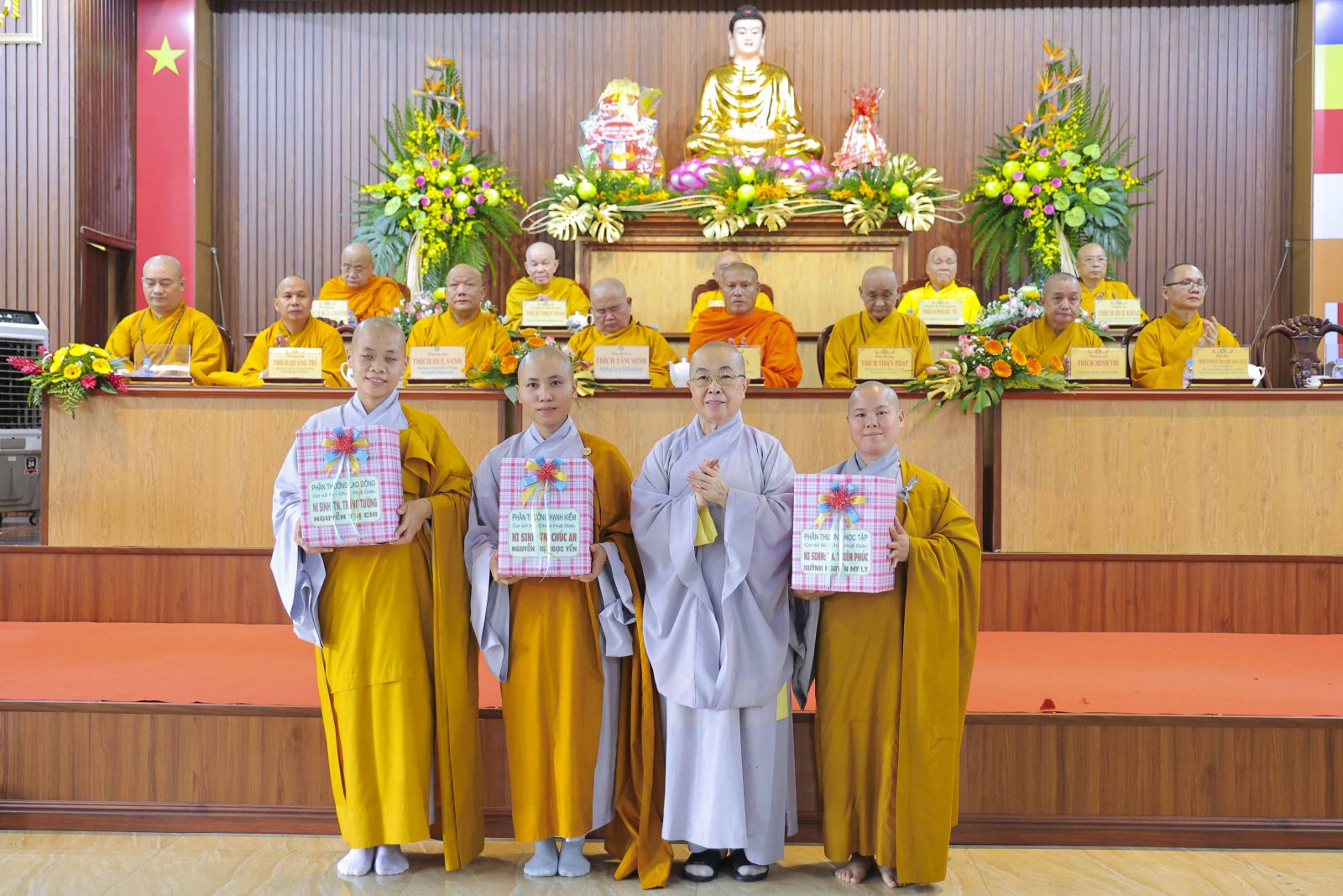 Dịp này, Ban Trị sự Phật giáo tỉnh đã trao tặng những phần quà khích lệ tinh thần Tăng Ni đã cố gắng nỗ lực tu tập, cũng như phụng sự cá Hạ trường trong Ba tháng vừa qua, và Ban Hoằng pháp cũng trao tặng những phần quà của Khóa thi Diễn Giảng Mùa An cư Kiết hạ vừa qua cho Tăng Ni tham dự.