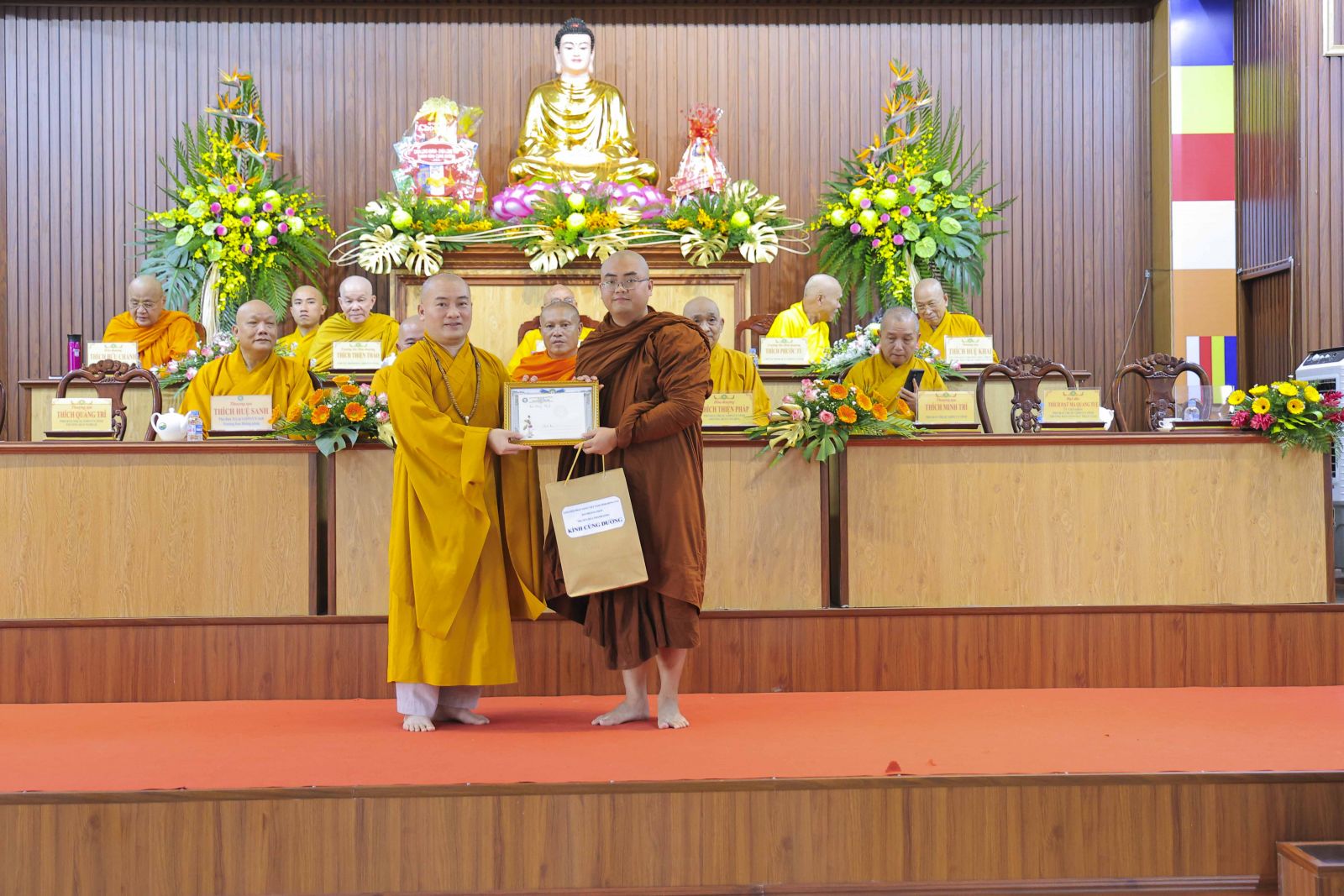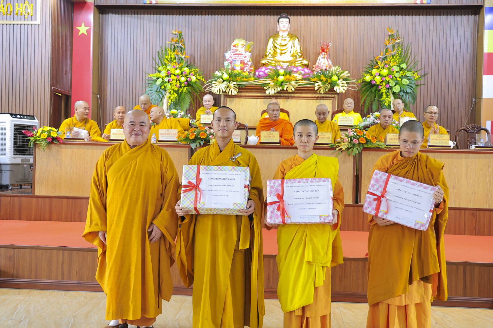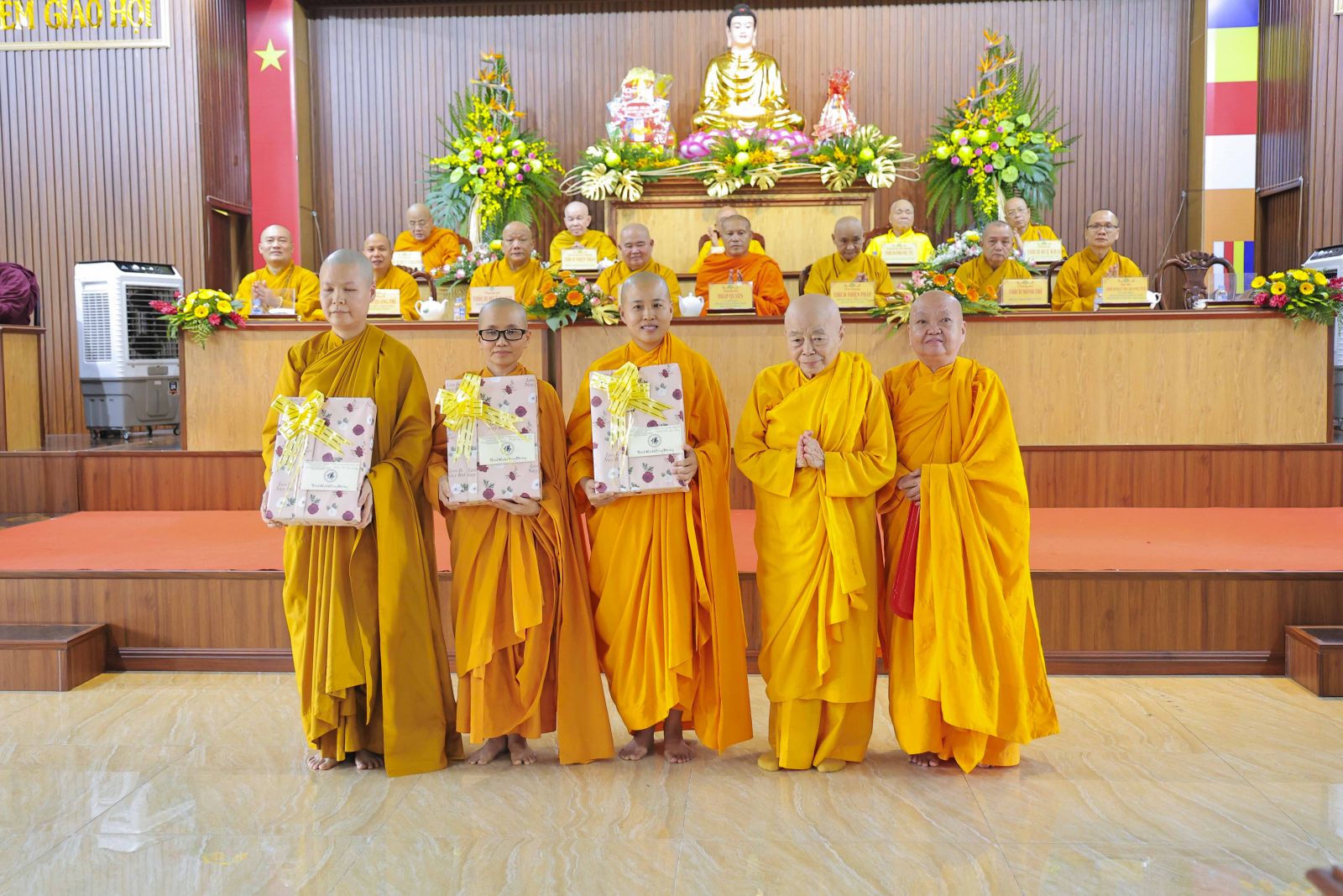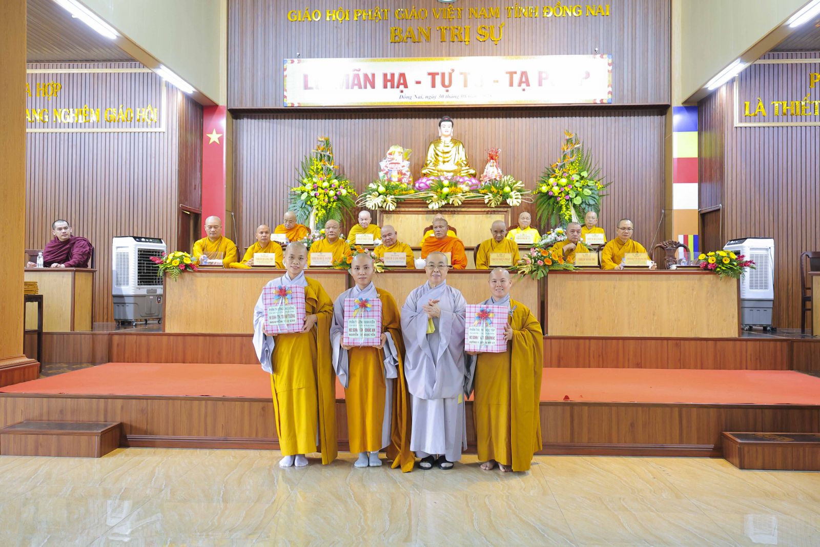 Dịp này, Ban Trị sự Phật giáo tỉnh đã trao tặng những phần quà khích lệ tinh thần Tăng Ni đã cố gắng nỗ lực tu tập, cũng như phụng sự cá Hạ trường trong Ba tháng vừa qua, và Ban Hoằng pháp cũng trao tặng những phần quà của Khóa thi Diễn Giảng Mùa An cư Kiết hạ vừa qua cho Tăng Ni tham dự.