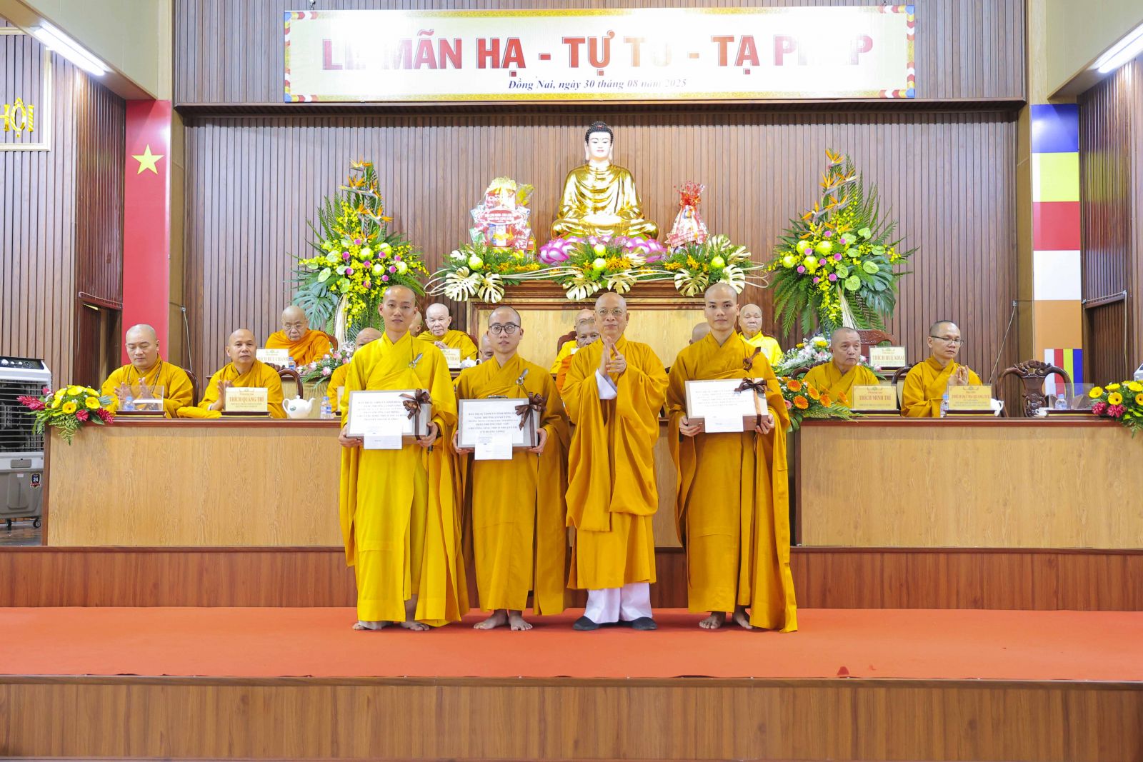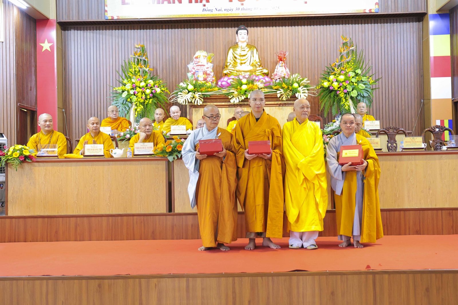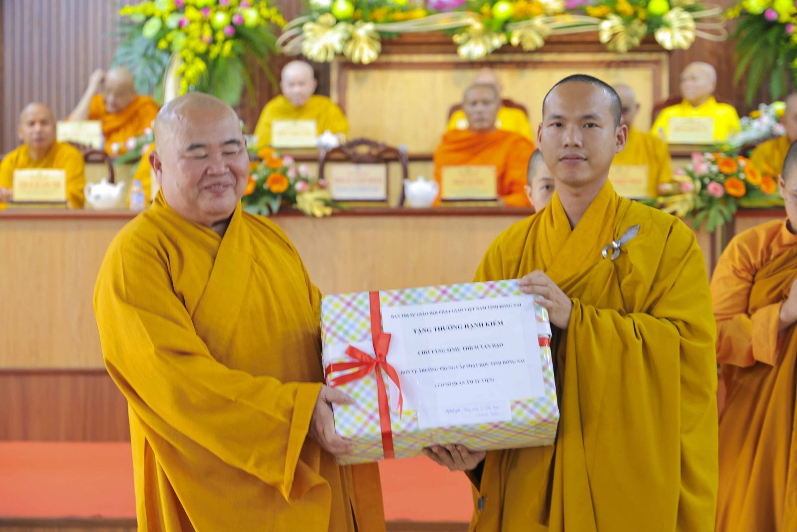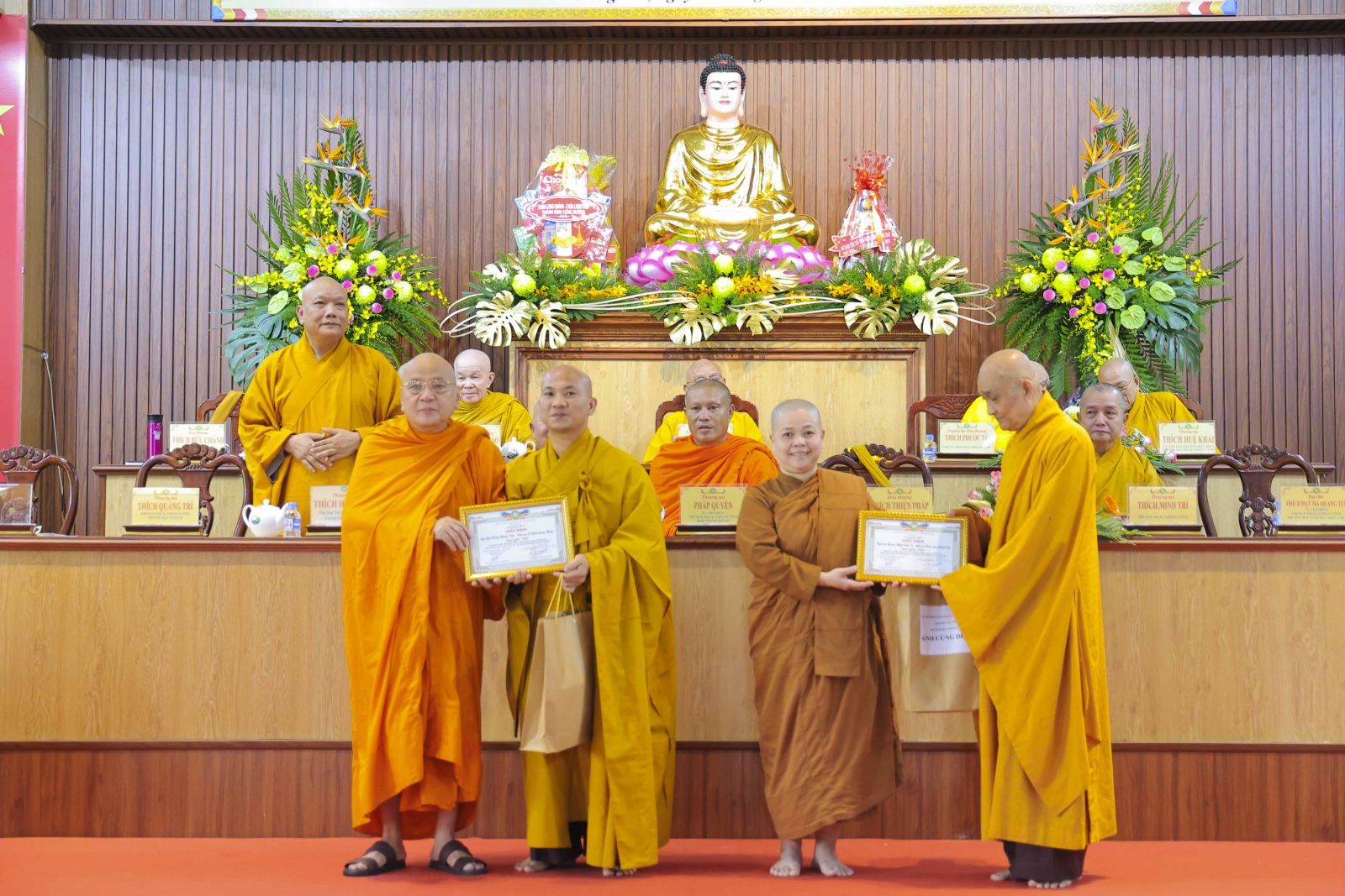 Dịp này, Ban Trị sự Phật giáo tỉnh đã trao tặng những phần quà khích lệ tinh thần Tăng Ni đã cố gắng nỗ lực tu tập, cũng như phụng sự cá Hạ trường trong Ba tháng vừa qua, và Ban Hoằng pháp cũng trao tặng những phần quà của Khóa thi Diễn Giảng Mùa An cư Kiết hạ vừa qua cho Tăng Ni tham dự.