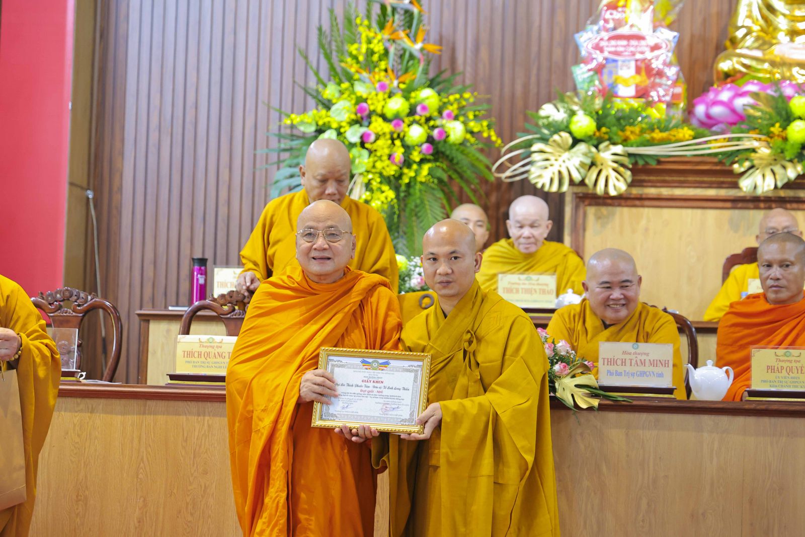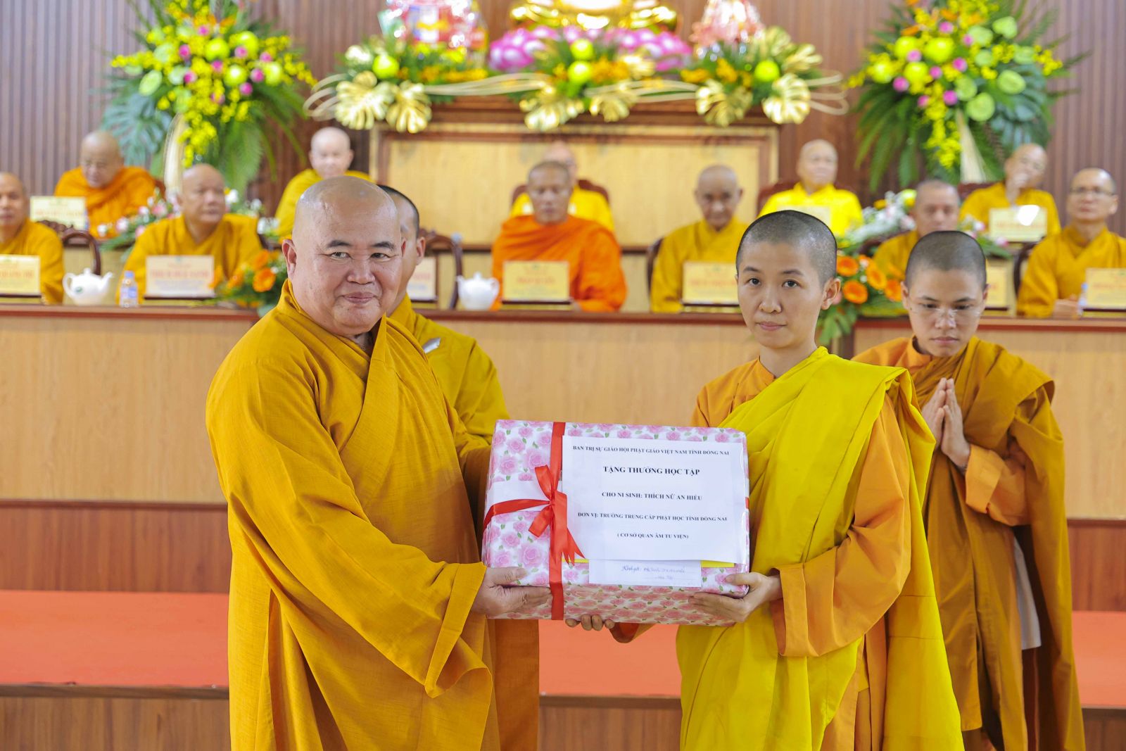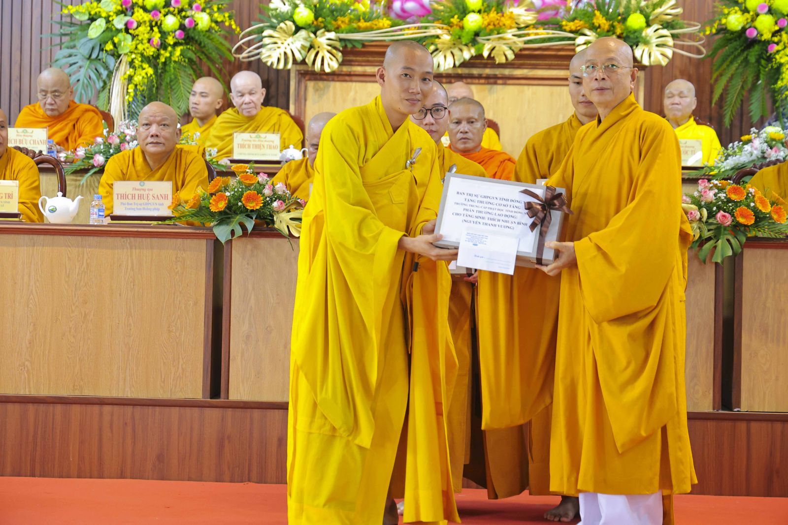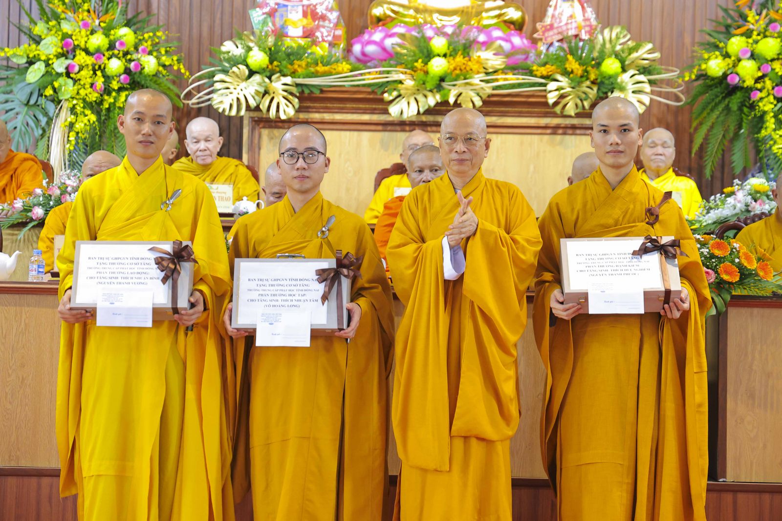 Dịp này, Ban Trị sự Phật giáo tỉnh đã trao tặng những phần quà khích lệ tinh thần Tăng Ni đã cố gắng nỗ lực tu tập, cũng như phụng sự cá Hạ trường trong Ba tháng vừa qua, và Ban Hoằng pháp cũng trao tặng những phần quà của Khóa thi Diễn Giảng Mùa An cư Kiết hạ vừa qua cho Tăng Ni tham dự.