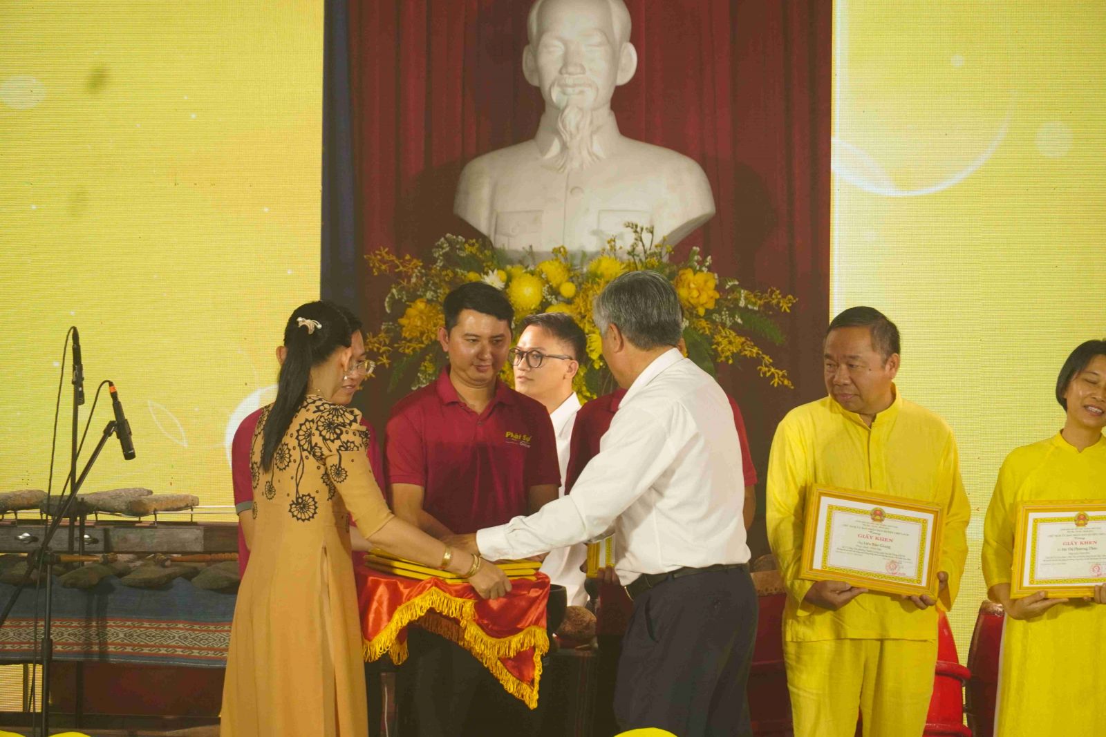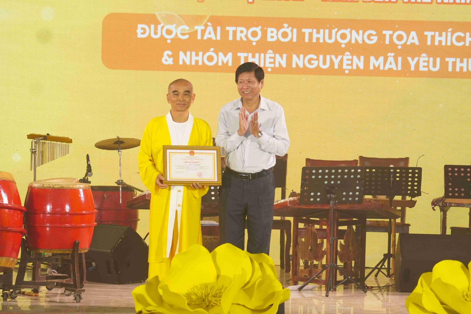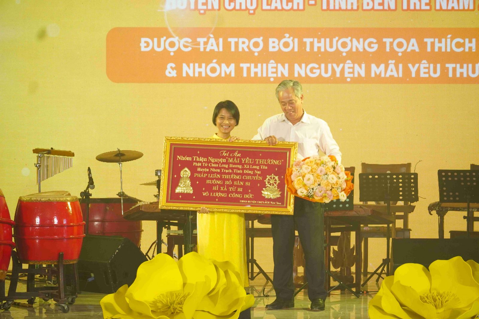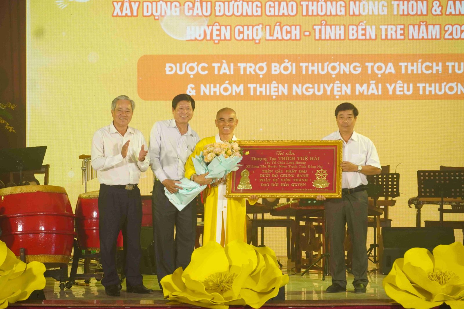 Tại buổi lễ, Ủy ban Nhân dân huyện Chợ Lách cũng đã trao tặng bằng tri ân tấm lòng vàng đến TT. Thích Tuệ Hải cùng toàn thể Tăng Ni, Phật tử Chùa Long Hương và nhóm Thiện nguyện Mãi Yêu Thương. Đây là món quà tri ân chân thành, sâu sắc và đầy ý nghĩa.