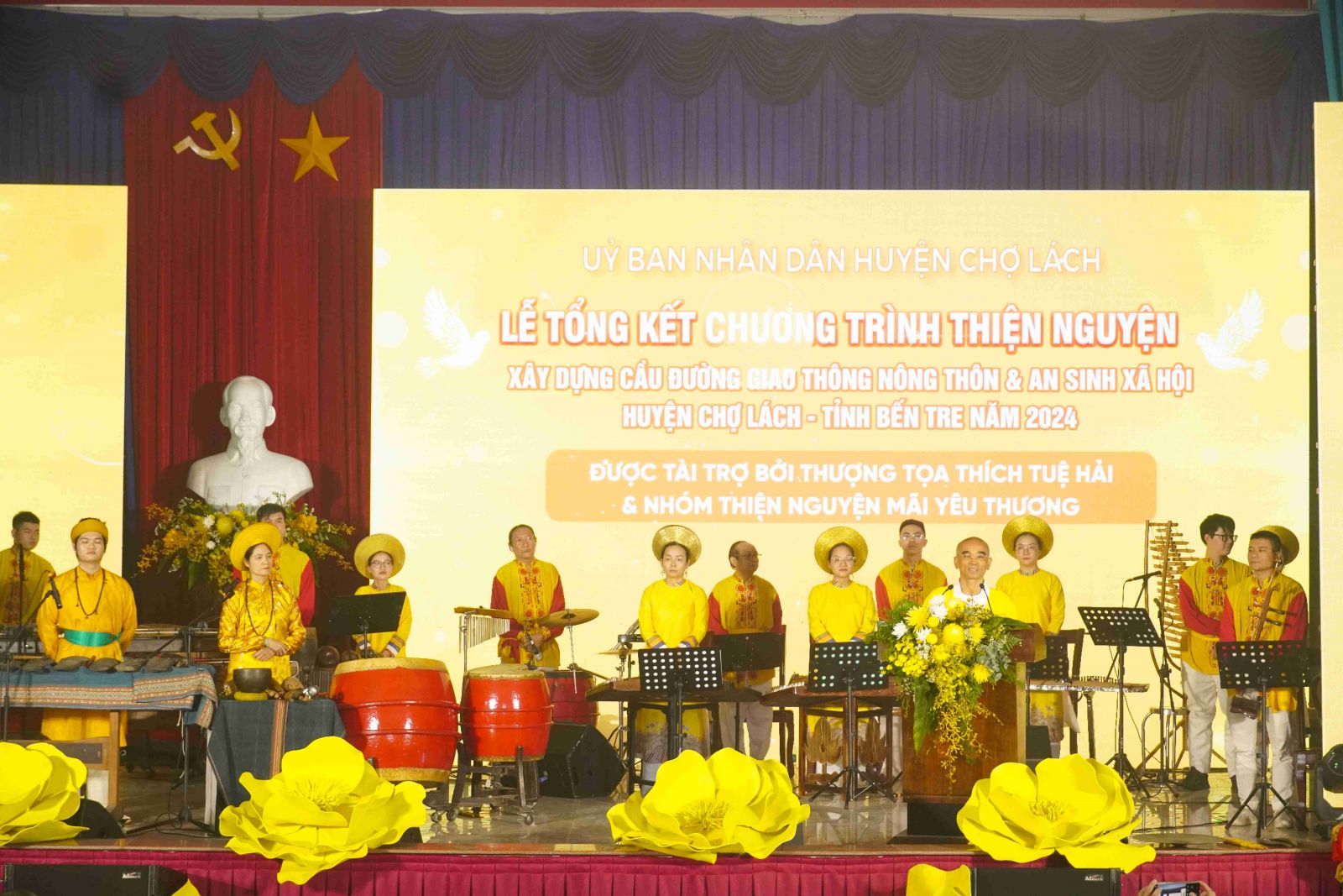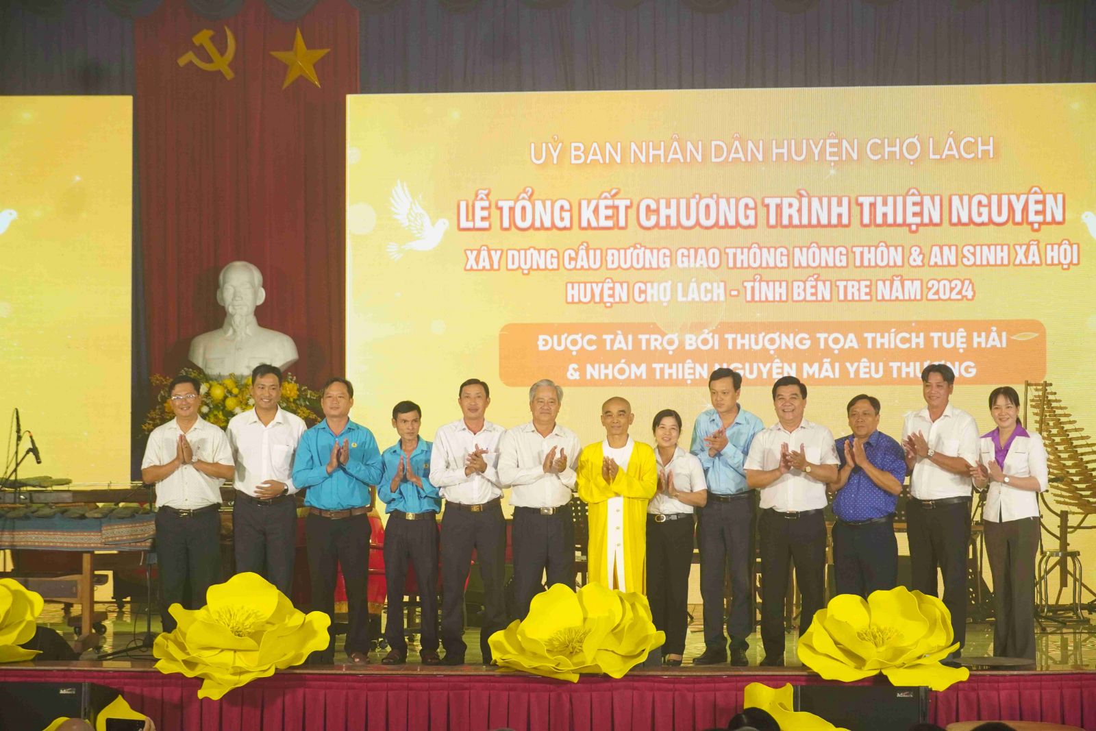 Tại buổi lễ đã lắng nghe báo cáo tổng kết công tác xây dựng cầu đường và giao thông nông thôn tại huyện Chợ Lách do TT. Thích Tuệ Hải và nhóm Thiện nguyện Mãi Yêu Thương đã tài trợ trong thời gian vừa qua. Được biết, trong thời gian qua TT. Thích Tuệ Hải đã tài trợ cho huyện Chợ Lách, tỉnh Bến Tre là 18 tuyến đường, 2 cây cầu và 01 căn nhà. Mỗi tuyến đường dài từ 800m đến 1500m, rộng 3,5m, dày 16 – 20cm, đáp ứng đủ nhu cầu đi lại, sinh hoạt và thuận tiện cho giao thông tại địa phương. Tổng kinh phí là 33.969.000.000đ (ba mươi ba tỷ chín trăm sáu mươi chín triệu đồng)