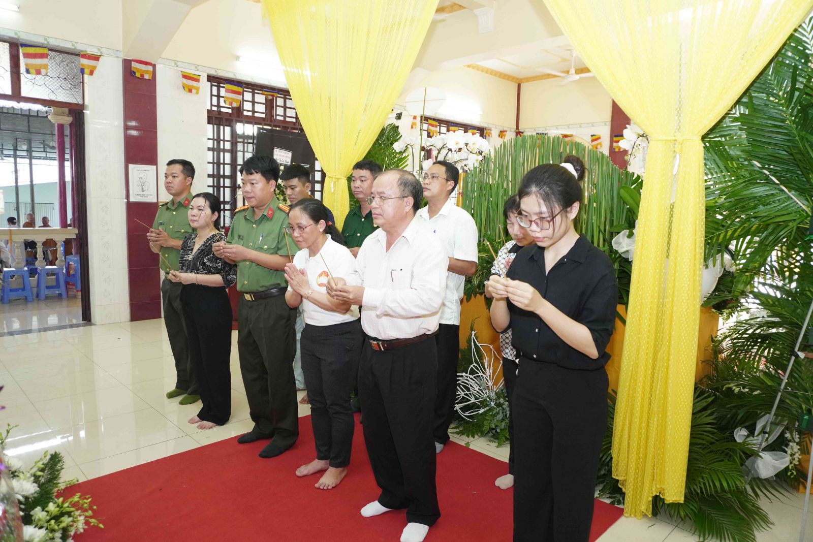 Tham dự buổi lễ có TT. Thích Huệ Khai - Ủy viên Thường trực HĐTS, Trưởng ban Ban Trị sự, Trưởng ban Tăng sự GHPGVN tỉnh; TT. Thích Huệ Sanh – Ủy viên HĐTS, Phó Ban Trị sự, Trưởng ban Hoằng pháp GHPGVN tỉnh; cùng chư Tôn đức Phó Ban Trị sự, chư Tôn đức đại diện các ban ngành, đại diện Ban Trị sự các huyện cùng về dâng hương tưởng niệm.