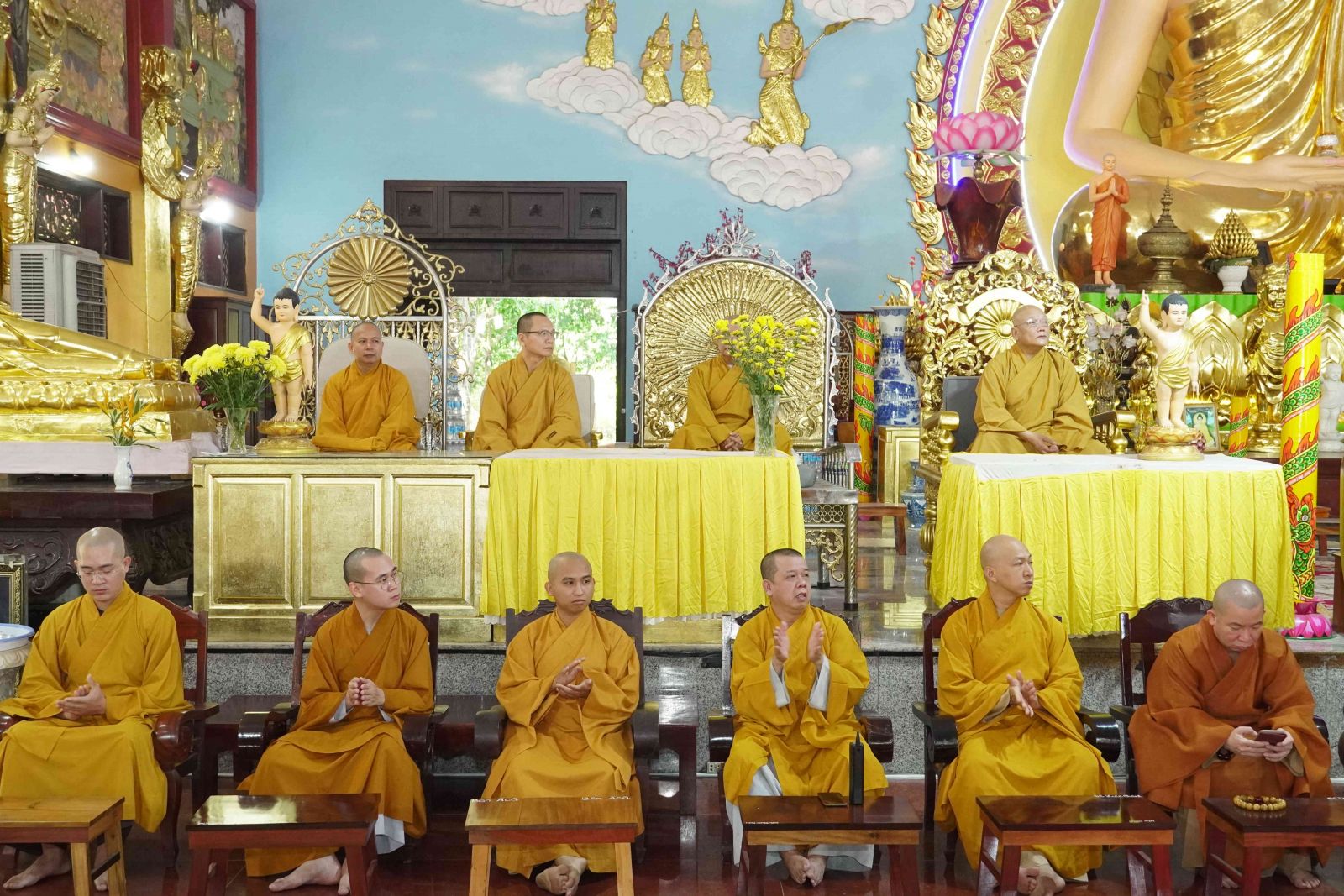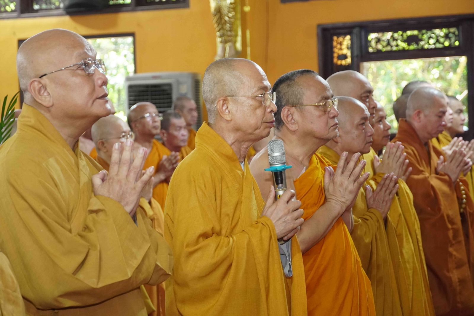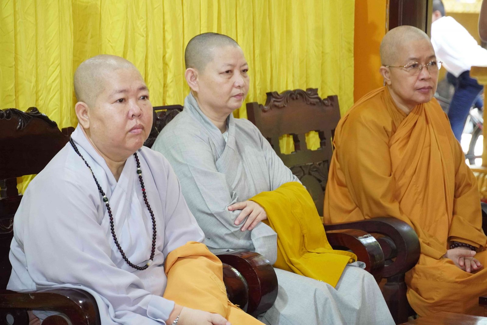 Đón tiếp đoàn có HT. Thích Bửu Chánh - Ủy viên Thư ký HĐTS, Phó Trưởng ban Thường trực Ban Trị sự GHPGVN tỉnh Đồng Nai, Viện chủ Thiền viện Phước Sơn; cùng Chư tôn đức Tăng Ni tại hạ trường.