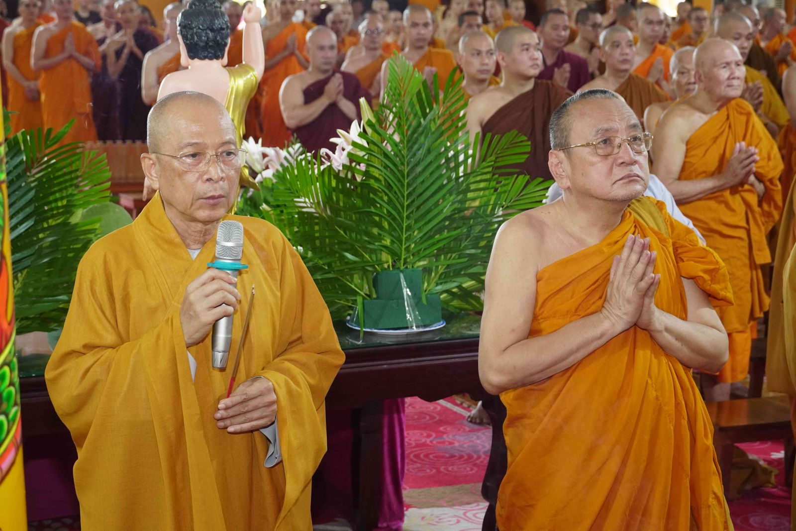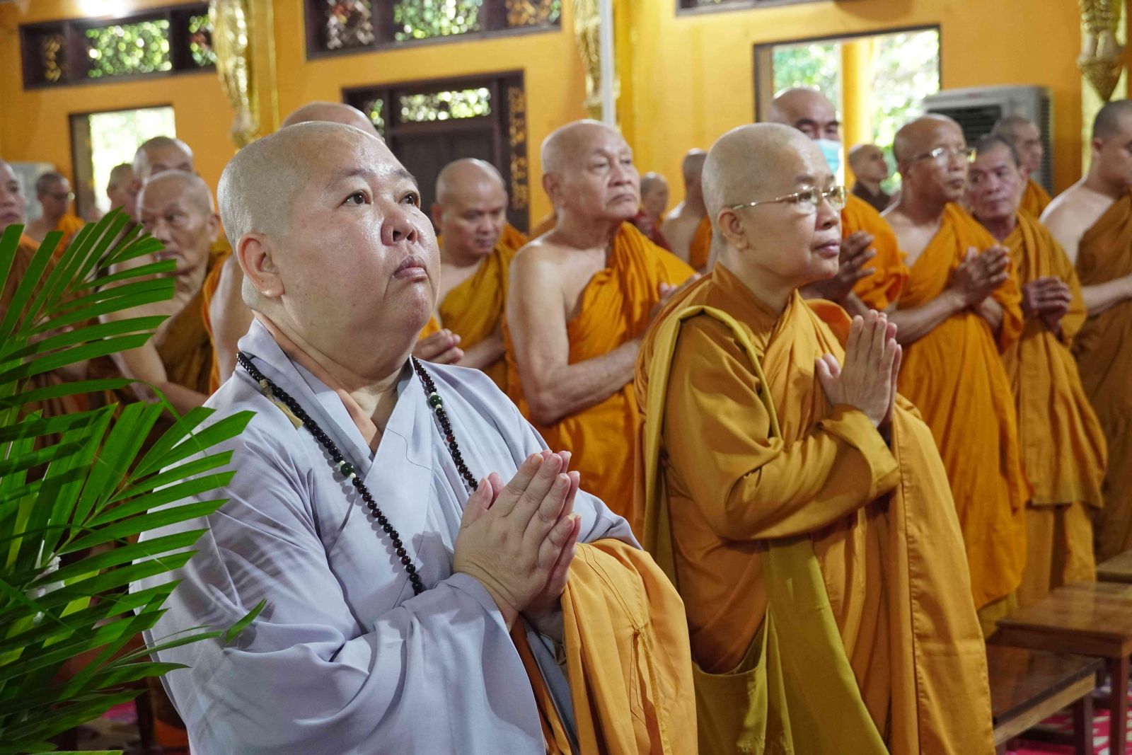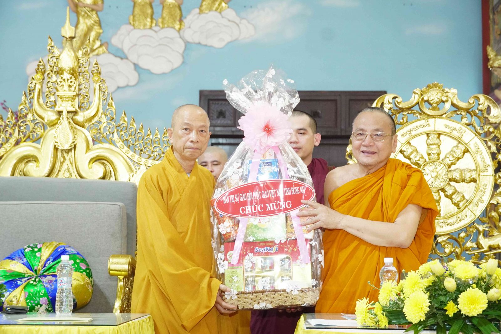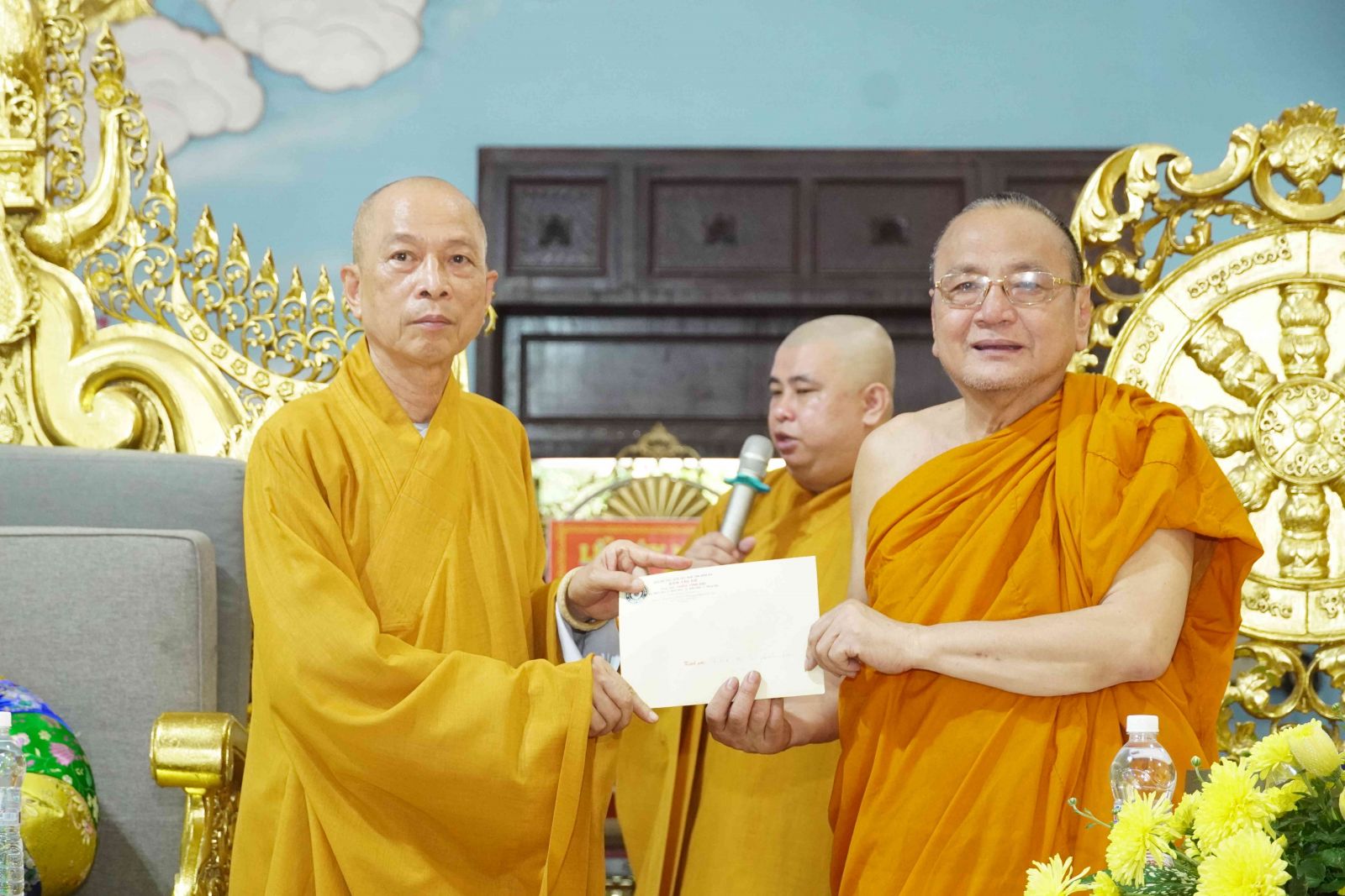 Đón tiếp đoàn có HT. Thích Bửu Chánh - Ủy viên Thư ký HĐTS, Phó Trưởng ban Thường trực Ban Trị sự GHPGVN tỉnh Đồng Nai, Viện chủ Thiền viện Phước Sơn; cùng Chư tôn đức Tăng Ni tại hạ trường.