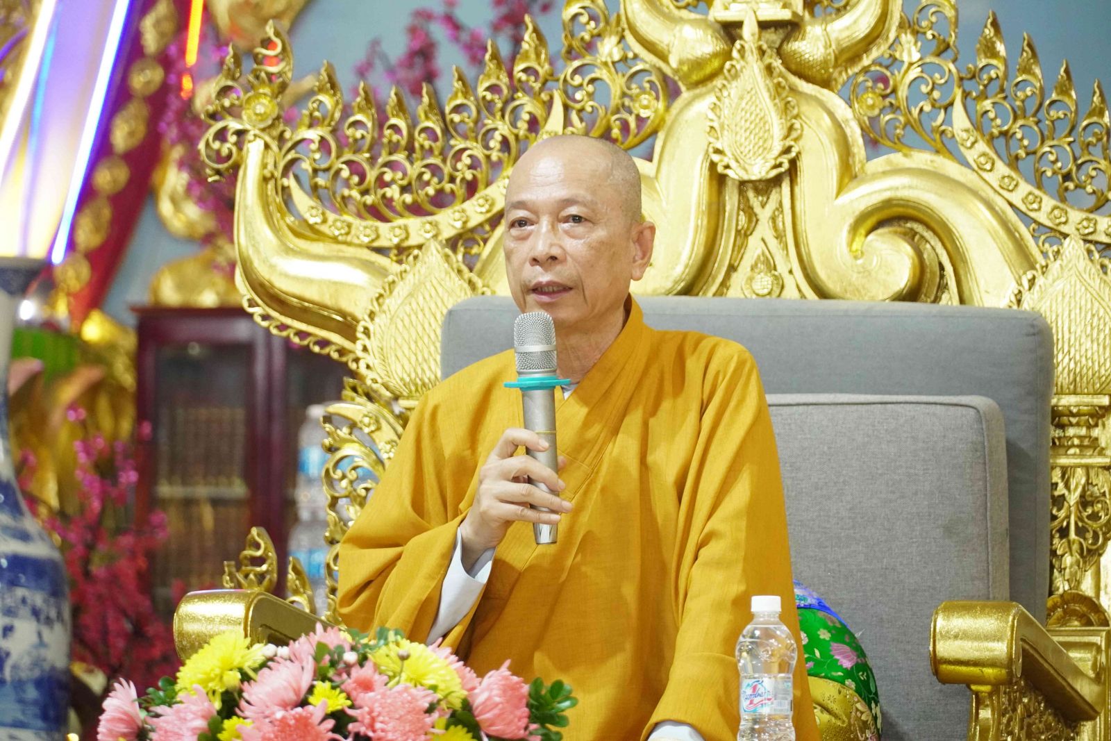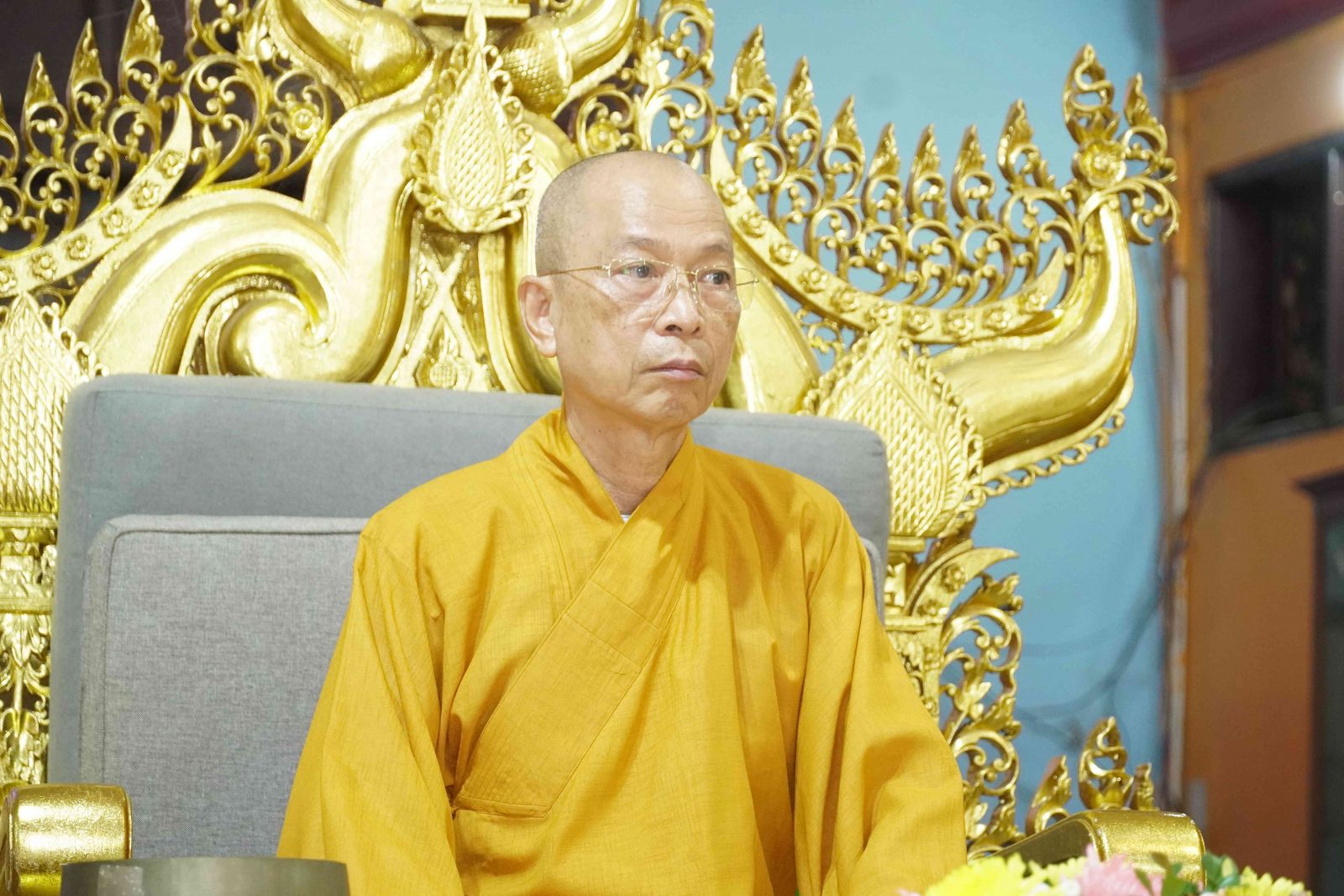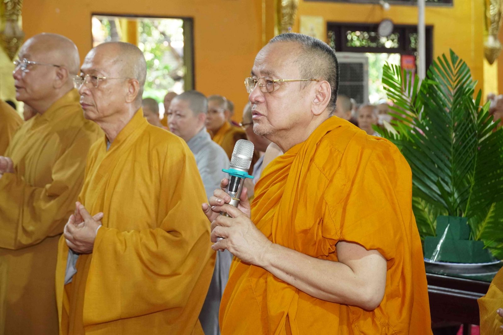 Thay mặt Ban Thường trực Ban Trị sự tỉnh, Thượng tọa Thích Huệ Khai tán thán công đức của Ban Chức sự trường hạ, có lời thăm hỏi, chúc sức khỏe đến hành giả an cư, nhắc lại bài kinh Lõi cây, nhấn mạnh nền tảng giới đức, phẩm hạnh tu hành, mong hành giả an cư luôn thực hành lời Đức Phật dạy.