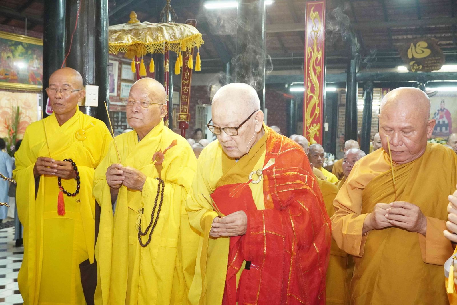 Quang lâm chứng minh và dâng hương tưởng niệm có HT. Thích Huệ Chí – Thành viên HĐCM TƯ, Chứng minh Ban Trị sự GHPGVN tỉnh Đồng Nai, HT. Thích Phước Tú – Chứng minh Ban Trị sự GHPGVN tỉnh; HT. Thích Thiện Trụ - bậc Tôn túc chứng minh môn phong tổ đình Long Thiền; HT. Thích Minh Ngạn – Phó Ban Trị sự, Trưởng ban Kiểm soát GHPGVN tỉnh; TT. Thích Huệ Nghiệp – Phó Ban Trị sự, Trưởng ban Pháp chế GHPGVN tỉnh; TT. Thích Quảng Trí – Phó Ban Trị sự, Trưởng ban Nghi lễ GHPGVN tỉnh; cùng chư Tôn đức Ban Trị sự GHPGVN tỉnh, Ban Trị sự GHPGVN 9 huyện và 2 thành phố, chư Tôn đức Tăng Ni môn đồ tứ chúng đã về dâng hương và tưởng niệm chư vị Tổ sư khai sơn Chùa Thanh Long.