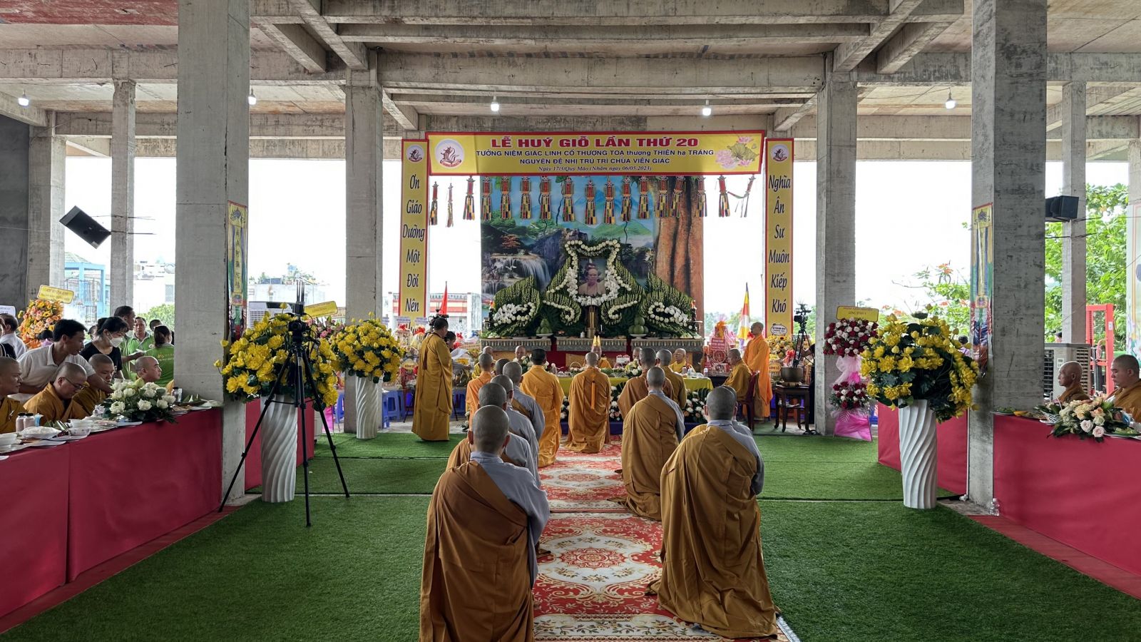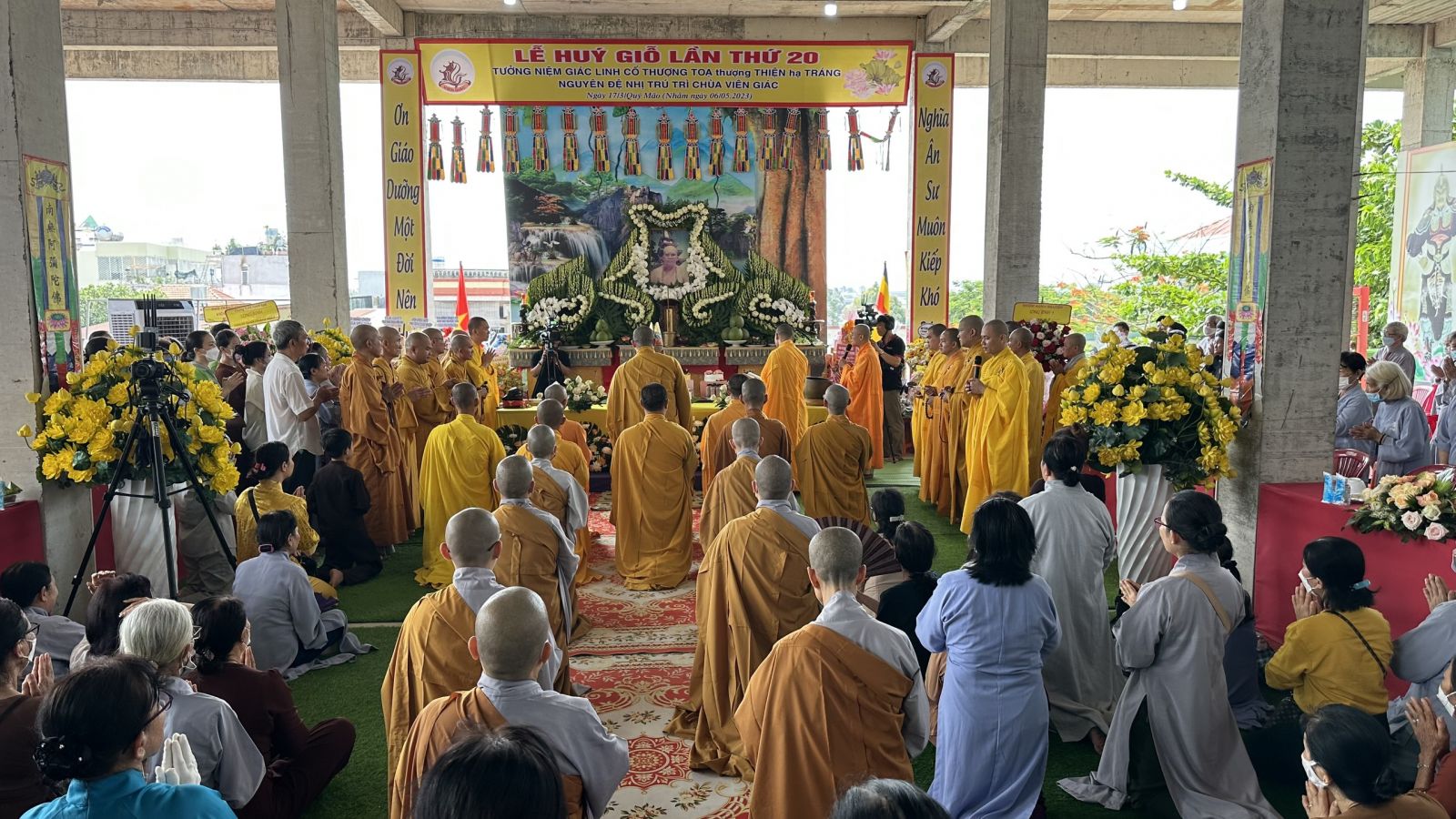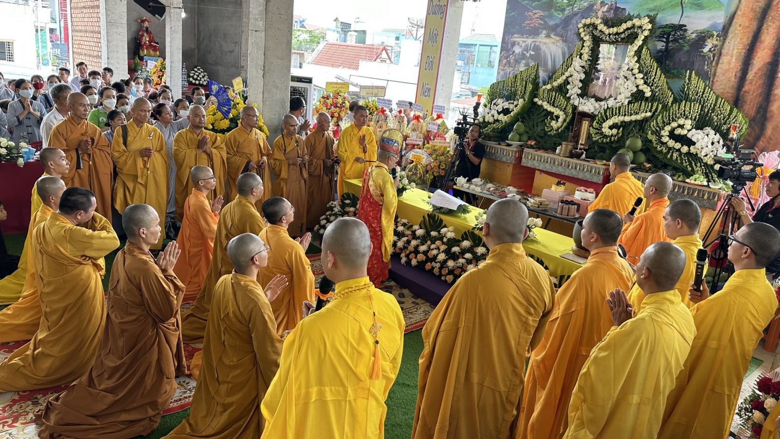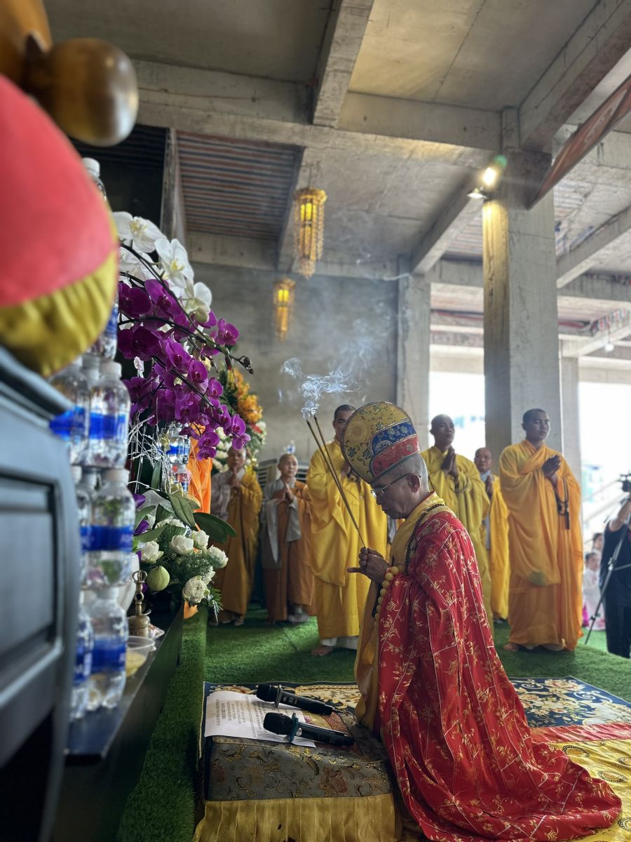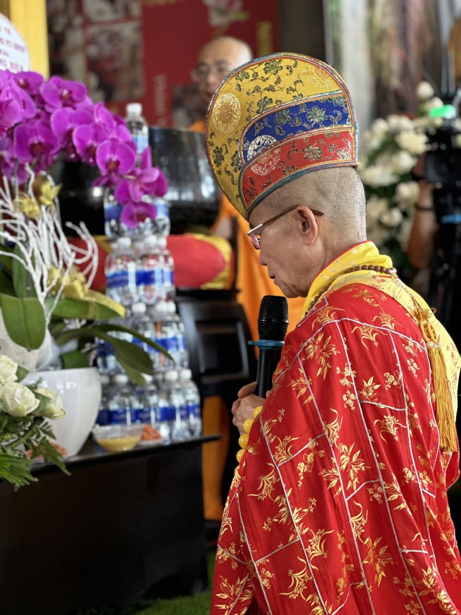 Buổi lễ trang nghiêm diễn ra với nghi thức Bạch Phật Khai kinh, Cúng Ngọ và Cung tiến Giác Linh. Cùng với đó, Môn đồ pháp quyến đã cung nghinh chư tôn đức quang lâm trước Giác linh đài dâng hương tưởng niệm.