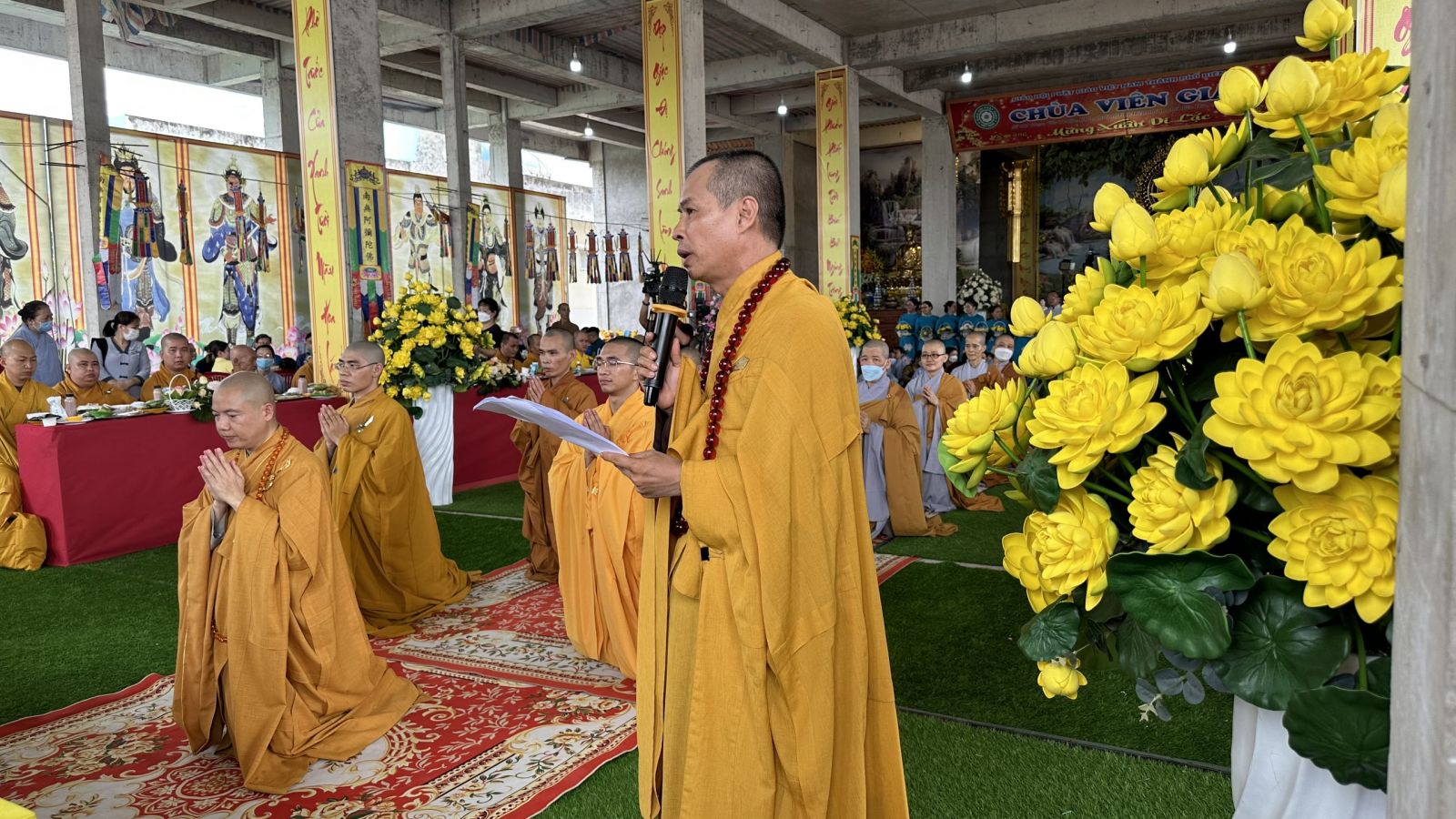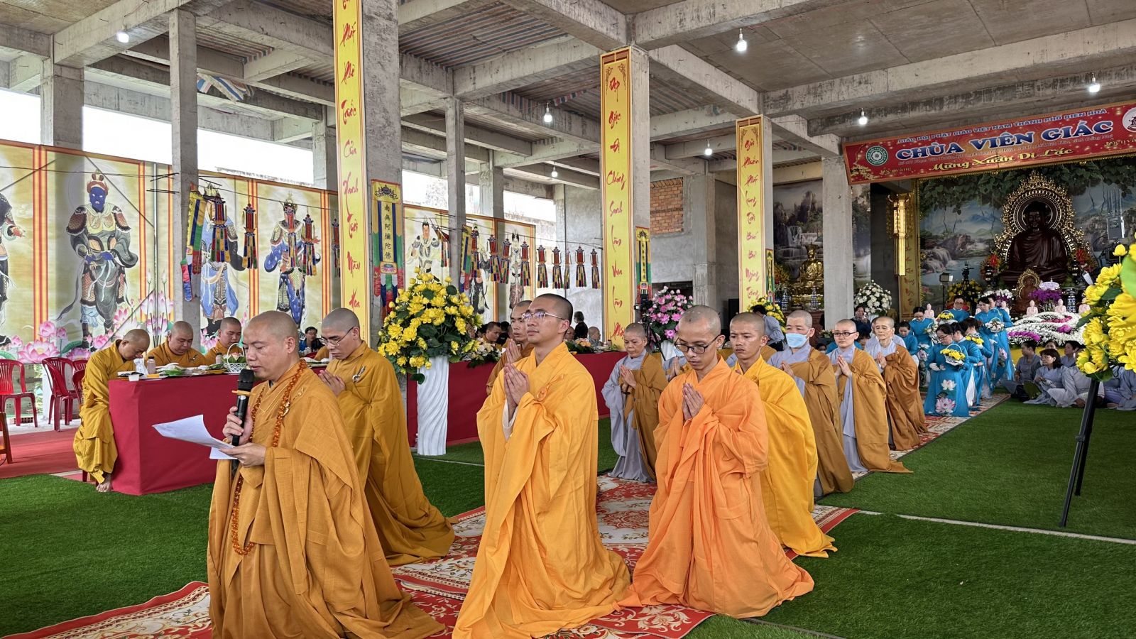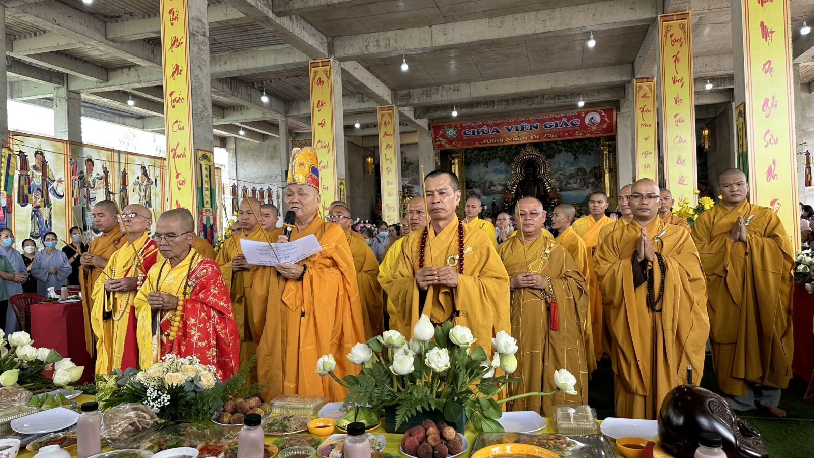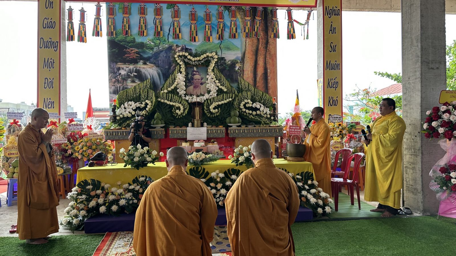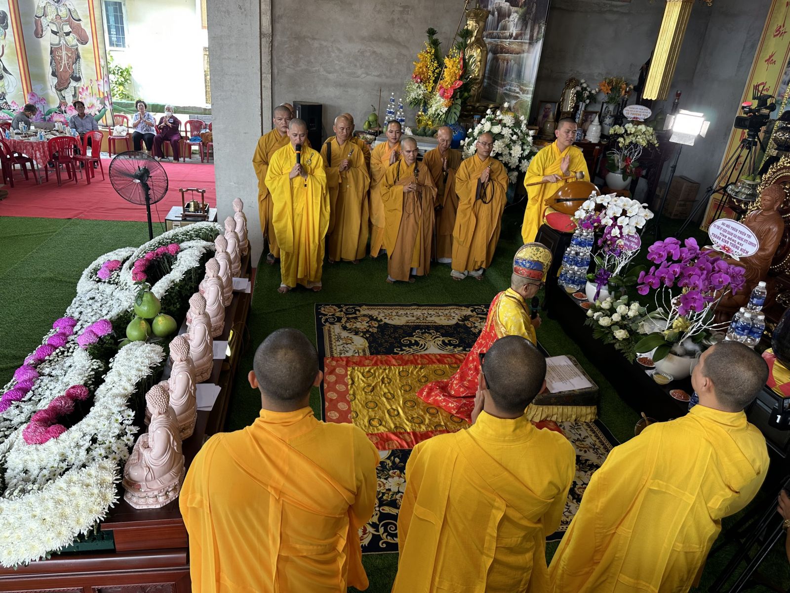 Buổi lễ trang nghiêm diễn ra với nghi thức Bạch Phật Khai kinh, Cúng Ngọ và Cung tiến Giác Linh. Cùng với đó, Môn đồ pháp quyến đã cung nghinh chư tôn đức quang lâm trước Giác linh đài dâng hương tưởng niệm.
