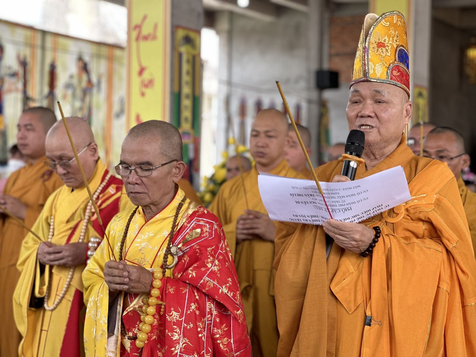 Tại buổi lễ, TT. Thích Minh Trí - đại diện Môn phong tổ đình Vĩnh Nghiêm đã Cung tuyên tiểu sử cố TT. Thích Thiện Tráng.