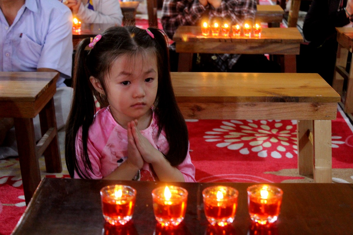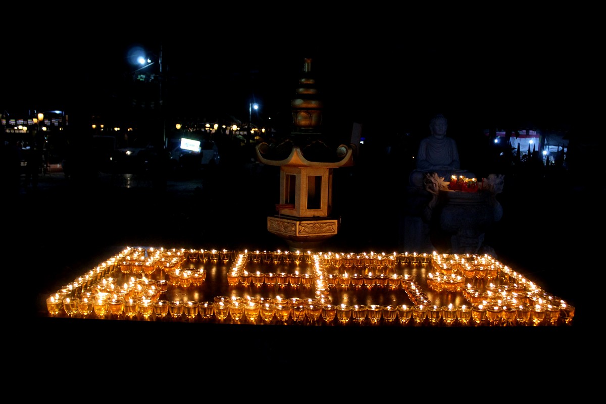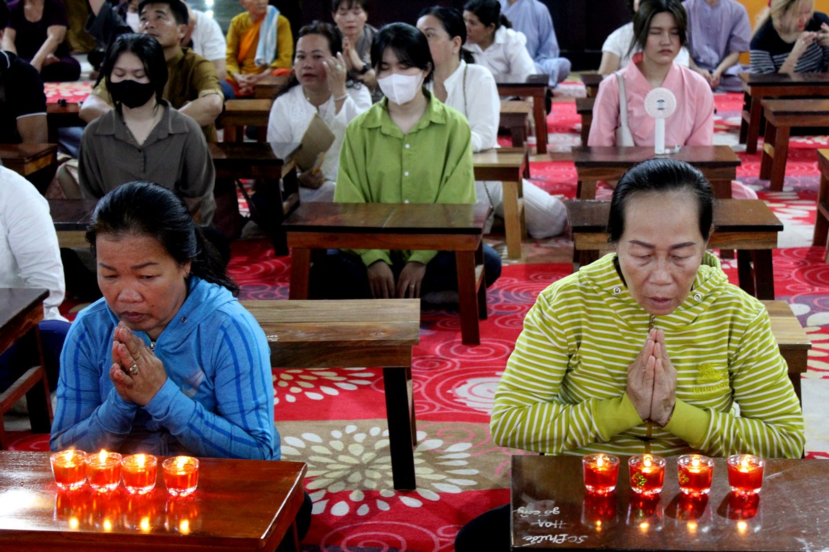 Dưới sự hướng dẫn của ban điều hành, đại chúng cử hành nghi thức dâng đèn, tụng kinh chúc phúc lành, cầu an cầu siêu đến thân bằng quyến thuộc.