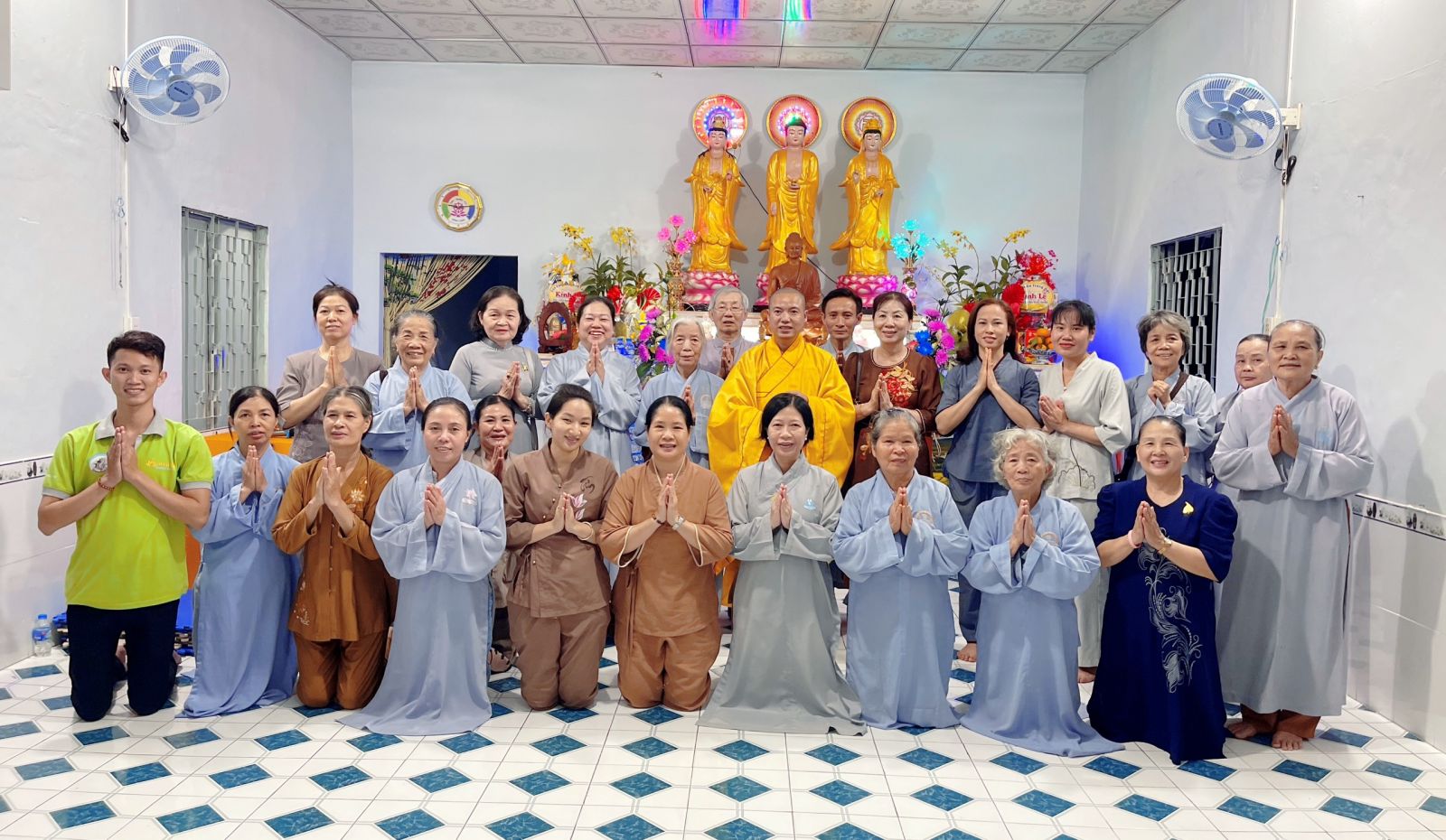 Trong không khí trang nghiêm của buổi lễ, ĐĐ Thích Thiện Mỹ ban lời pháp nhủ đến toàn thể đại chúng, mỗi phật tử hãy học theo hạnh của Bồ tát Quán Thế Âm để tăng trưởng lòng từ bi, học hạnh của đất để chứa đựng bao dung mọi sự nhiễm ô, học hạnh của Bồ Tát Di Lặc để trên môi luôn nở nụ cười, ngoài ra các phật tử phải thường xuyên chánh niệm quán chiếu để khắc phục tâm ma trong tự thân, thương hết thảy những điều khó thương và cùng nâng đỡ, nhắc nhở, động viên nhau trên con đường tu tập.
