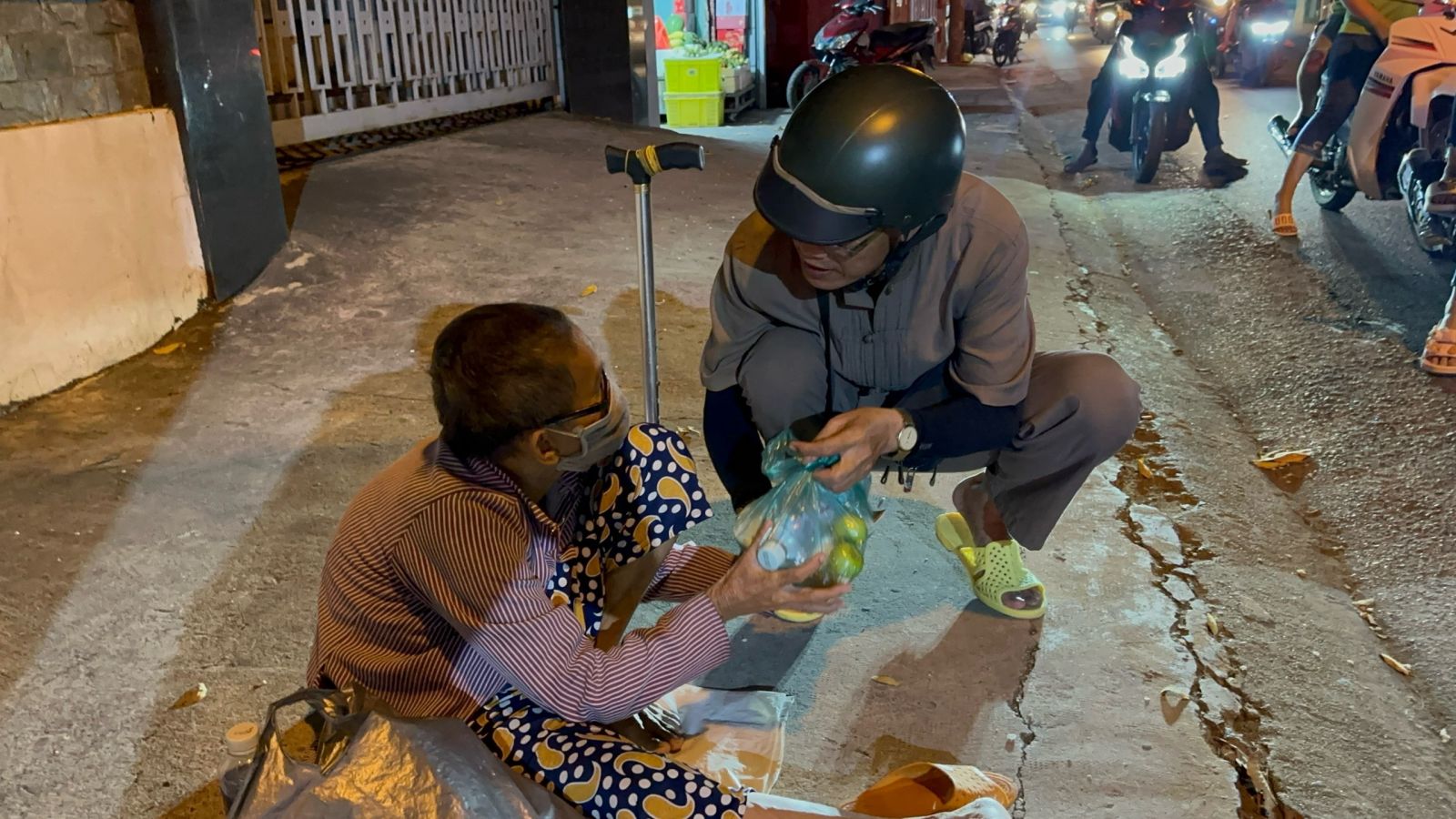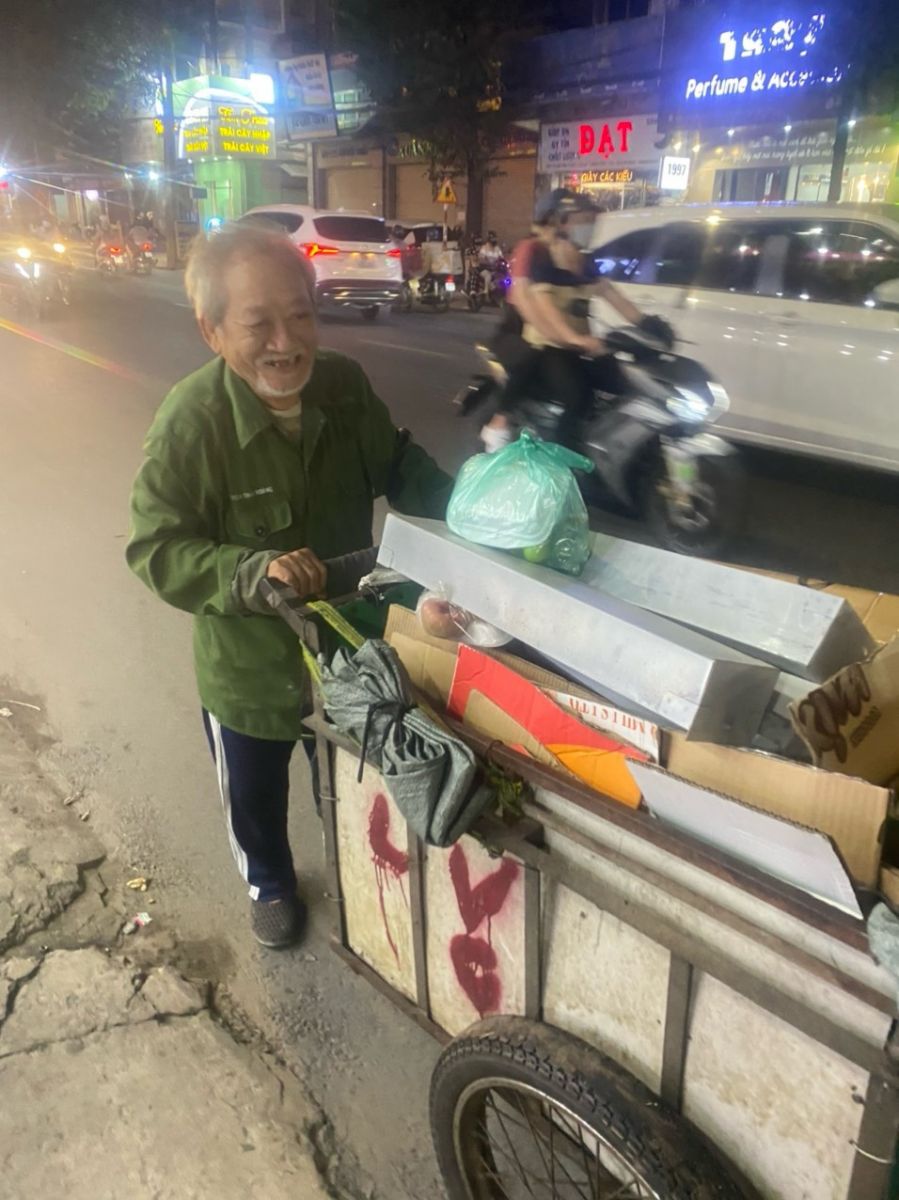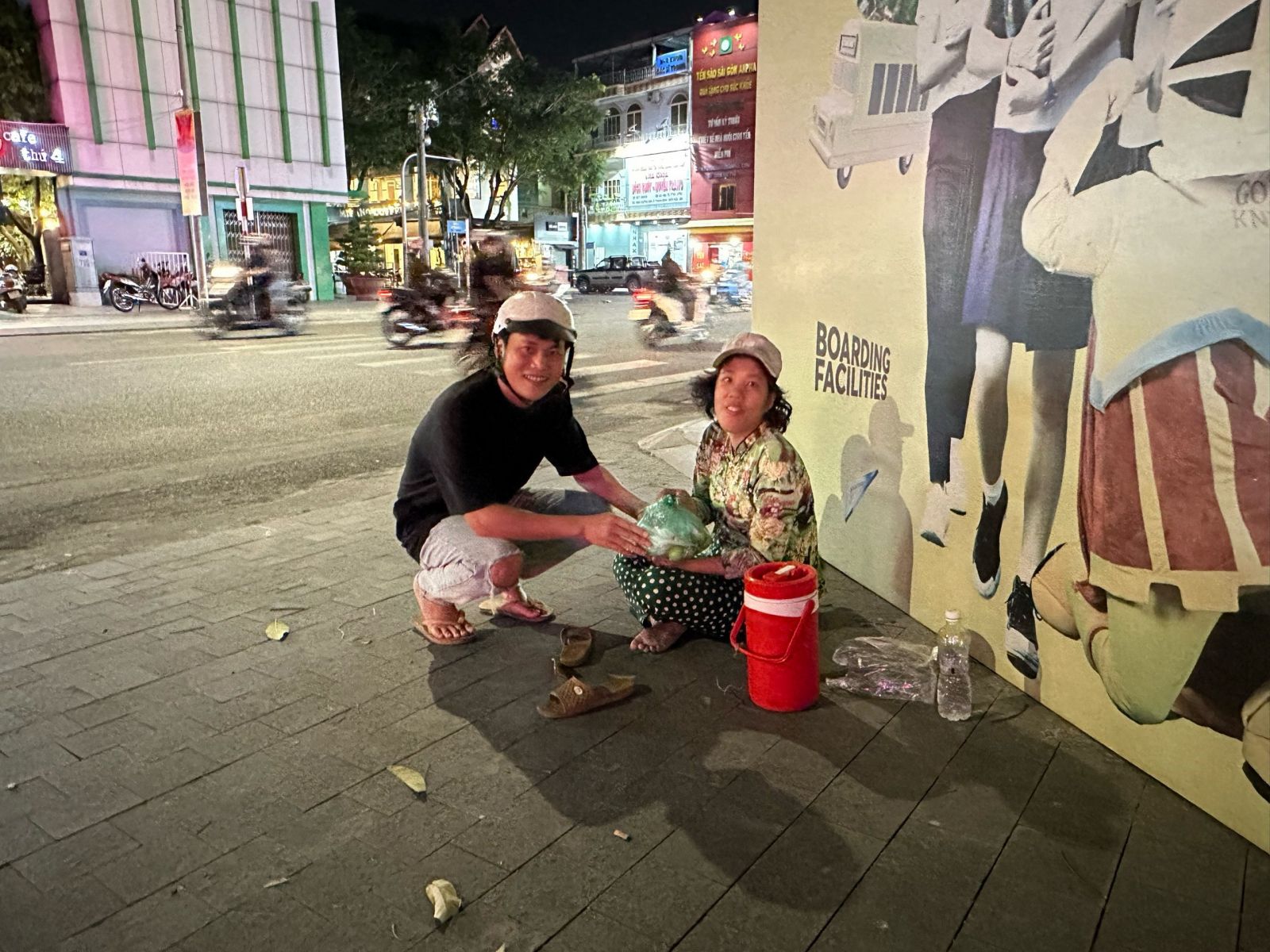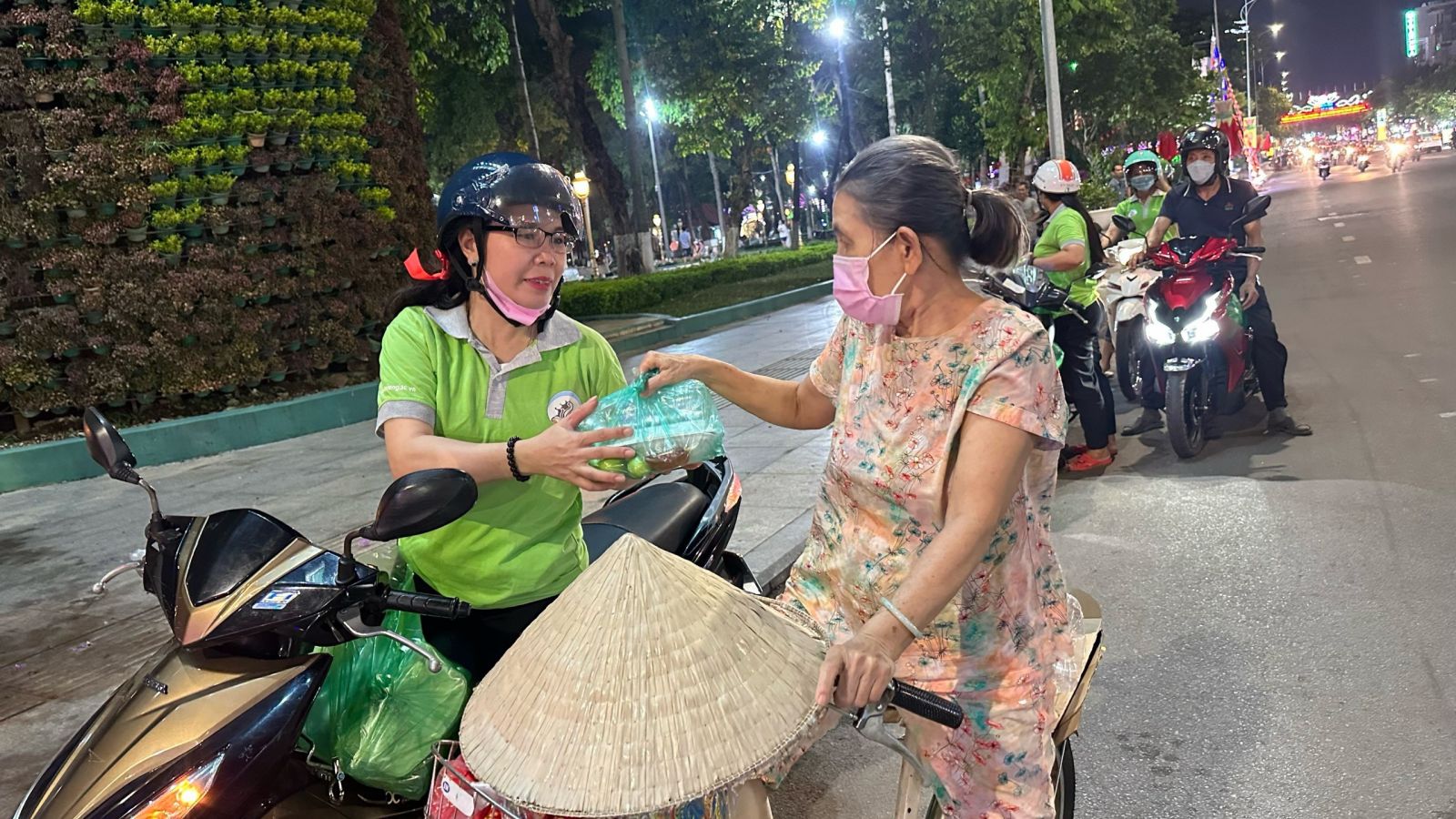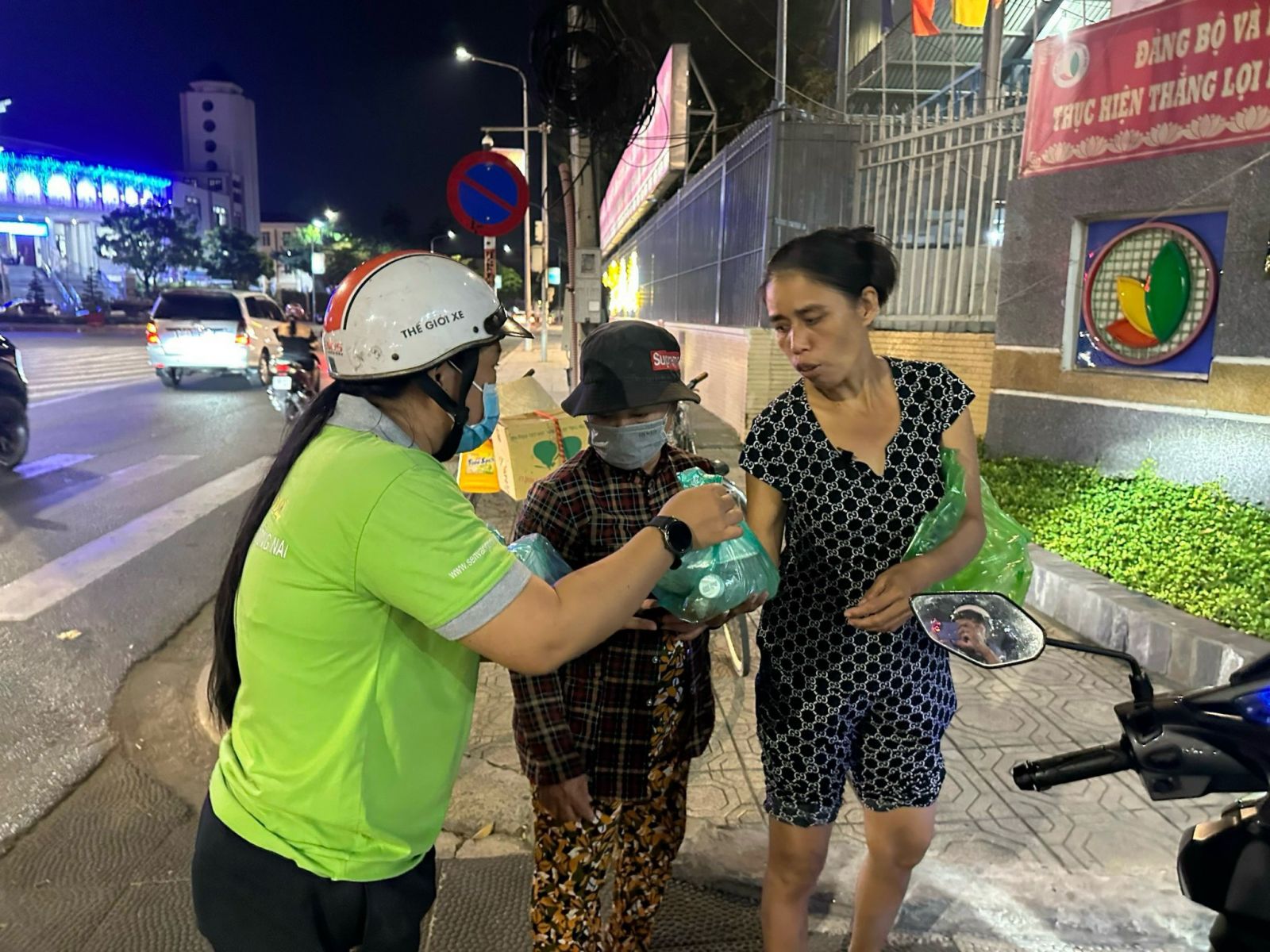 Phần ăn nhóm chuẩn bị có: bún chả nướng, nước suối, táo. Tất cả được các bạn đóng gói cẩn thận và sạch sẽ, đi dọc trên nhiều con phố trao tận tay đến những người lao động có hoàn cảnh khó khăn như lượm ve chai, bán vé số, lao công, những em bé theo cha mẹ kiếm sống trên đường phố....