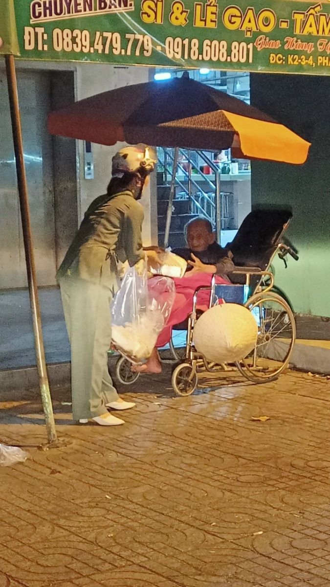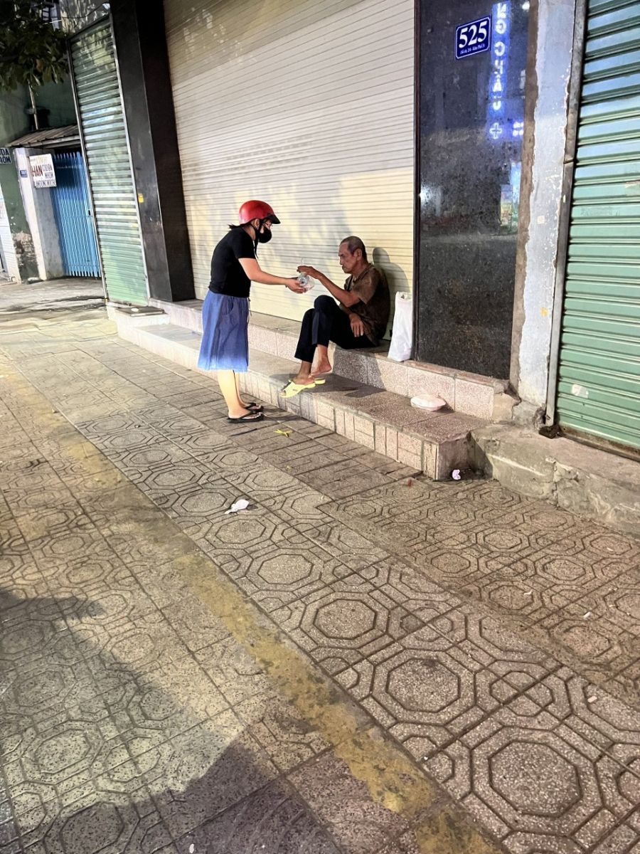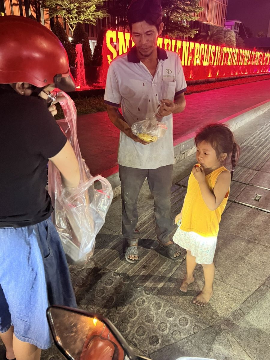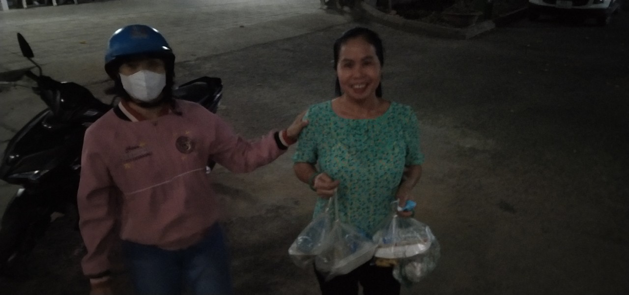 Phần quà đợt này có 220 phần, mỗi phần gồm có bún xào chay, chuối và nước suối được nhóm trao tận tay đến những người vô gia cư sống trên vỉa hè và người dân lao động vất vả đêm khuya.