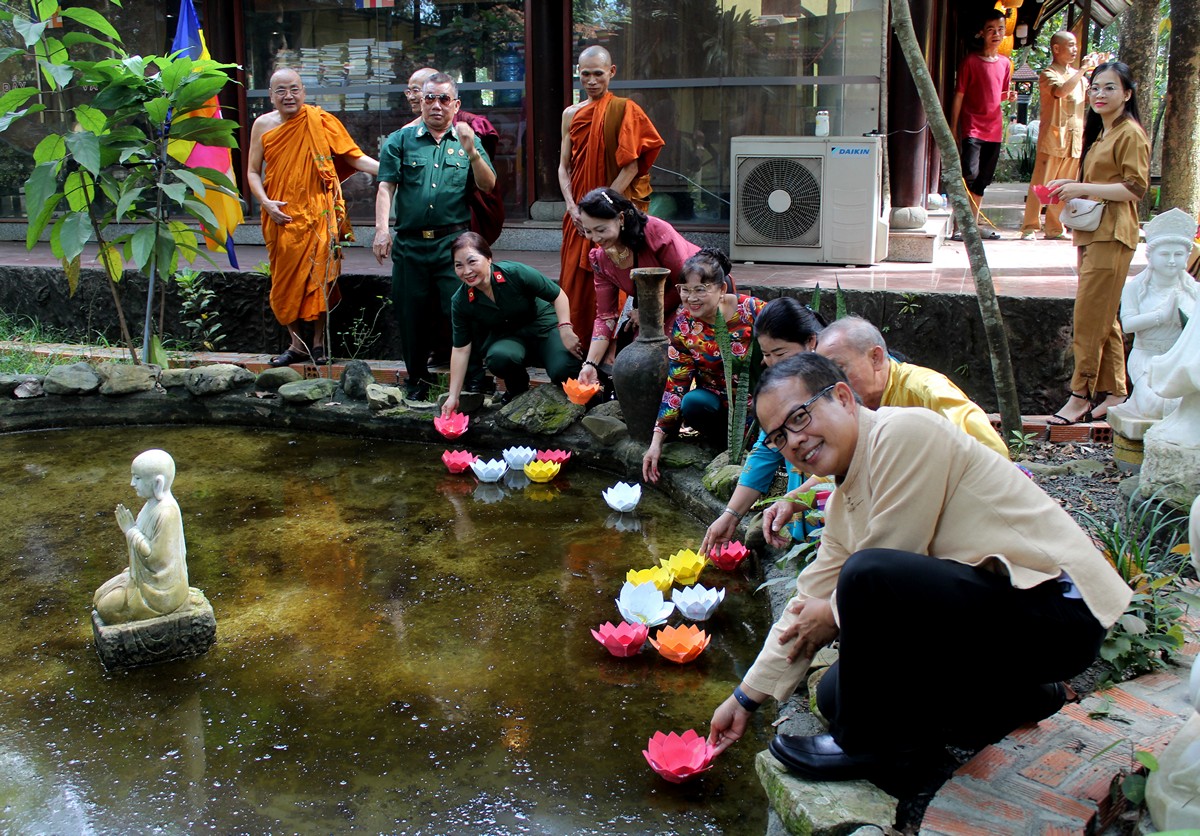 Dịp này, hòa thượng trụ trì trao tặng 10 triệu đồng cho 20 em sinh viên Lào đang học tại trường đại học Đồng Nai. Sau nghi thức cử hành cầu nguyện chúc phúc lành, HT trụ trì cùng đại diện Lào Campuchia Thái Lan, thả hoa đăng tại hồ sen.